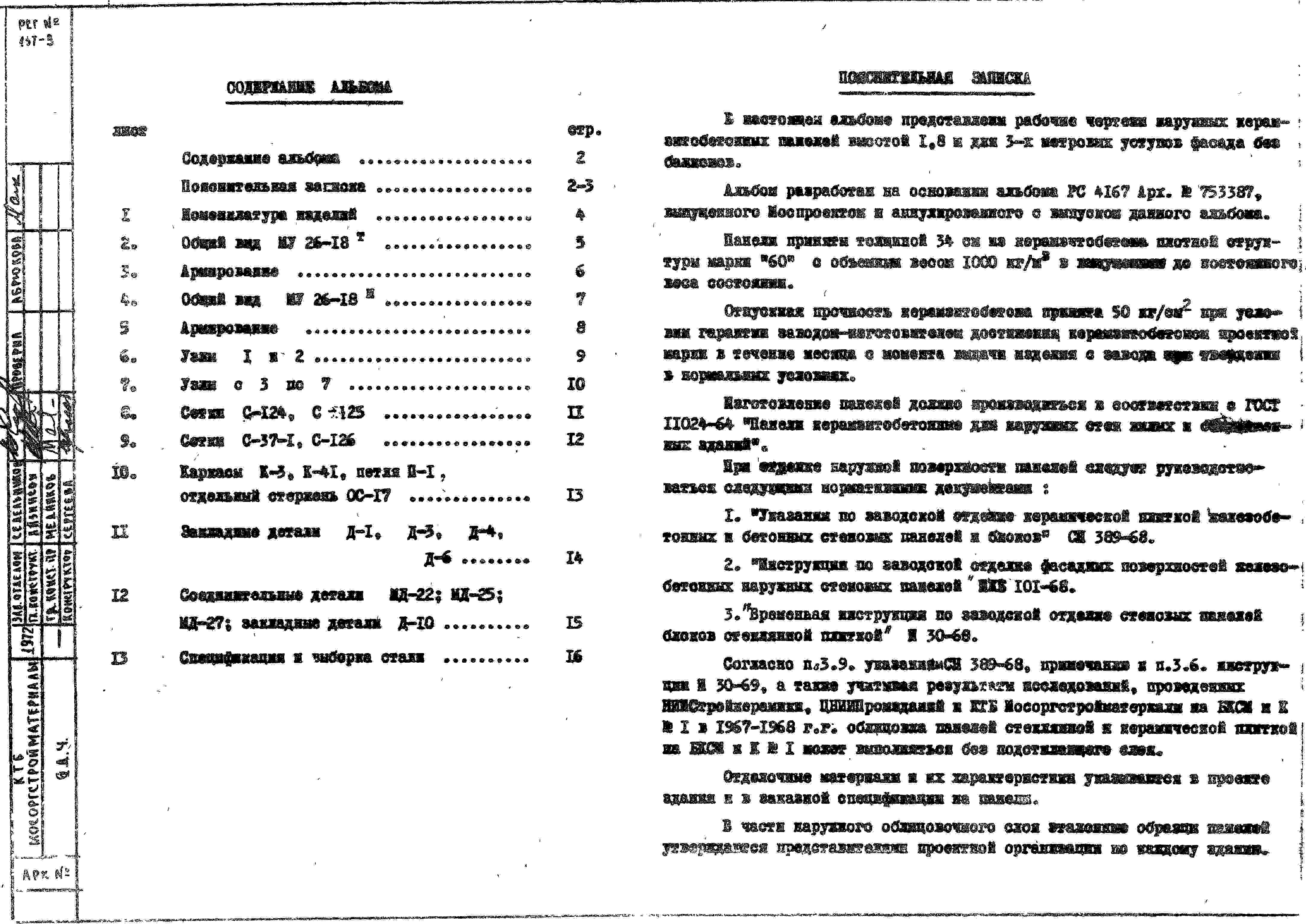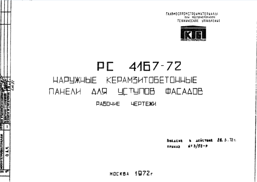 Шифр РС4167-72 Наружные керамзитобетонные панели для уступов фасадов (1972 г.)