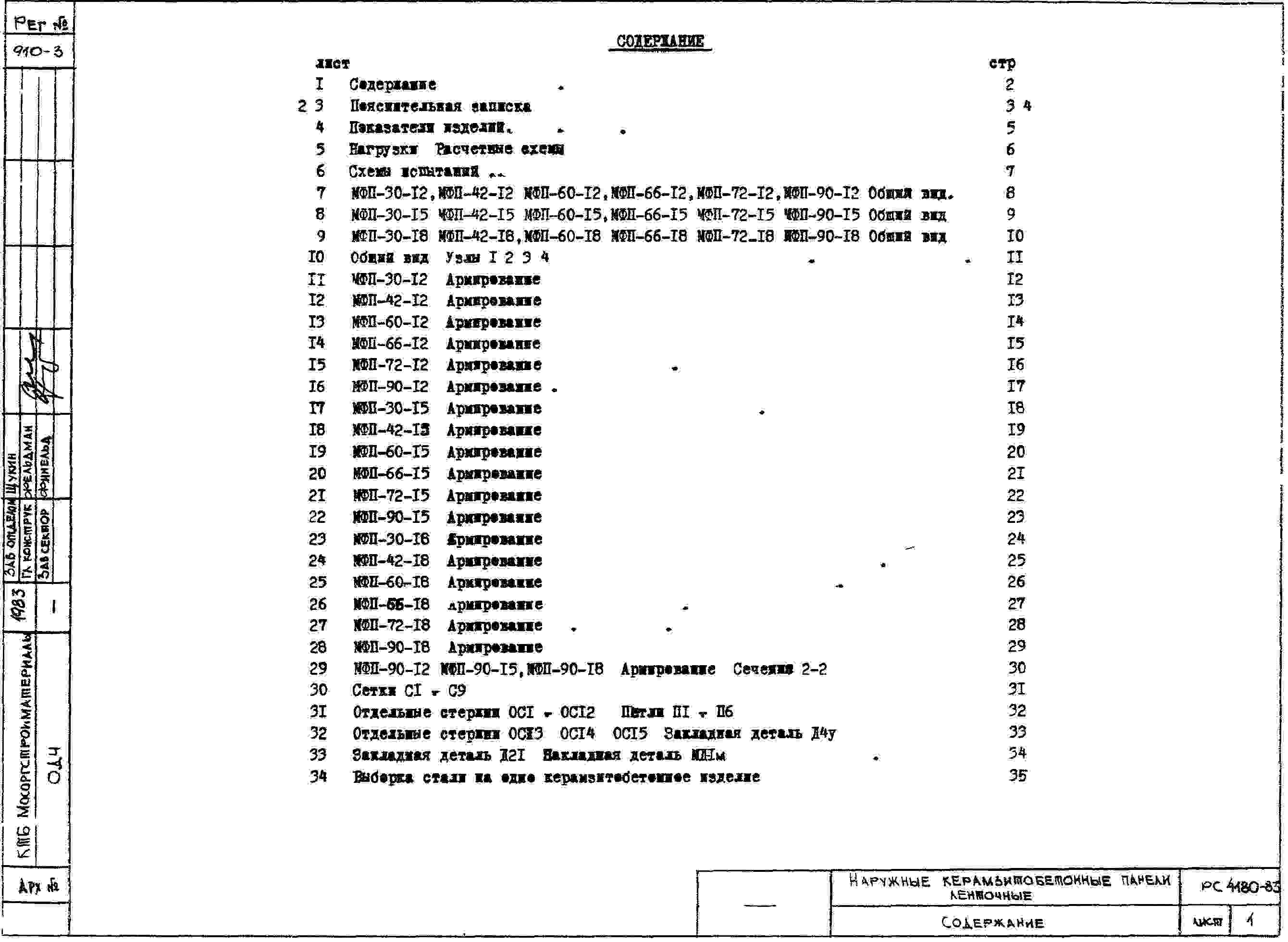 Шифр РС4180-83 Наружные керамзитобетонные панели ленточные без вырезов для перекрытий (1983 г.)