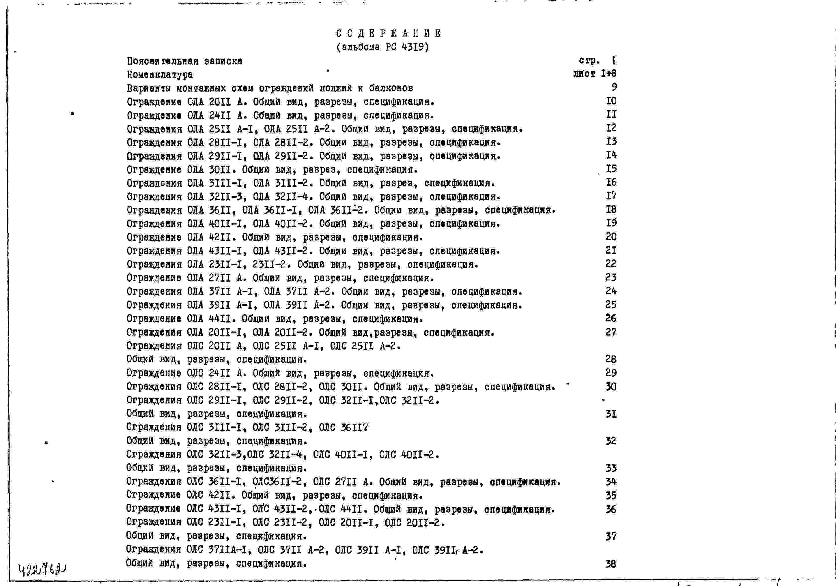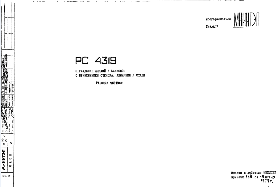Шифр РС4319 Ограждения лоджий и балконов с применением стекора, алюминия и стали (1977 г.)