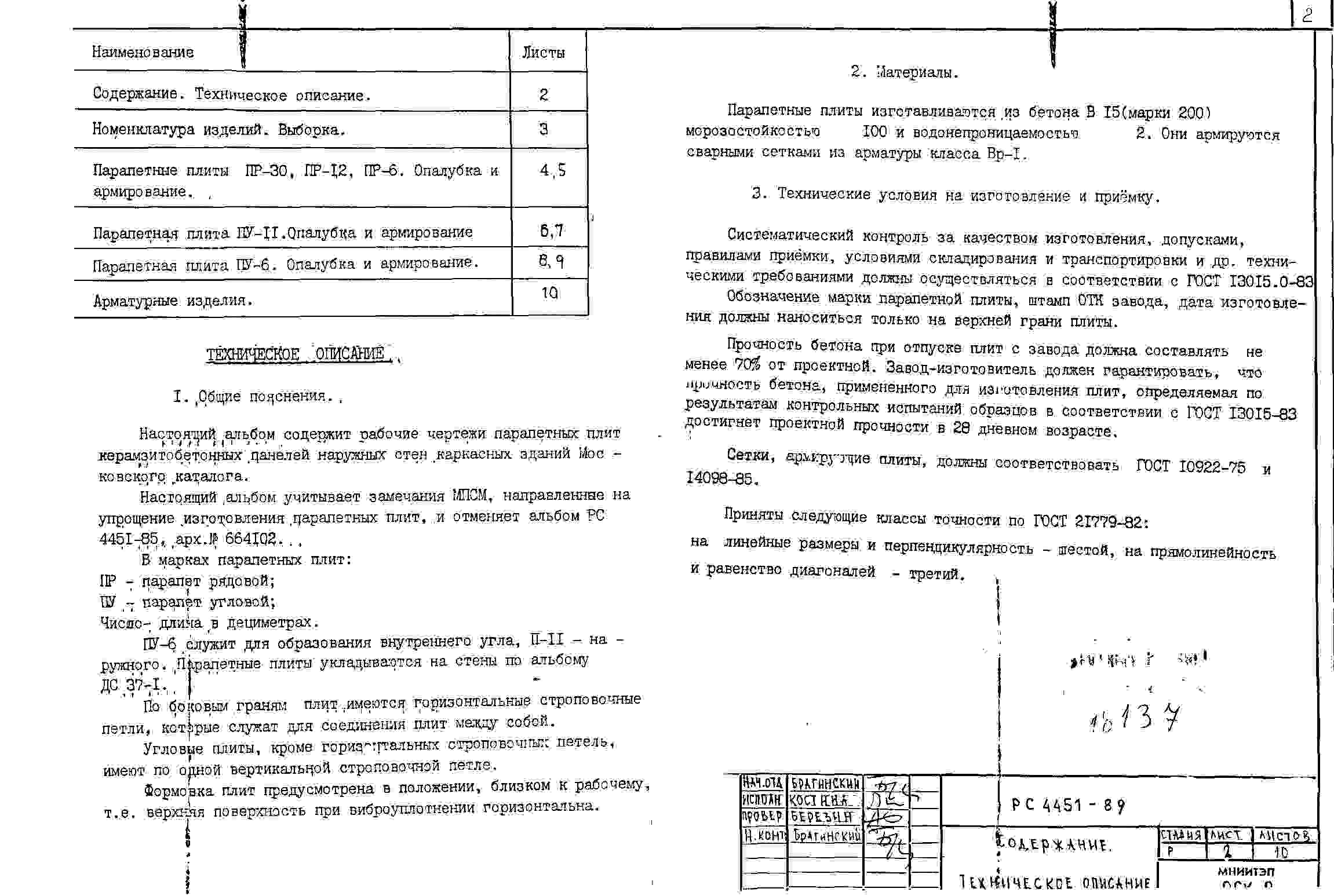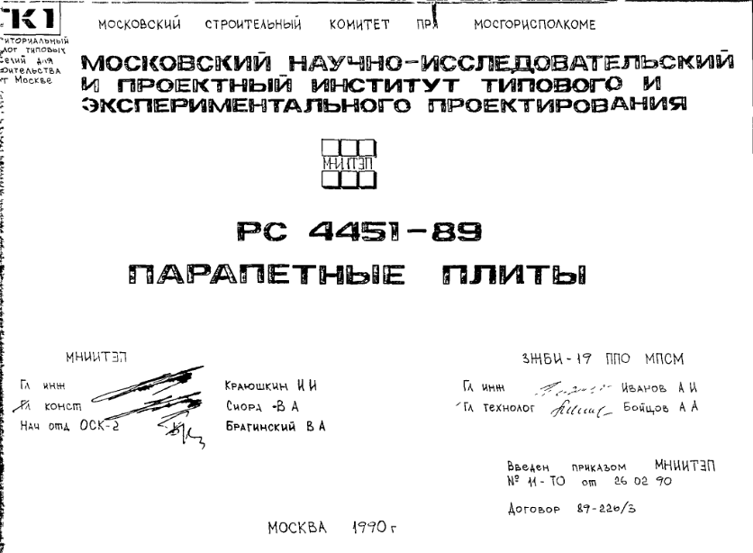 Шифр РС4451-89 Парапетные плиты (1990 г.)