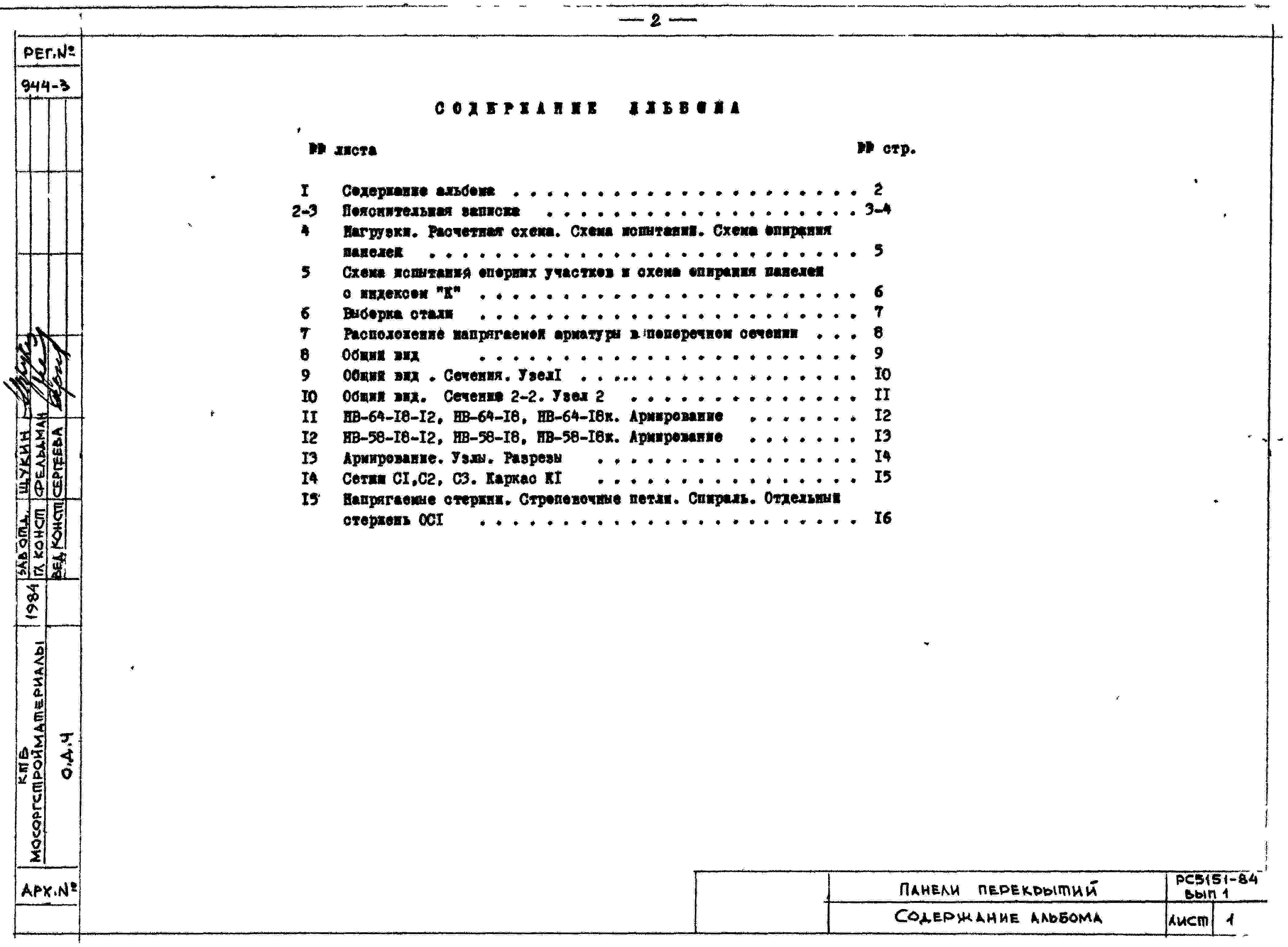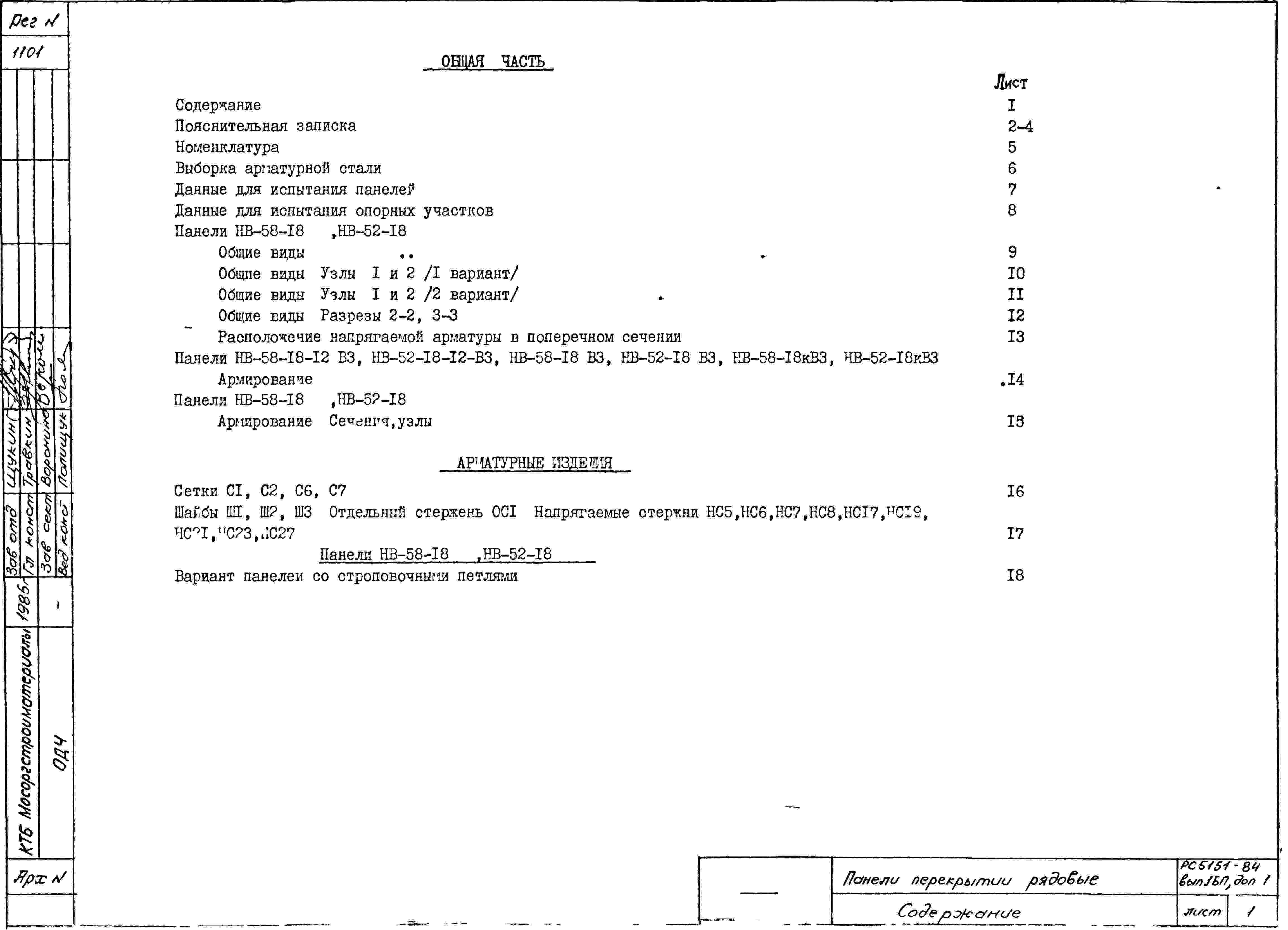 Шифр РС-5151-84 Панели перекрытий рядовые шириной 1,8 м для пролетов 5,4, 6,0; 6,6 м, диаметр пустот 159 и 140 мм (1984 г.)