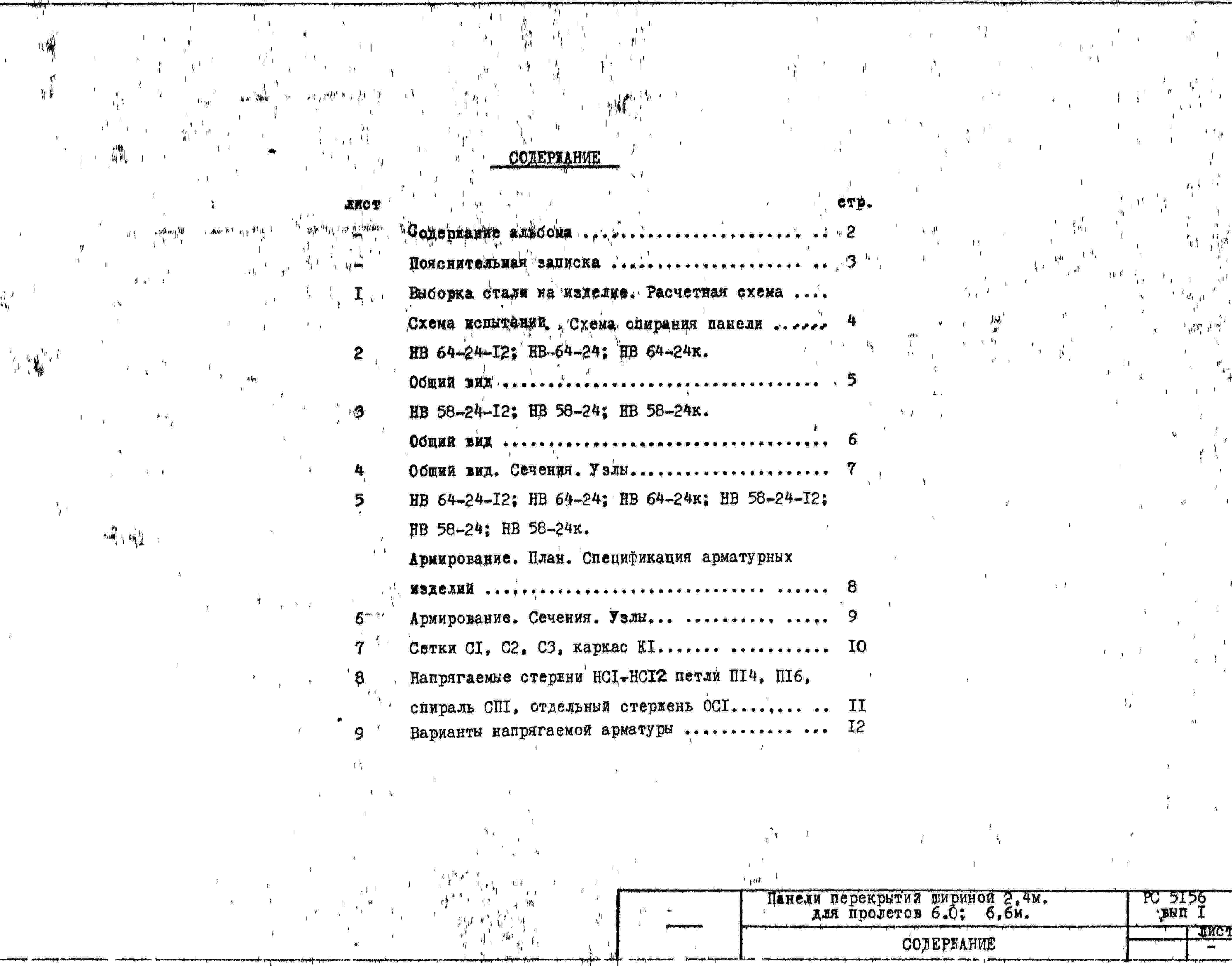 Шифр РС5156 Панели перекрытий рядовые шириной 2,4 м для пролетов 6,0; 6,6 м. Диаметр пустот 159 мм (1980 г.)
