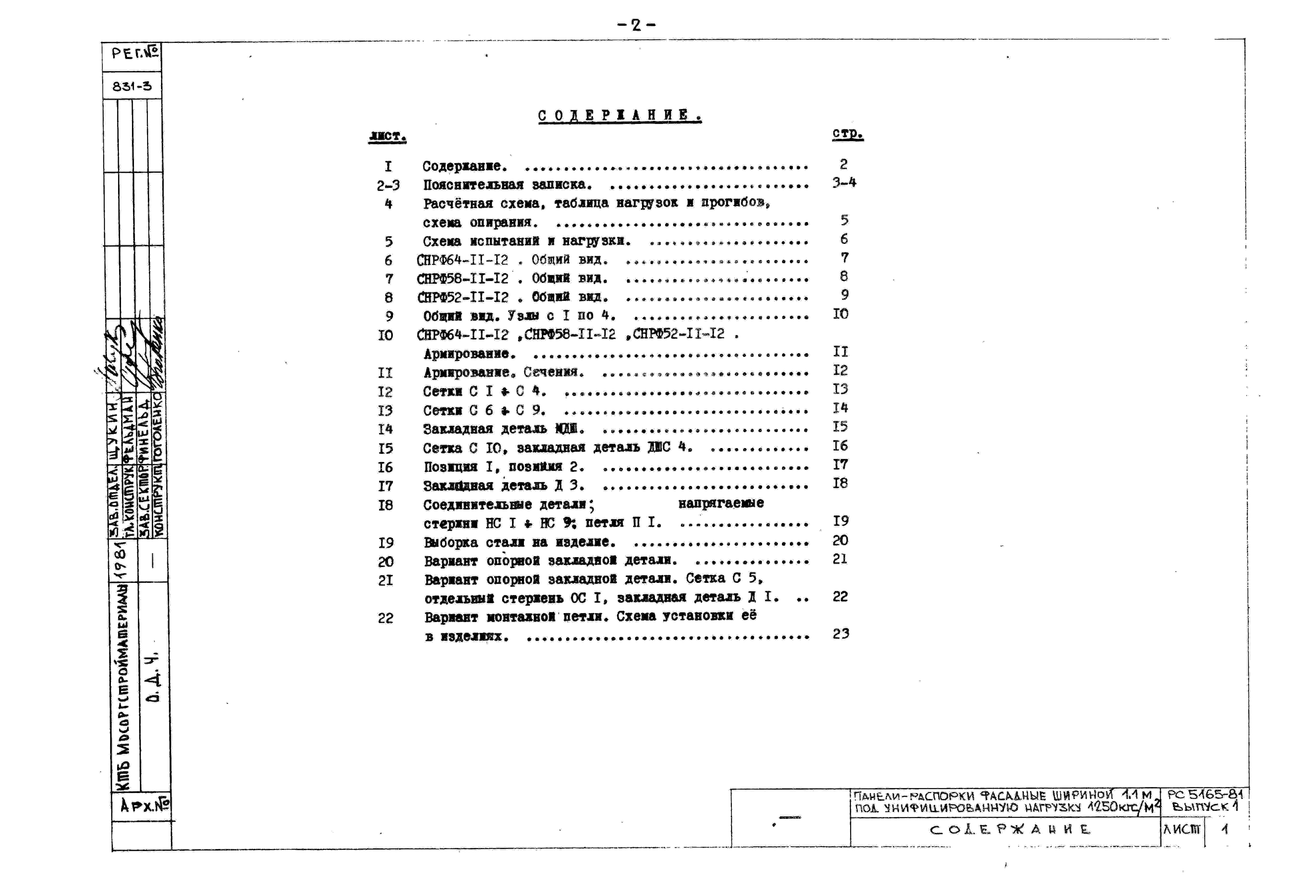 Шифр РС5165-81 Панели перекрытий-распорки фасадные сплошные шириной 1,1 м для пролетов 5,4; 6,0; 6,6 м (1981 г.)