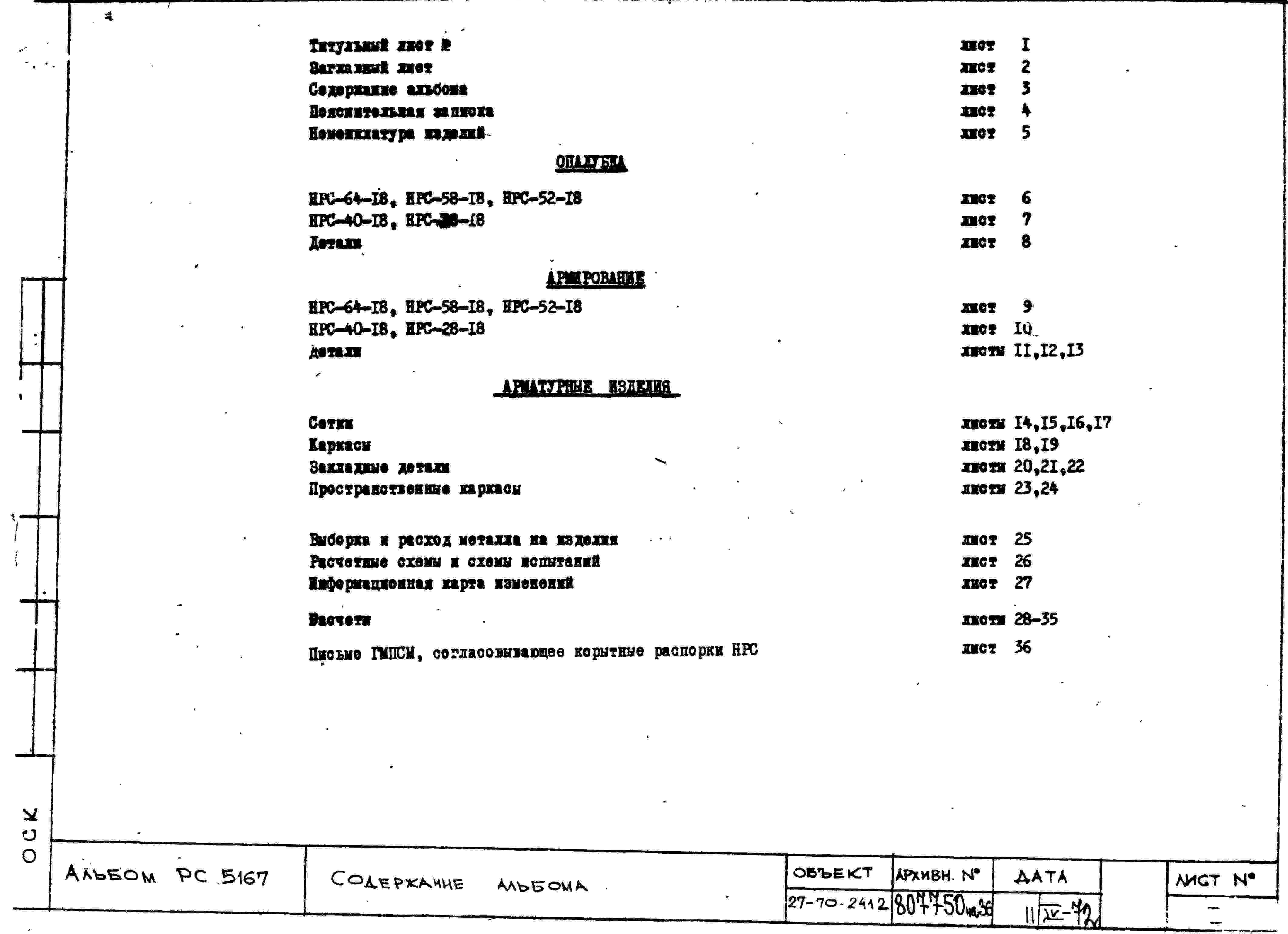 Шифр РС 5167-72 Распорки перекрытий сантехнические корытные "НРС" (1972 г.)