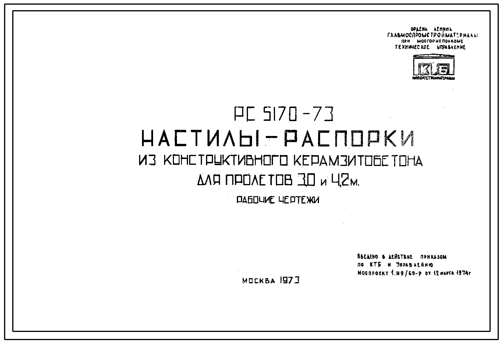 Шифр РС 5170-73 Настилы-распорки из конструктивного керамзитобетона для пролетов 3,0 и 4,2 м (1973 г.)