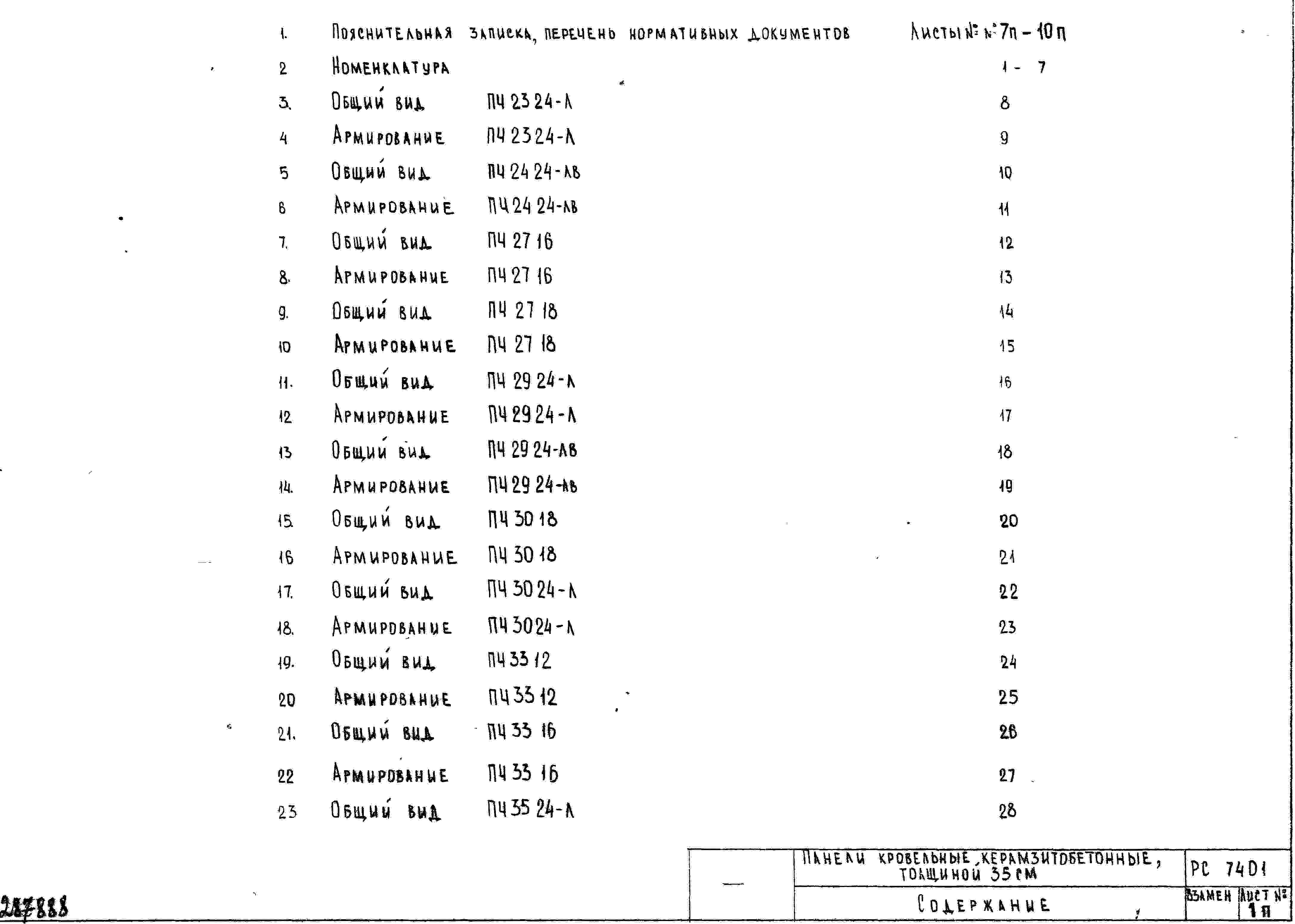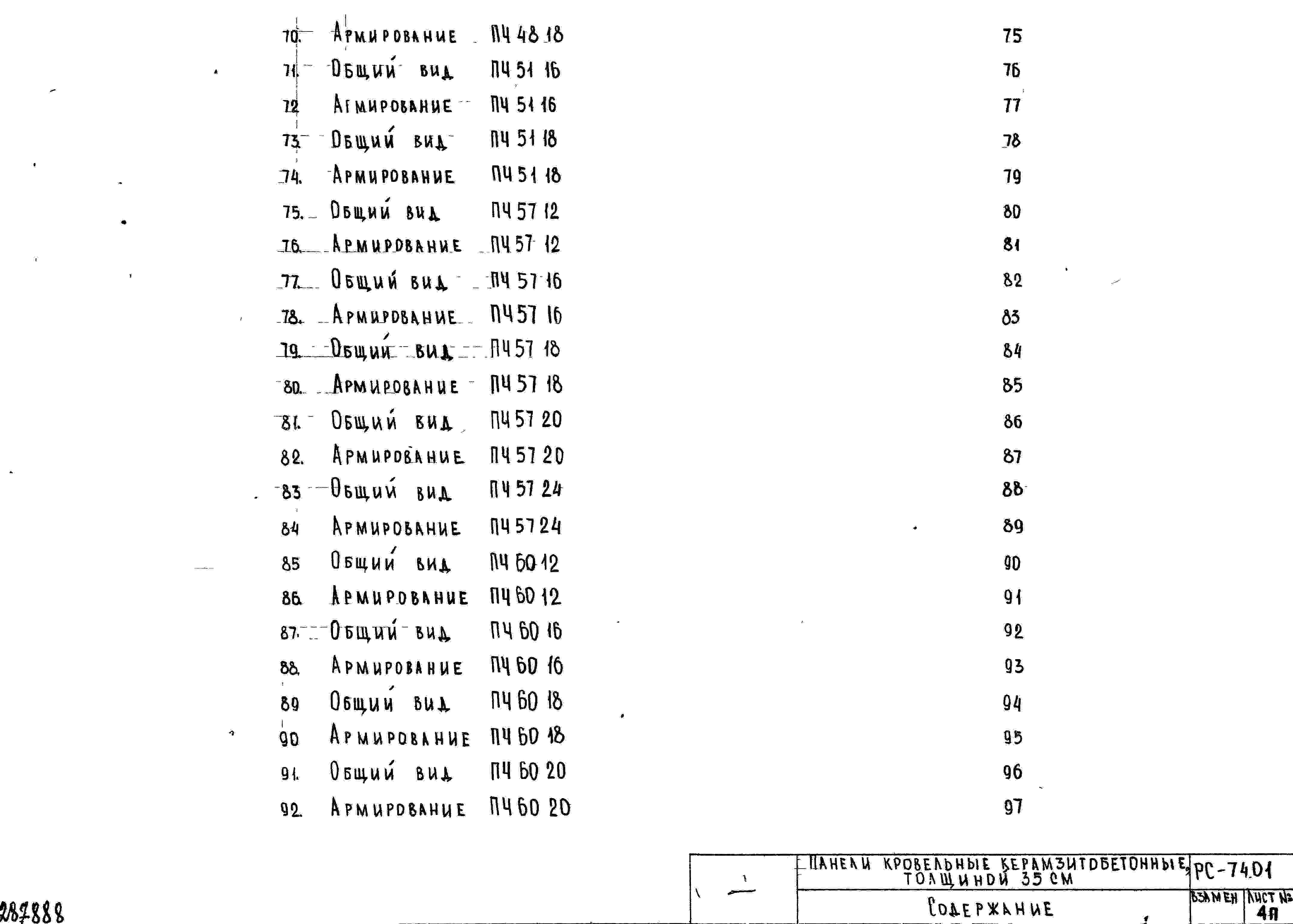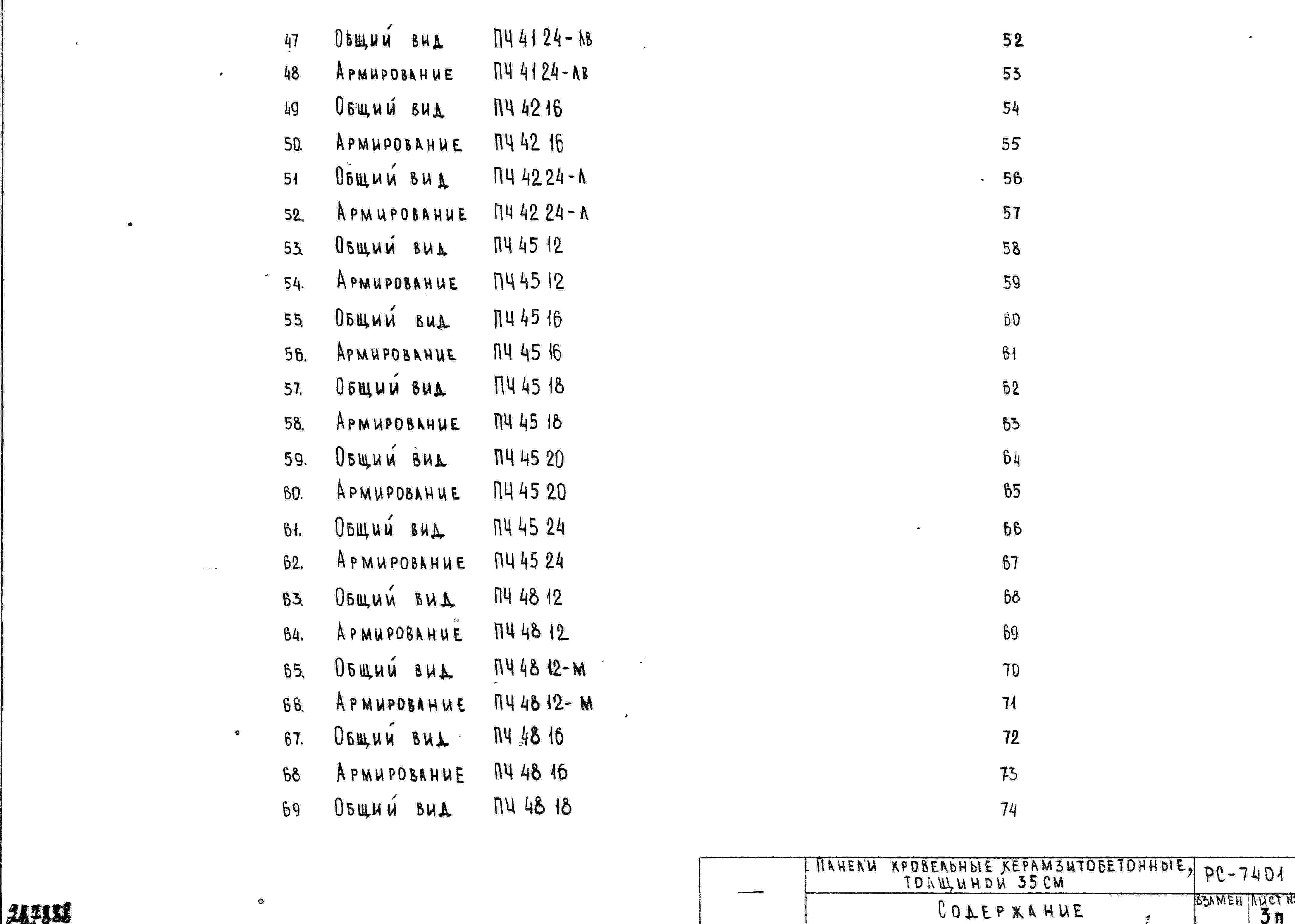 Шифр РС7401 Панели кровельные керамзитобетонные, толщиной 35 см (1970 г.)