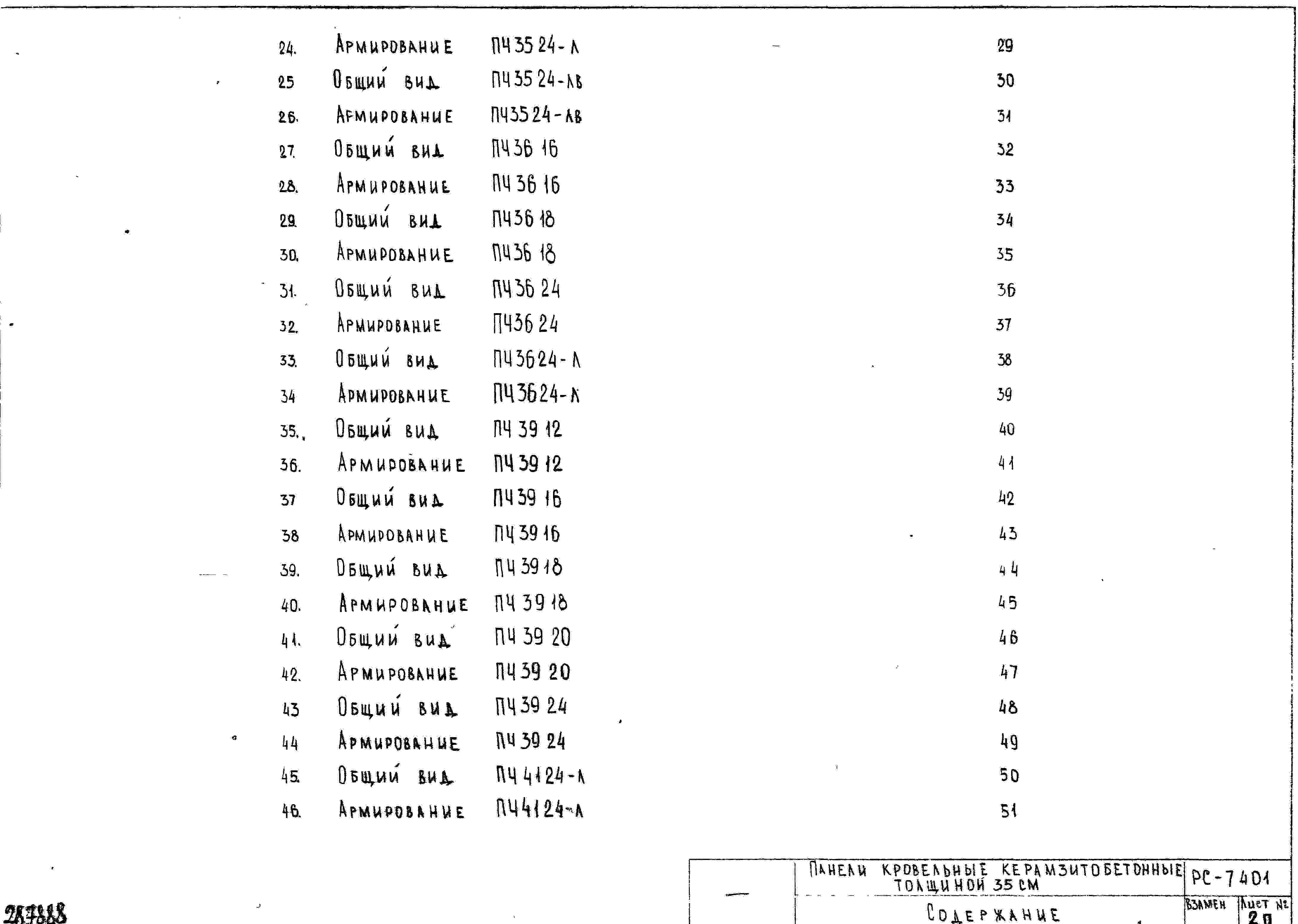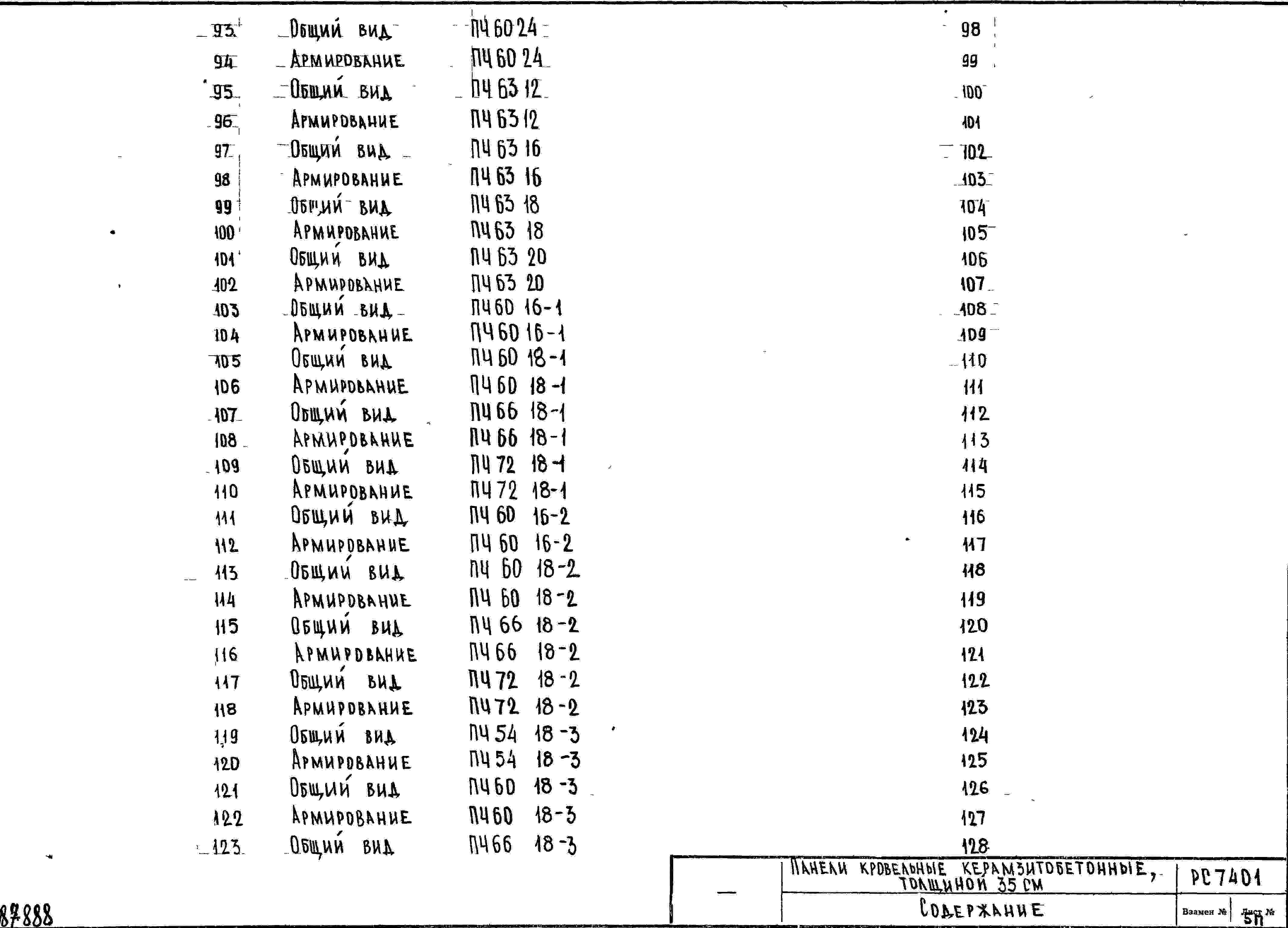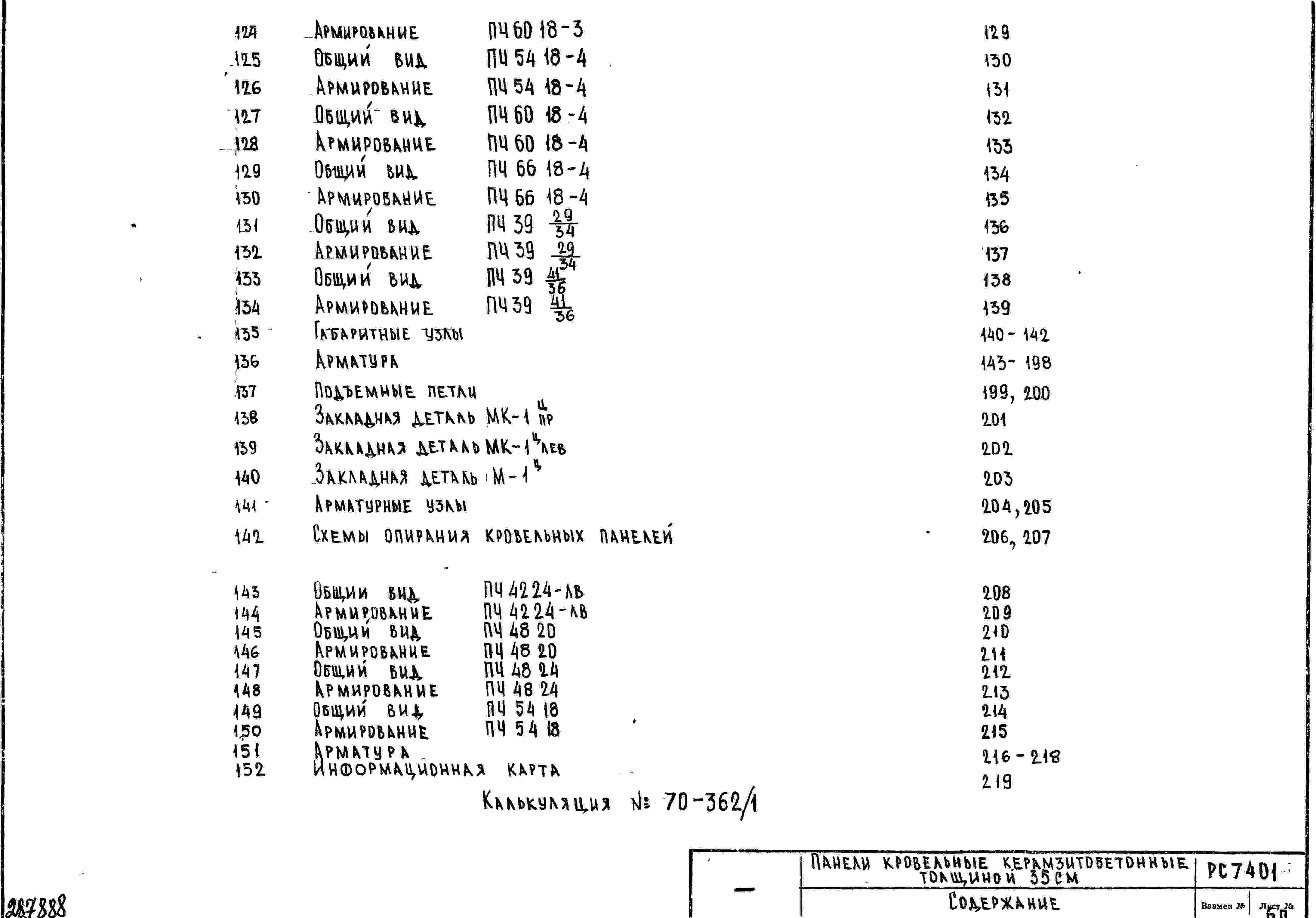 Шифр РС7401 Панели кровельные керамзитобетонные, толщиной 35 см (1970 г.)