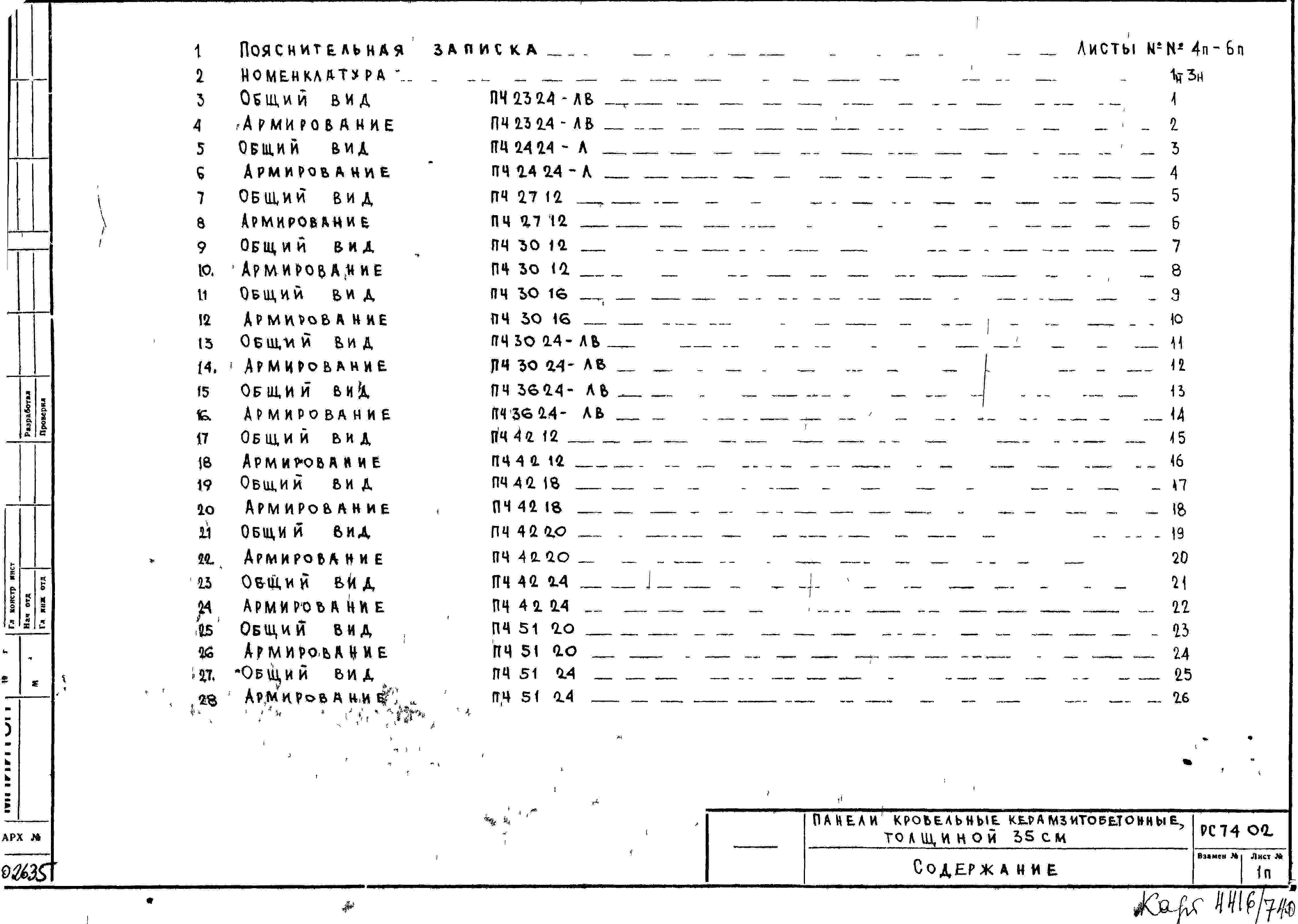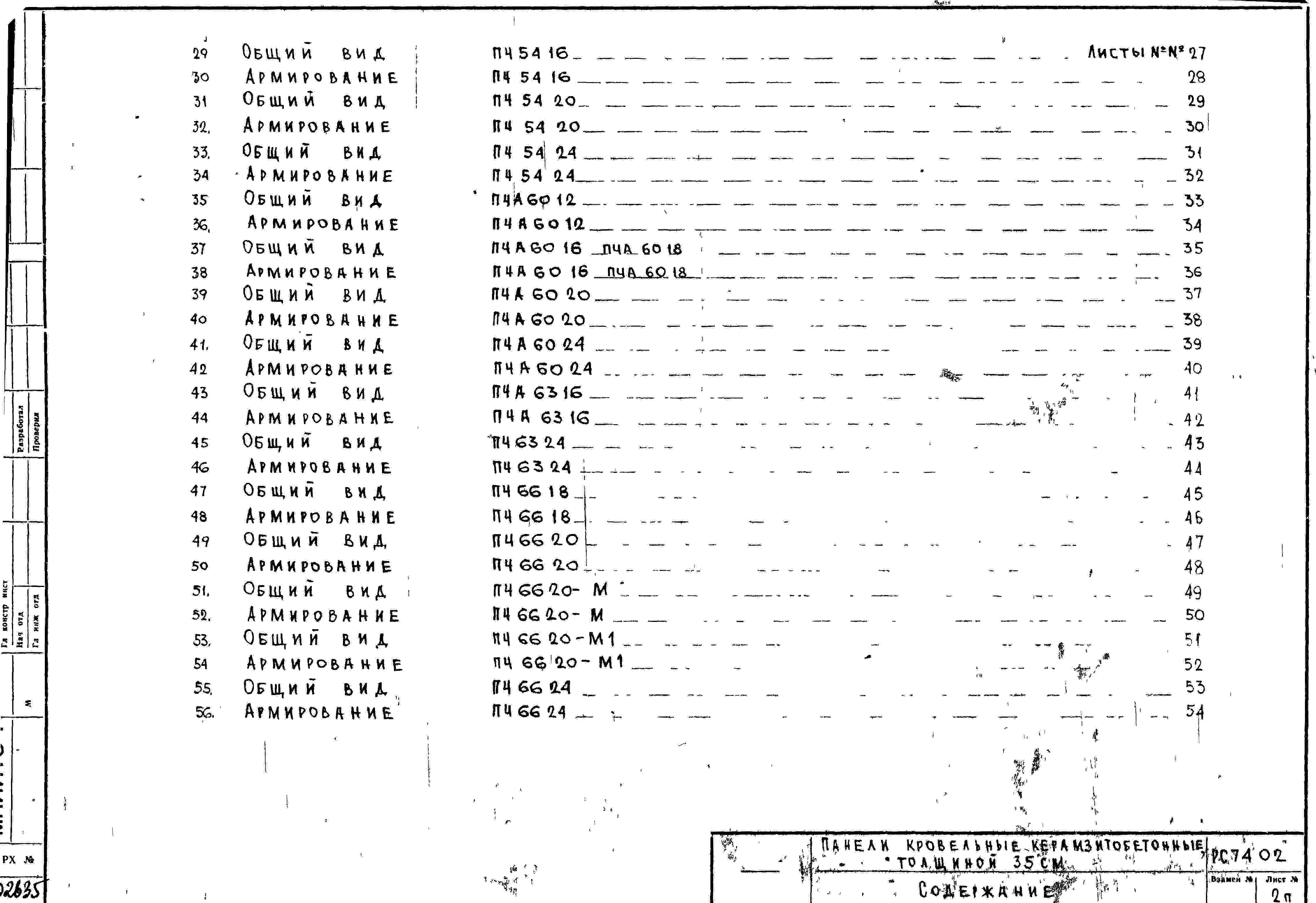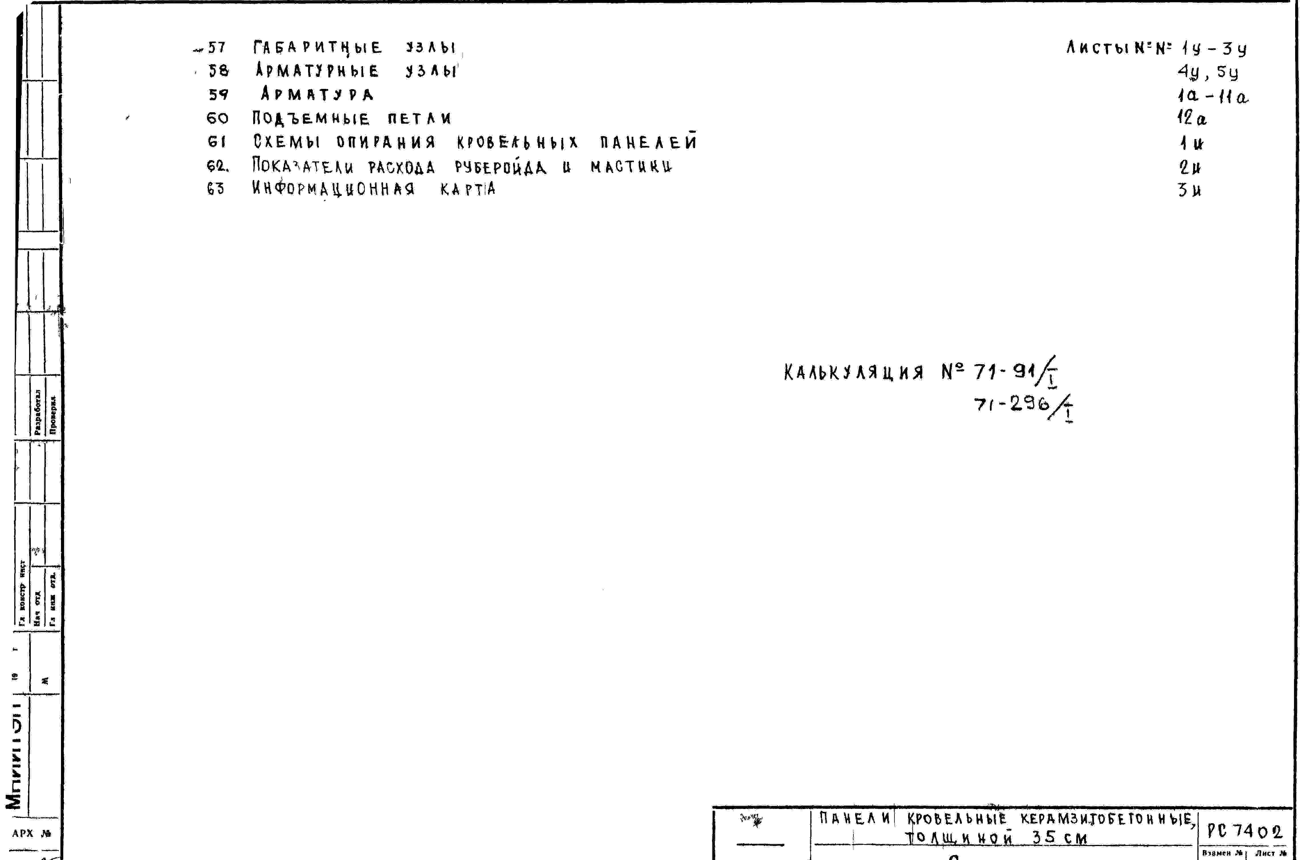 Шифр РС7402 Панели кровельные керамзитобетонные, толщиной 35 см (1972 г.)