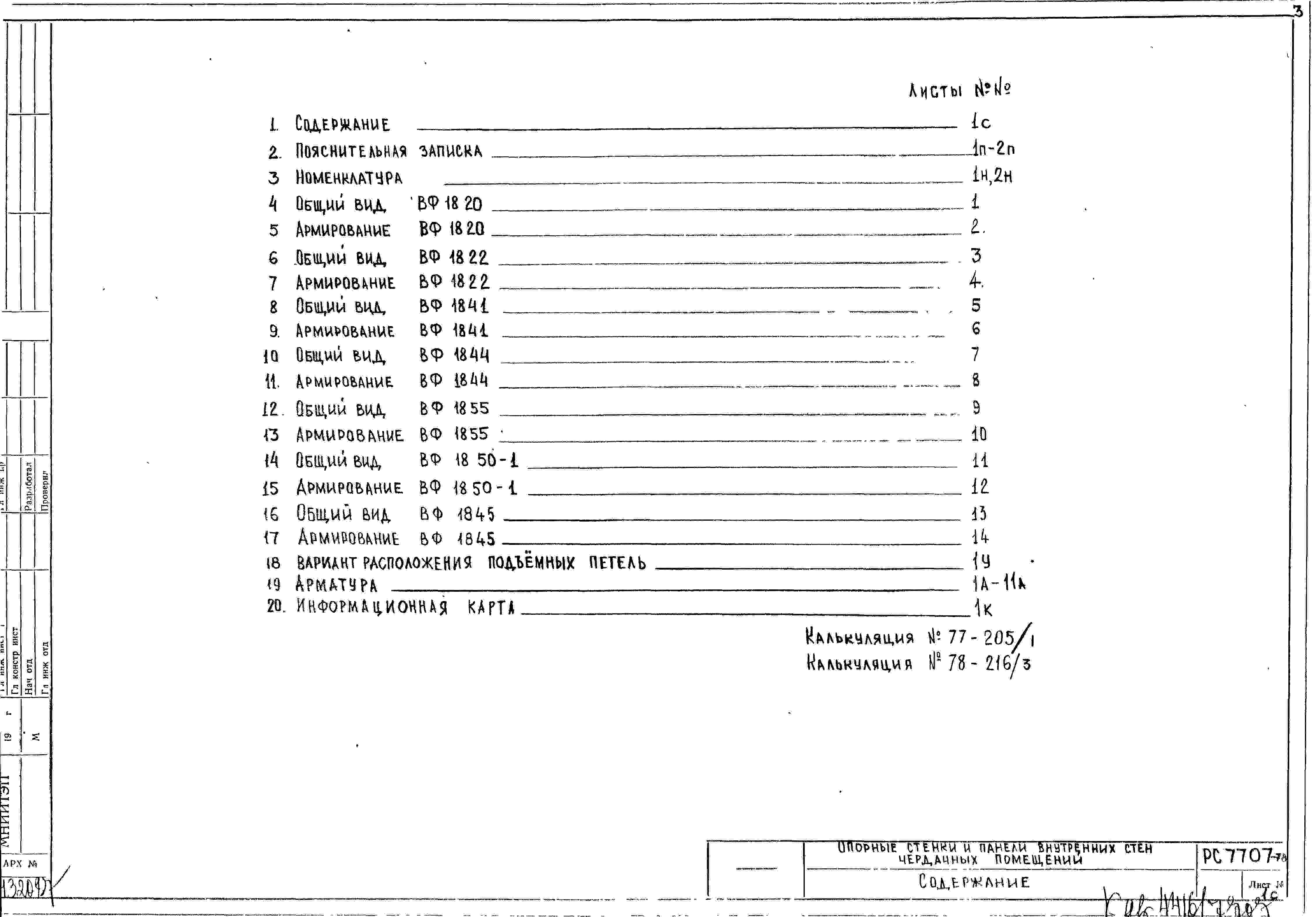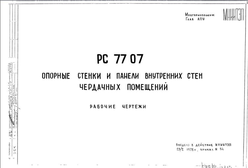 Шифр РС7707 Опорные стенки и панели внутренних стен чердачных помещений (1978 г.)
