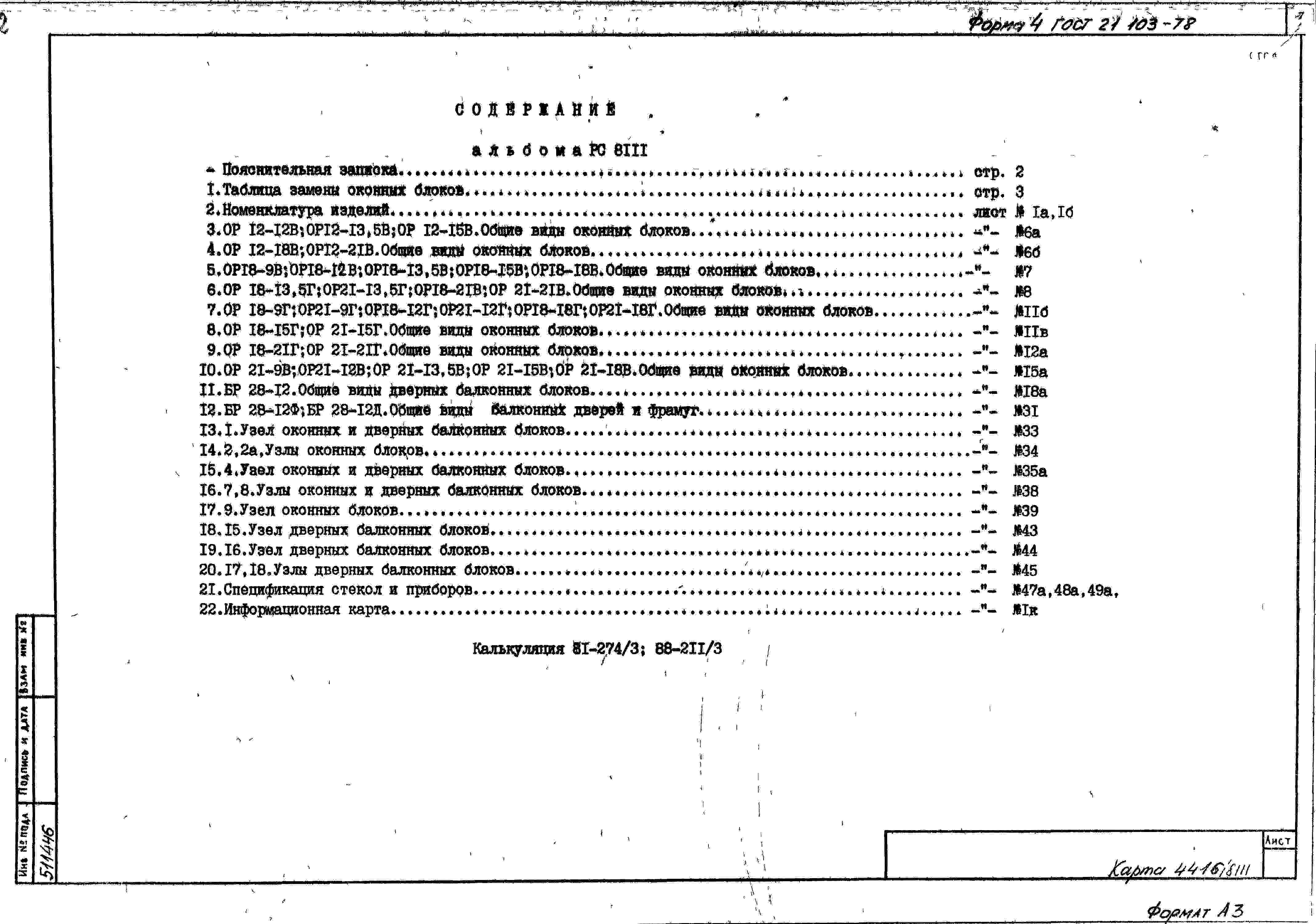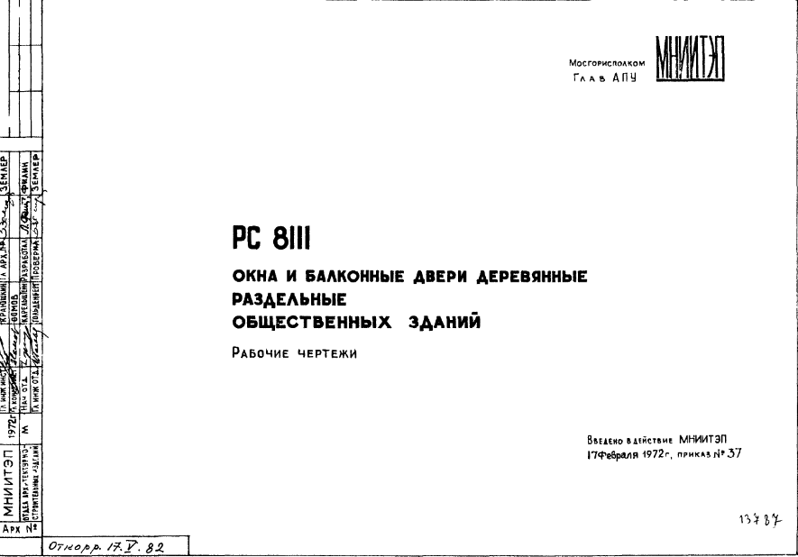 Шифр РС8111 Окна и балконные двери деревянные раздельные общественных зданий (1972 г.)