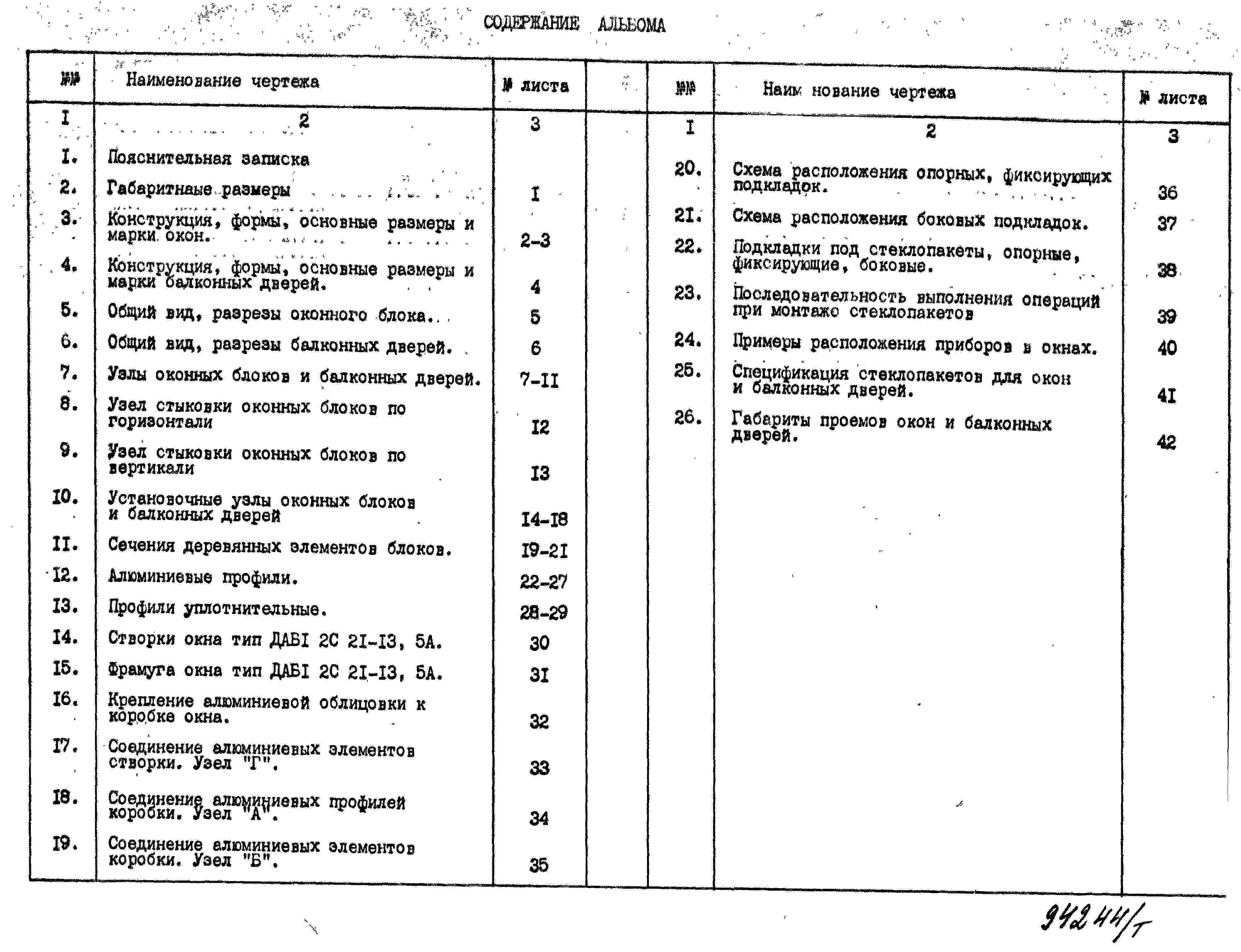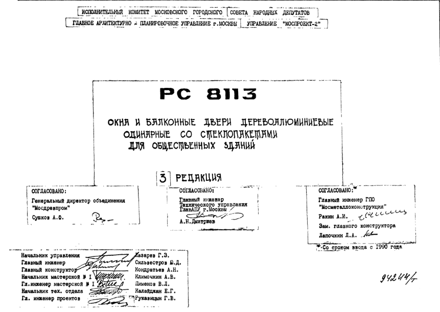 Шифр РС8113 Окна и балконные двери деревоаллюминиевые одинарные со стеклопакетами для общественных зданий (1988 г.)