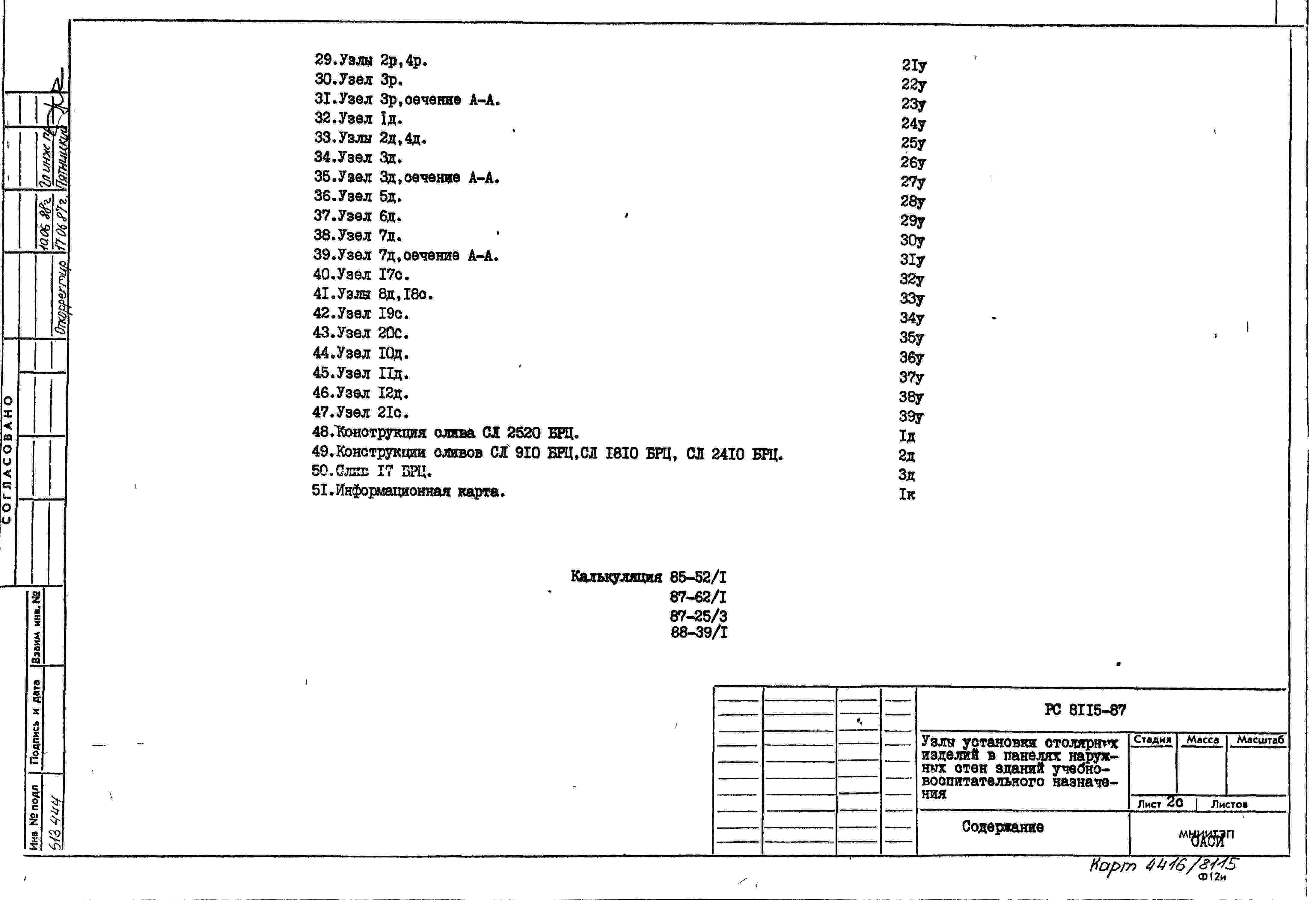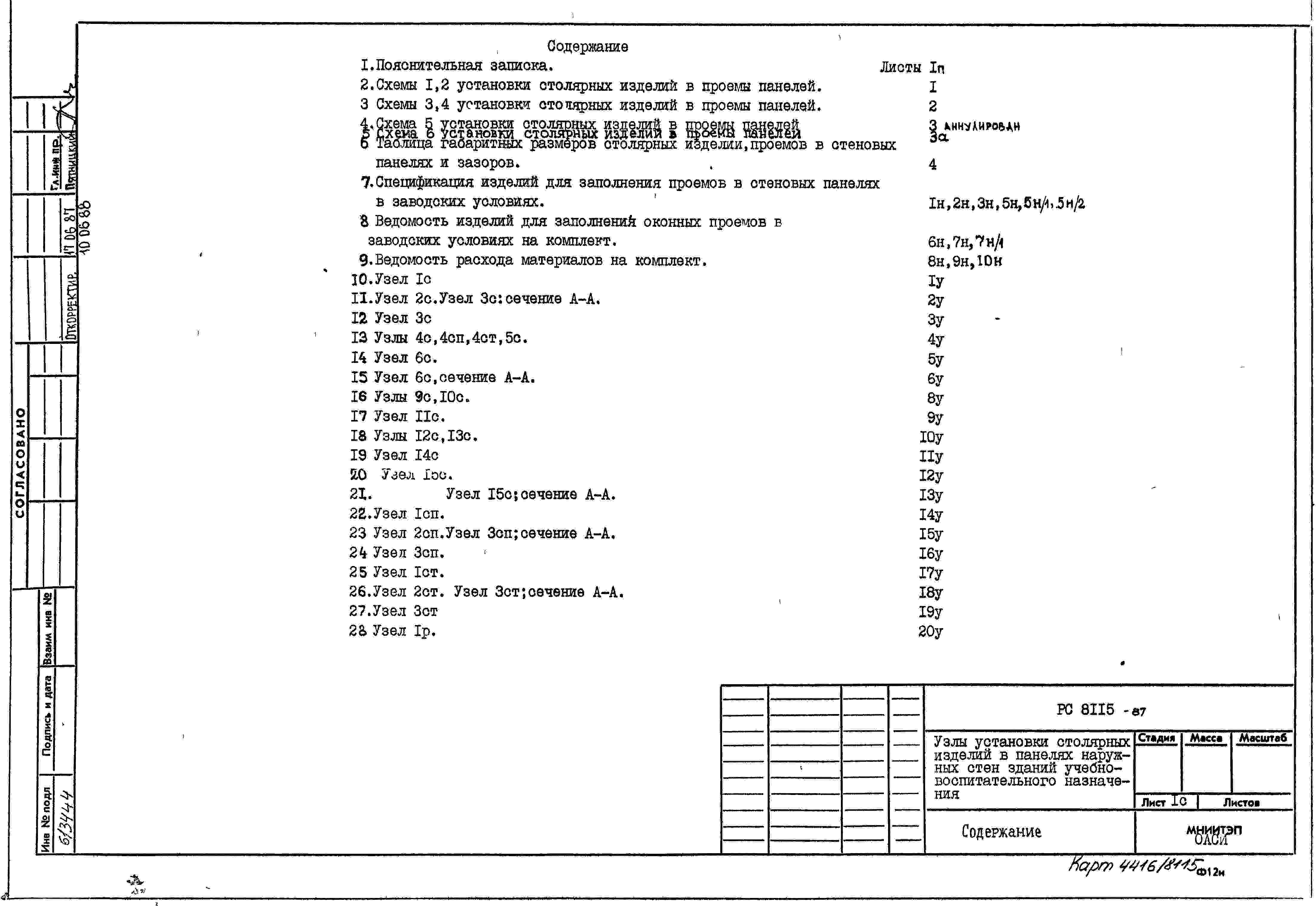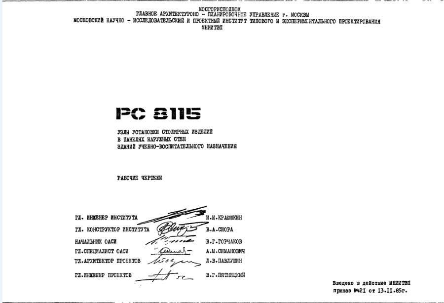 Шифр РС8115 Узлы установки столярных изделий в панелях наружных стен зданий учебно-воспитательного назначения (1985 г.)