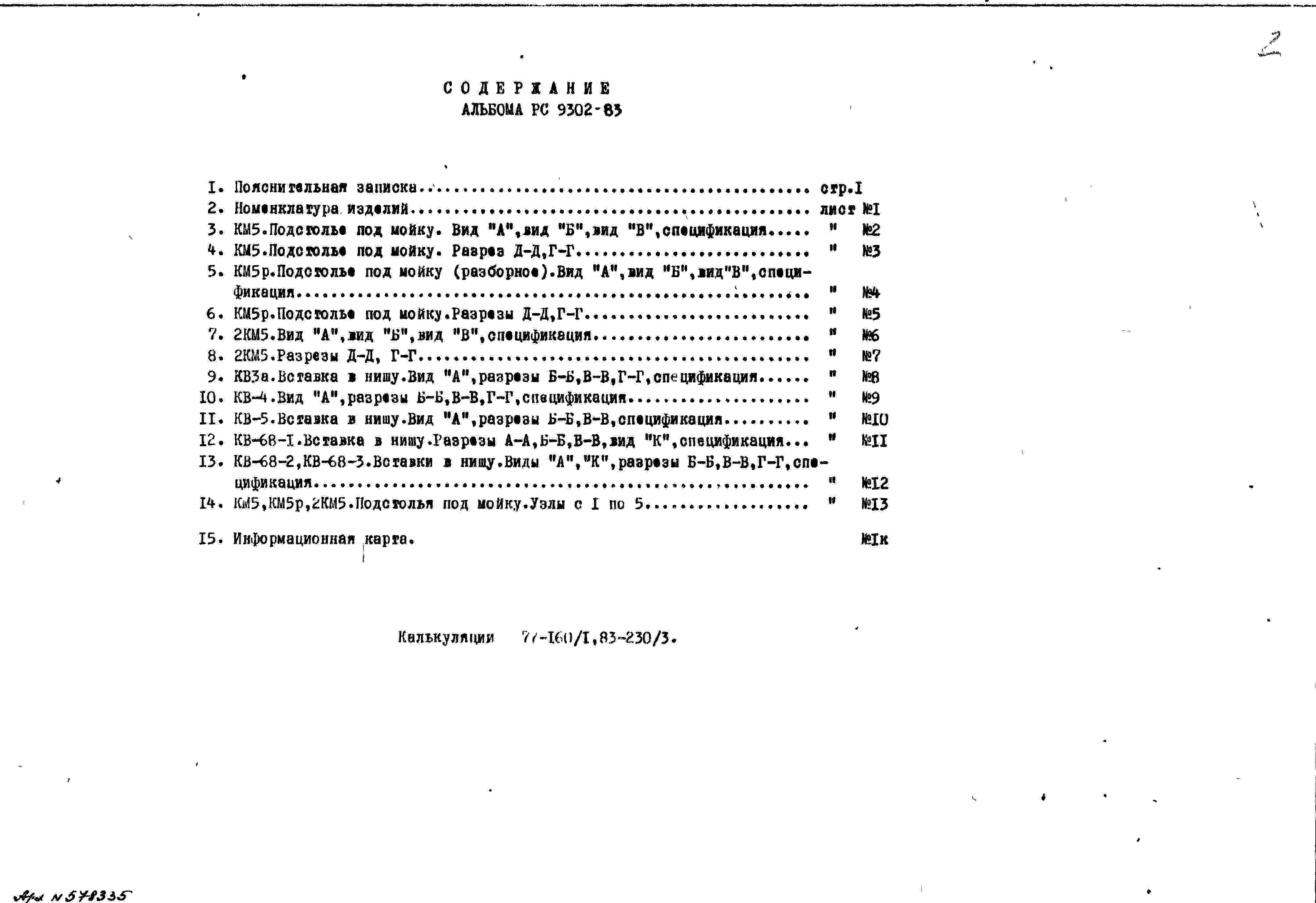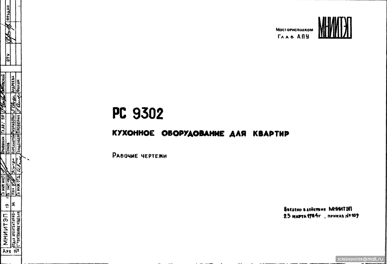 Шифр РС 9302 Кухонное оборудование для квартир (1984 г.)