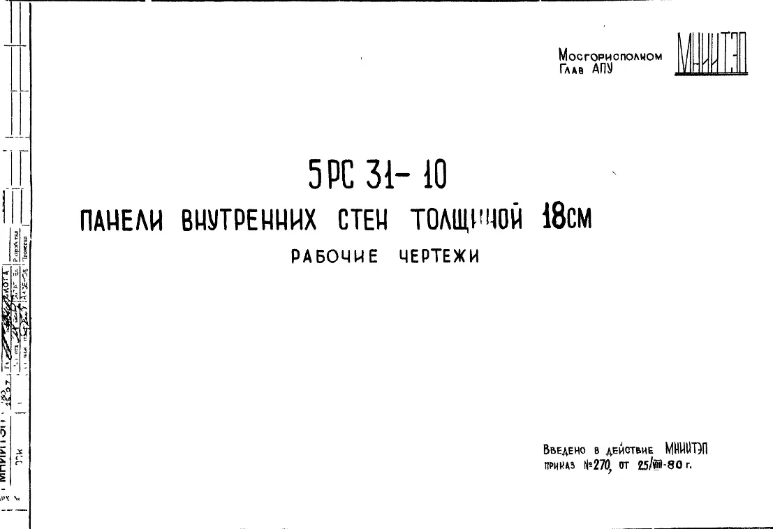 Шифр 5РС 31-10 Панели внутренних стен толщиной 18 см (1980 г.)