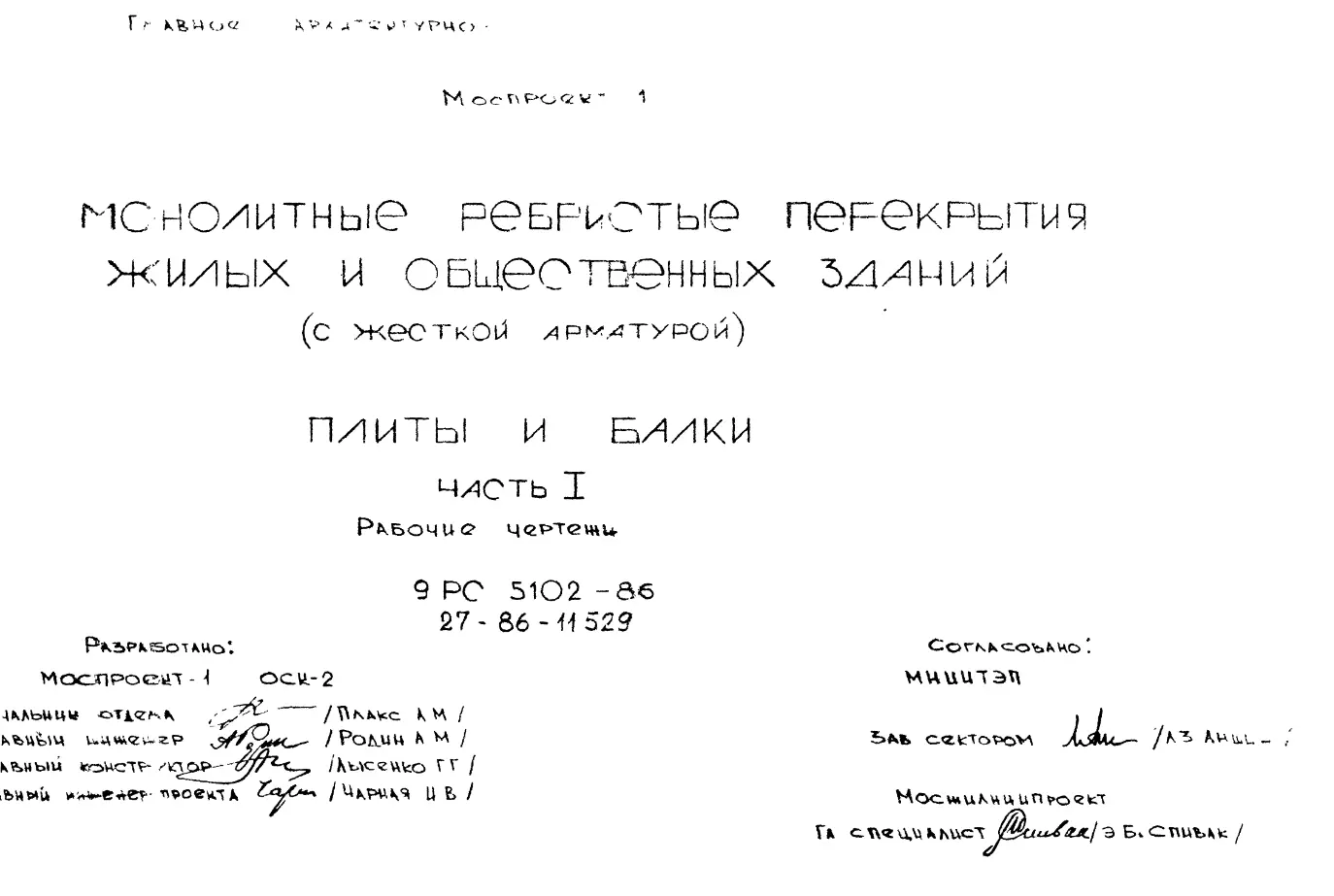 Шифр 9РС 5102-86 Монолитные ребристые перекрытия жилых общественных зданий (1986 г.)