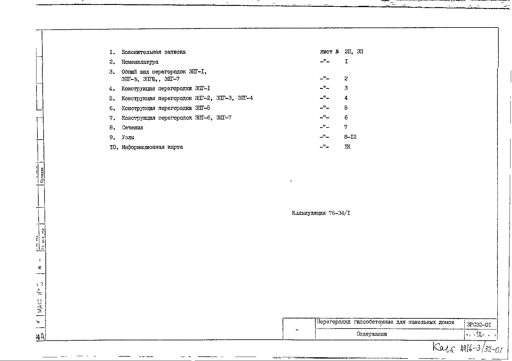 Шифр ЗРС 32-01 Перегородки гипсобетонные для панельных домов (1976 г.)