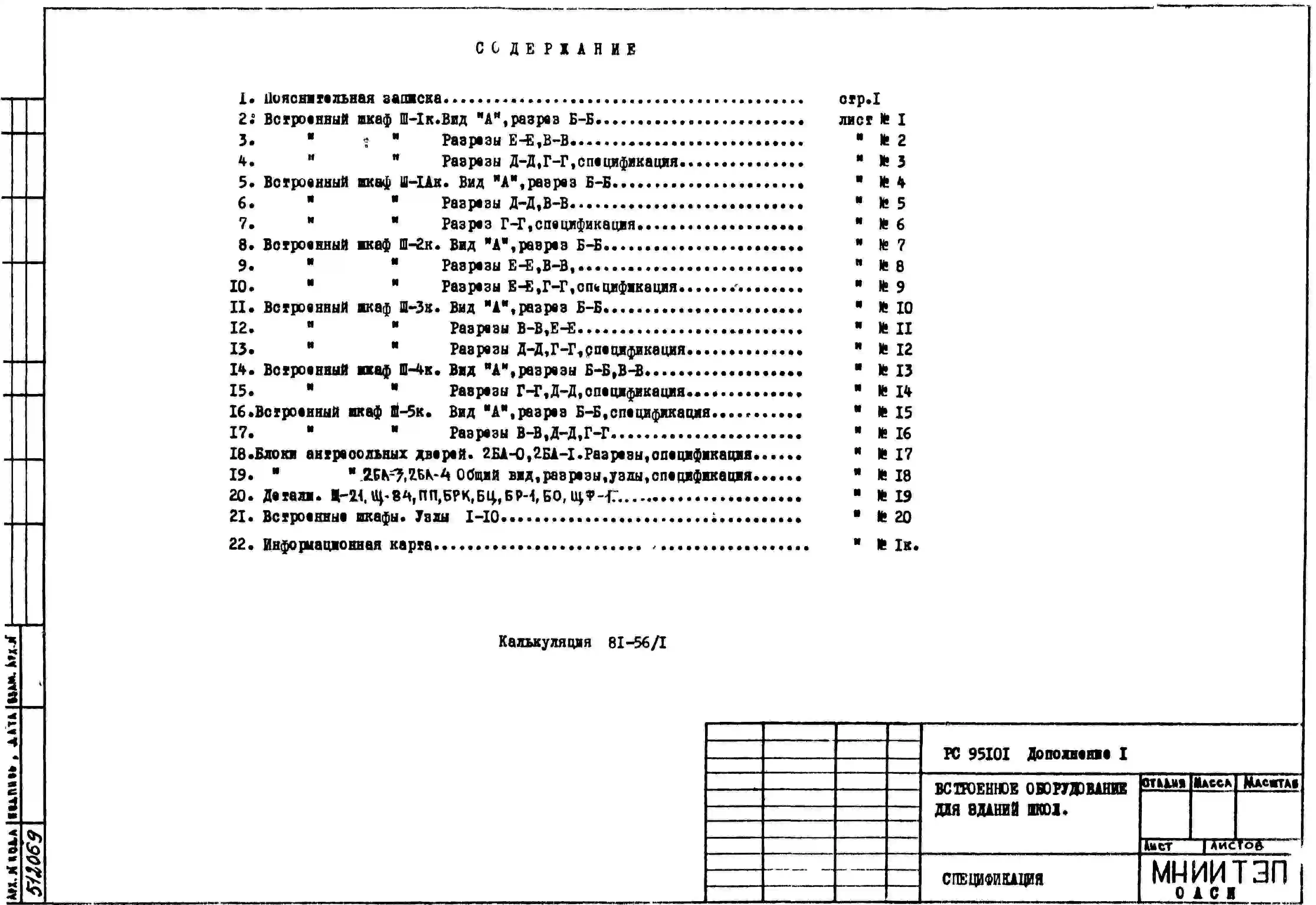 Шифр РС95101 Встроенное оборудование для зданий школ