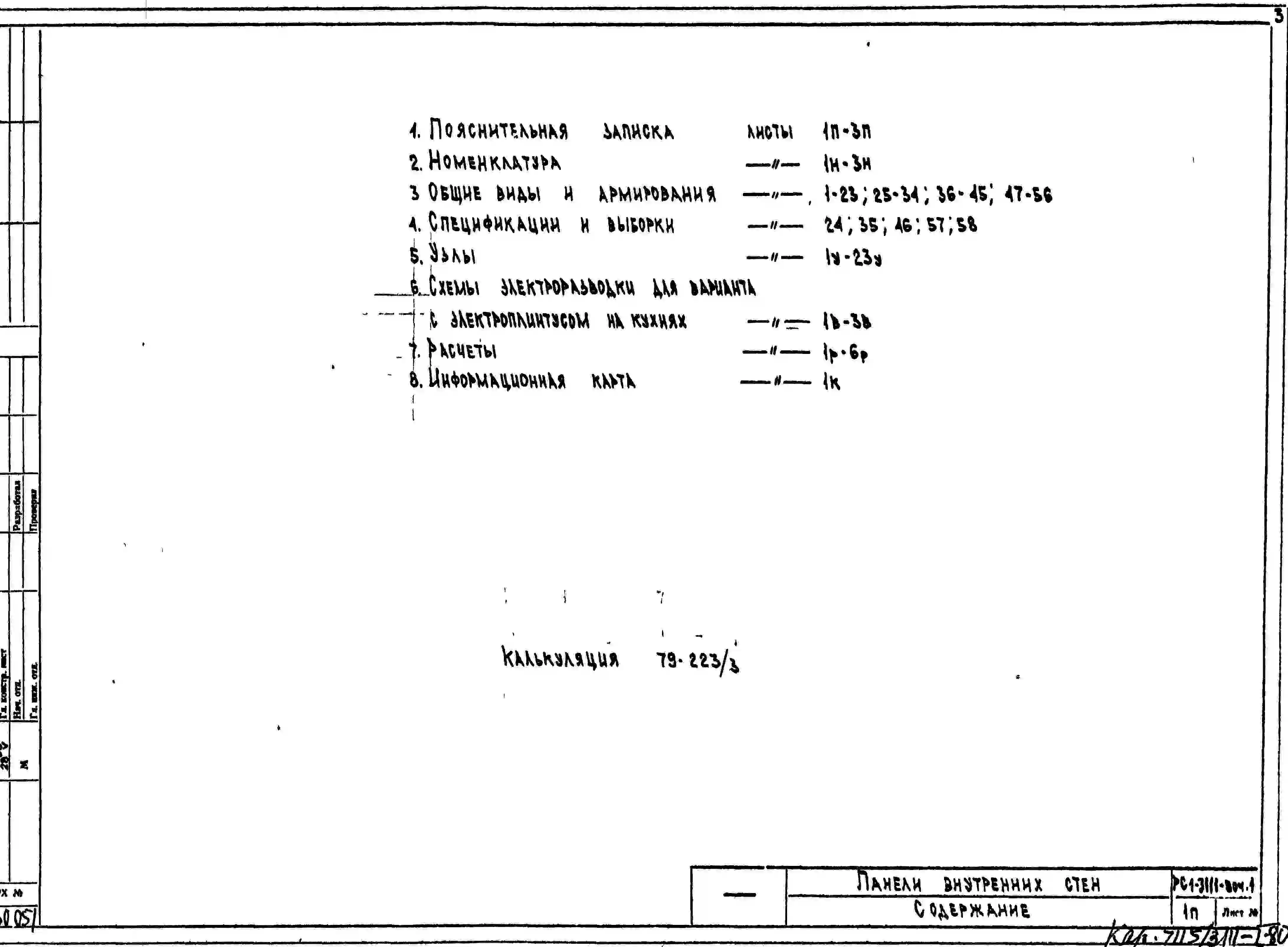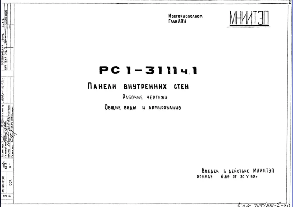 Шифр РС1 3111 Панели внутренних стен (1980 г.)