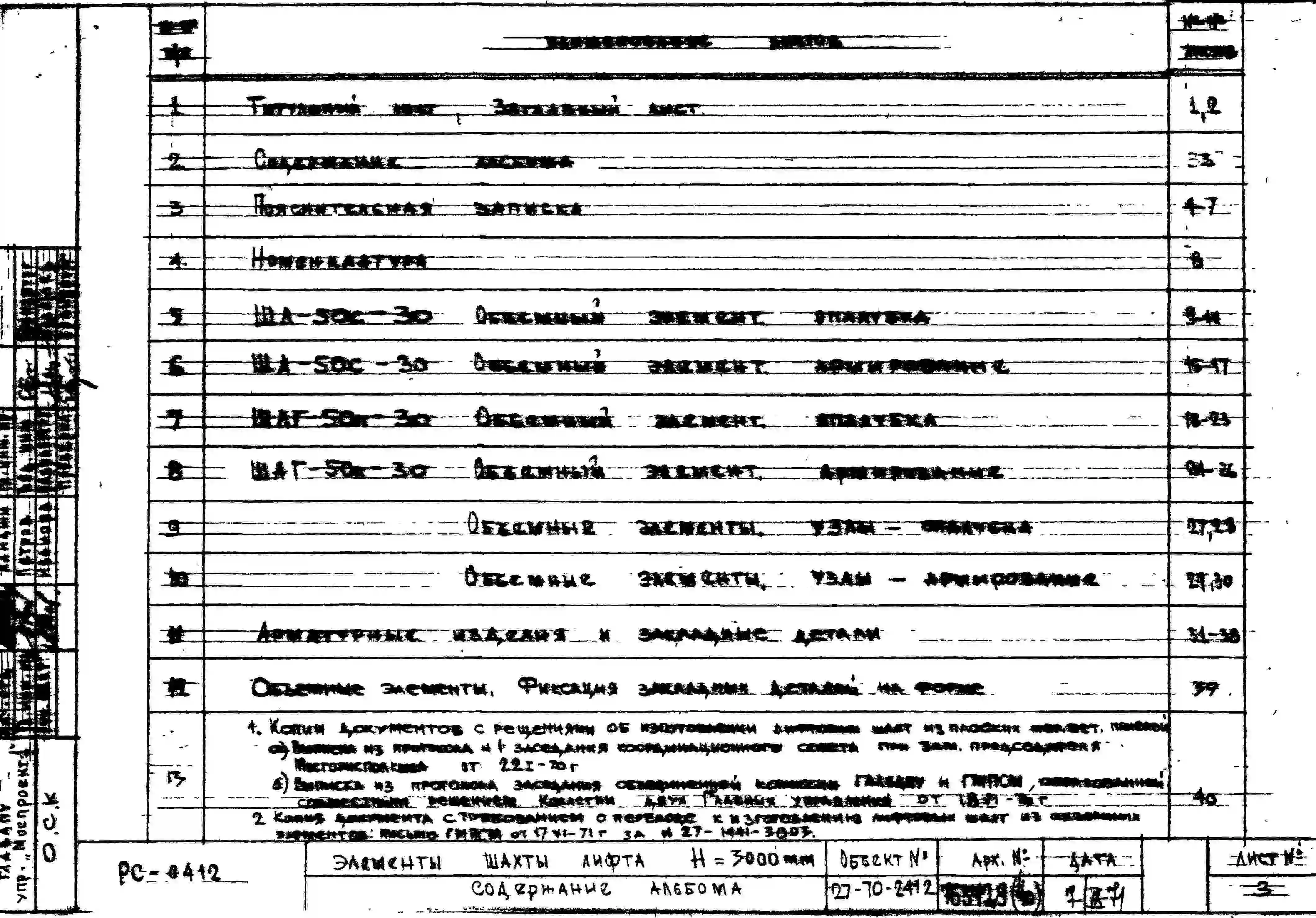 Шифр РС 0412 Объемные элементы шахт лифтов Н= 3000 мм (1972 г.)