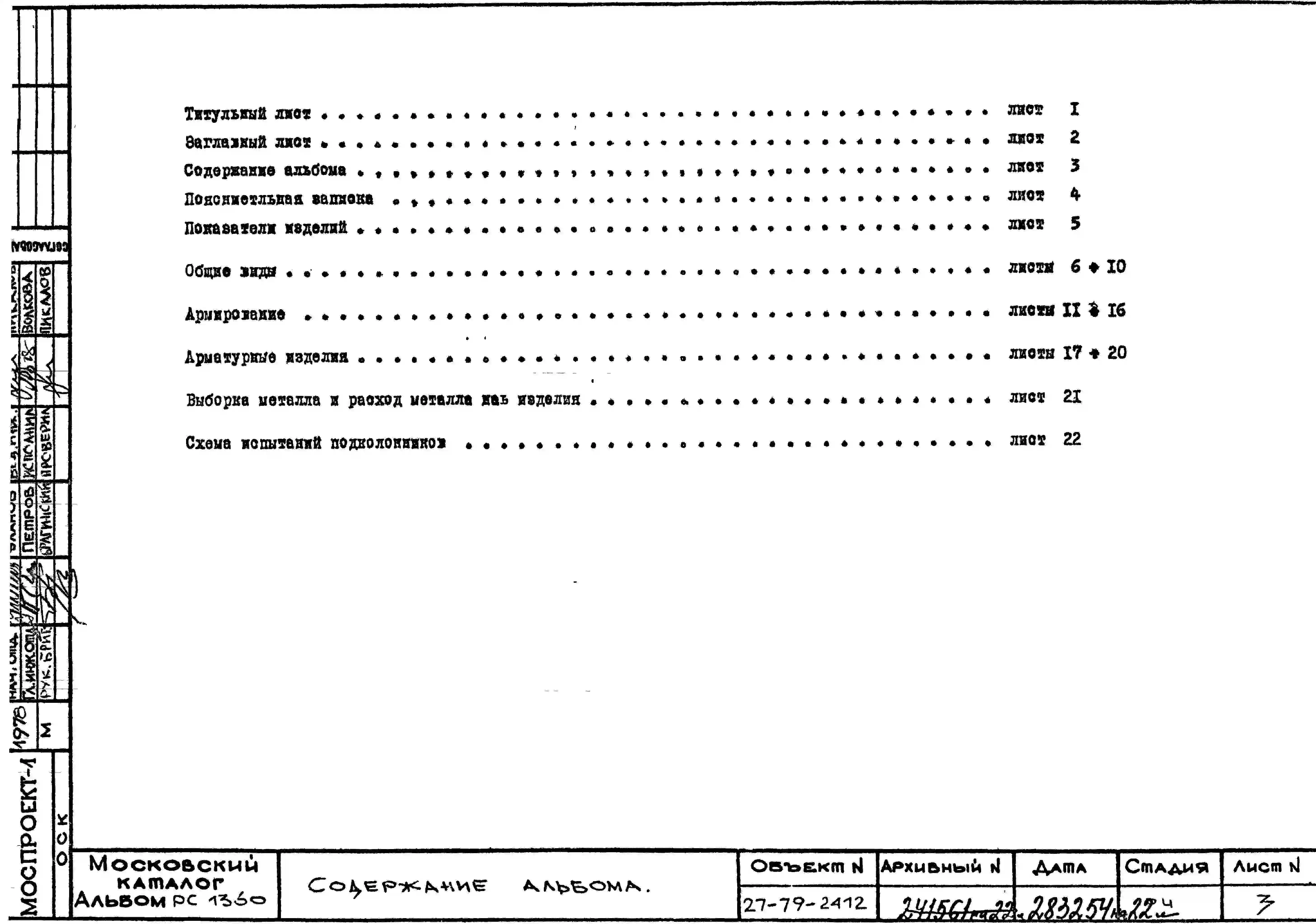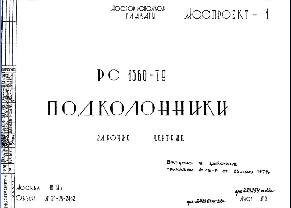 Шифр РС 1360-79 Подколонники (1979 г.)