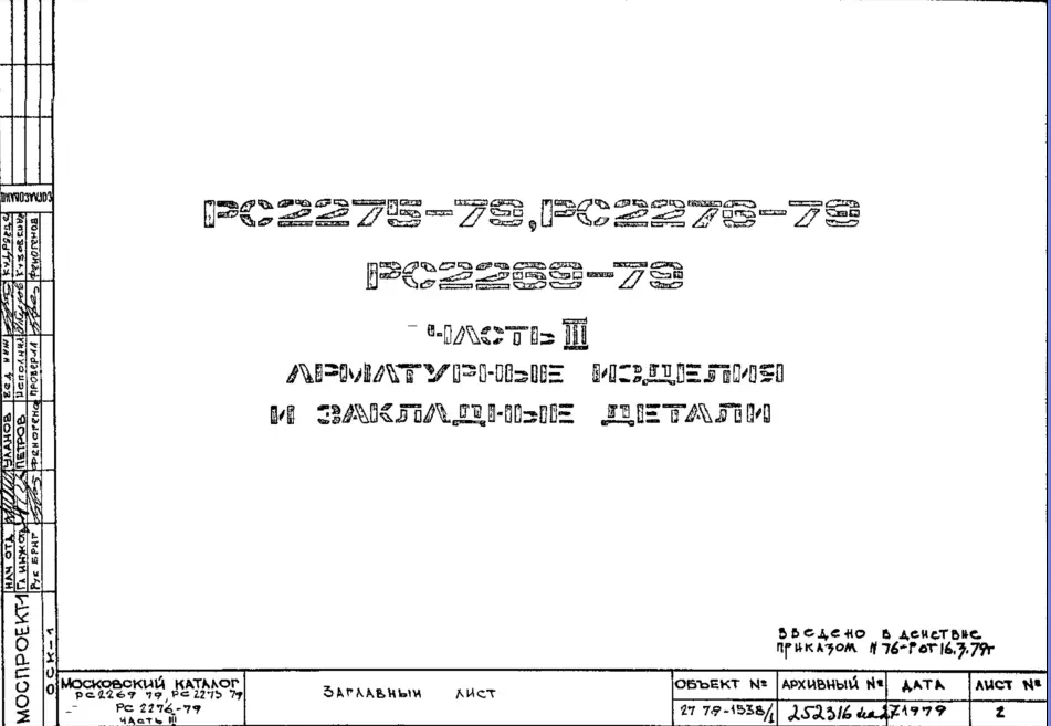 Шифр РС 2275-79 Арматурные изделия и закладные детали (1979 г.)