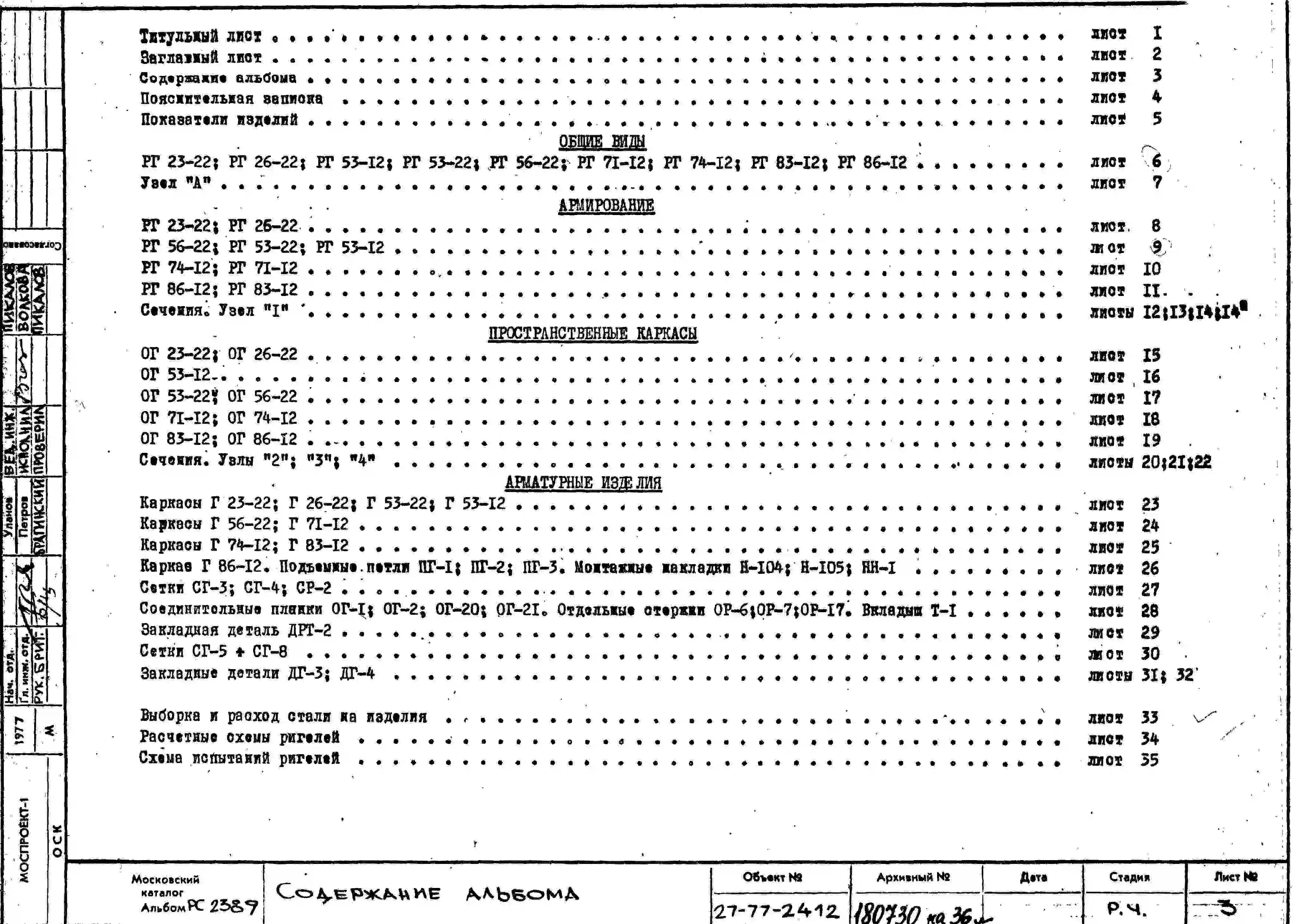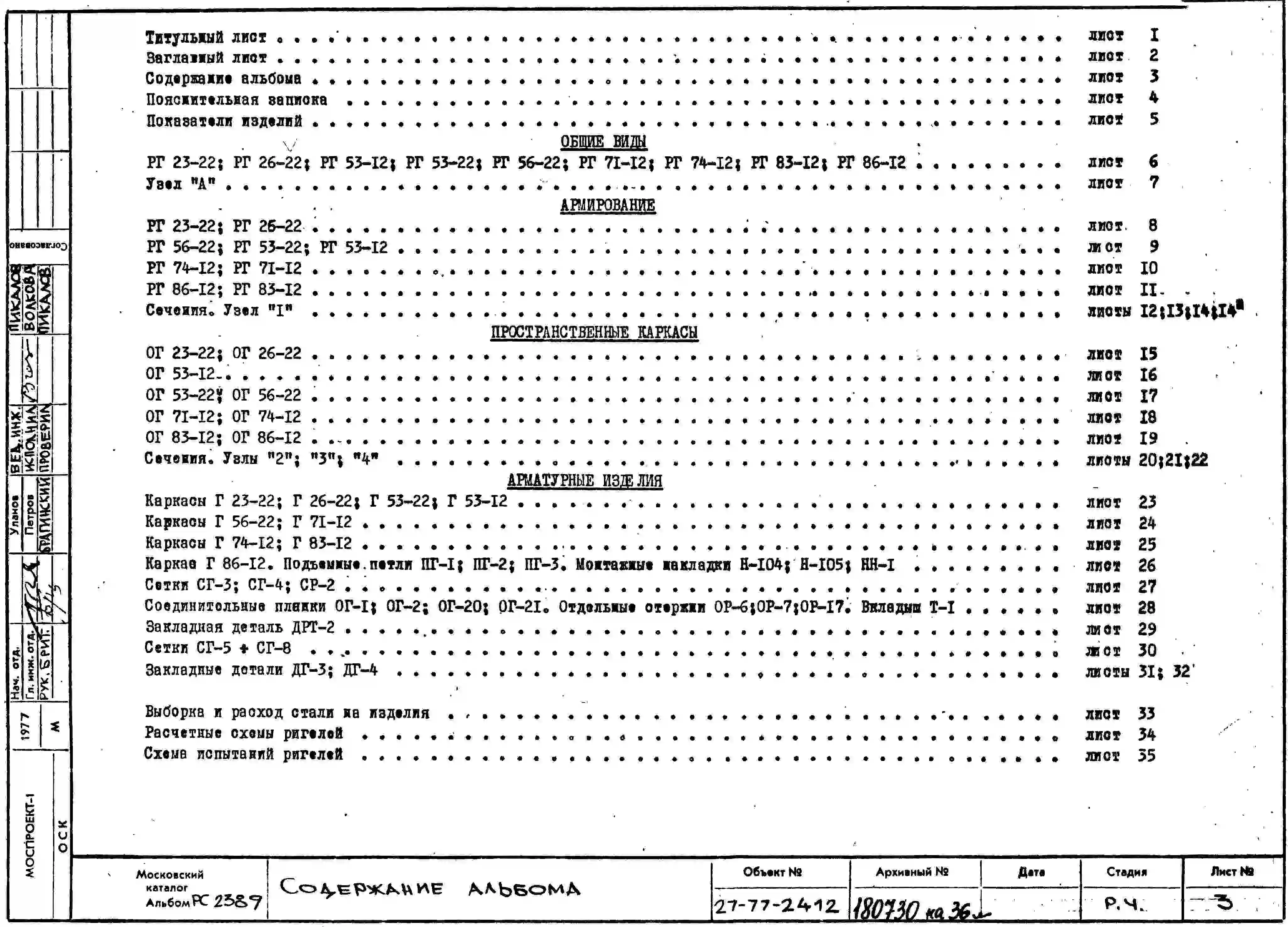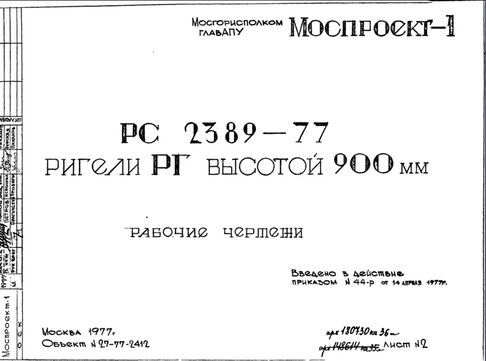 Шифр РС 2389-77 Ригели РГ высотой 900 мм (1977 г.)
