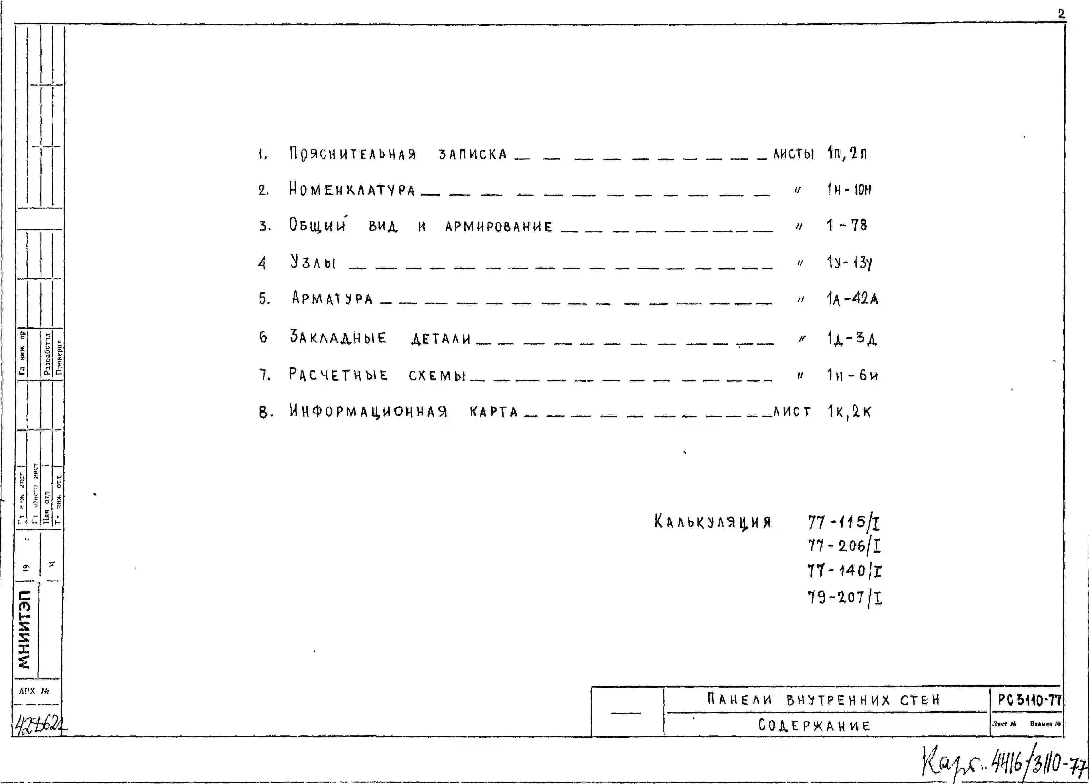Шифр РС 3110 Унифицированный лестнично-лифтовой узел 10 этажных панельных домов. Панели внутренних стен (1977 г.)