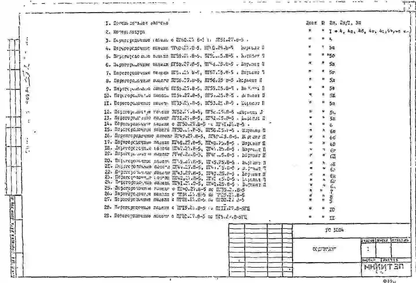 Шифр РС3204 Перегородки гипсобетонные для панельных и каркасно-панельных зданий (1972 г.)
