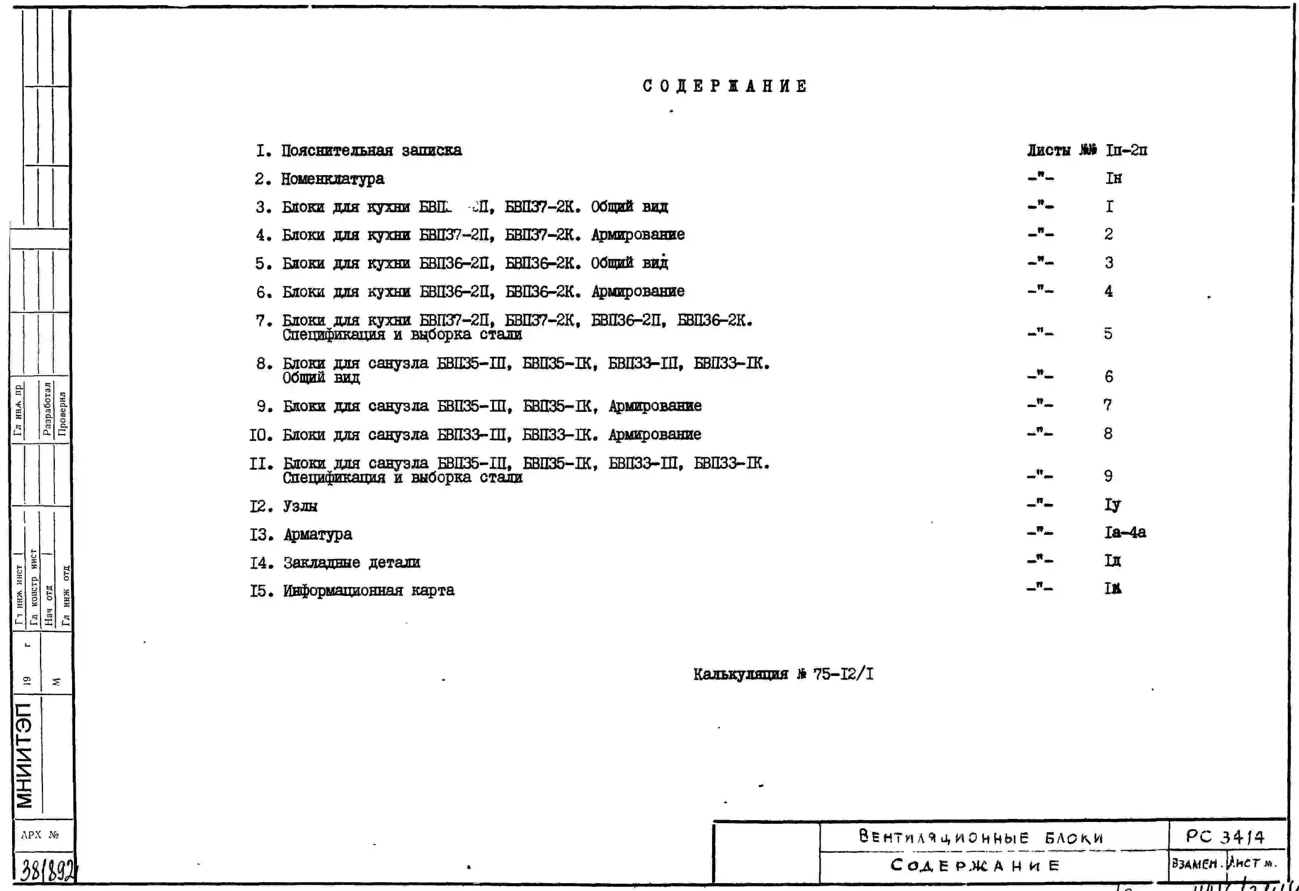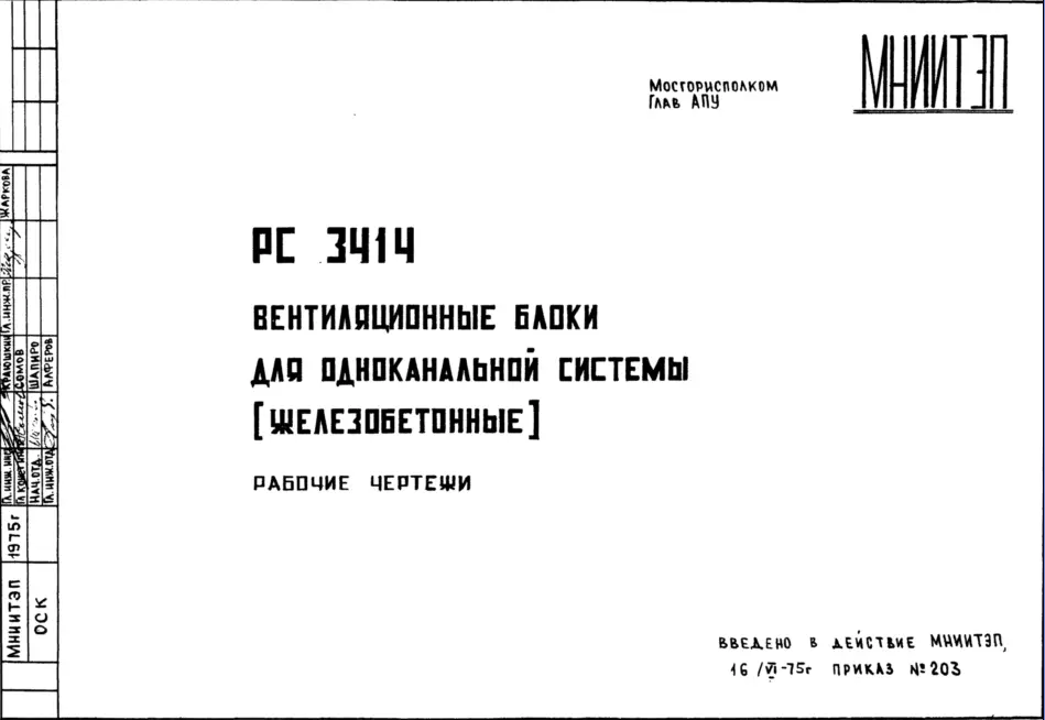 Шифр РС3414 Вентиляционные блоки для одноканальной системы (железобетонные)(1975 г.)