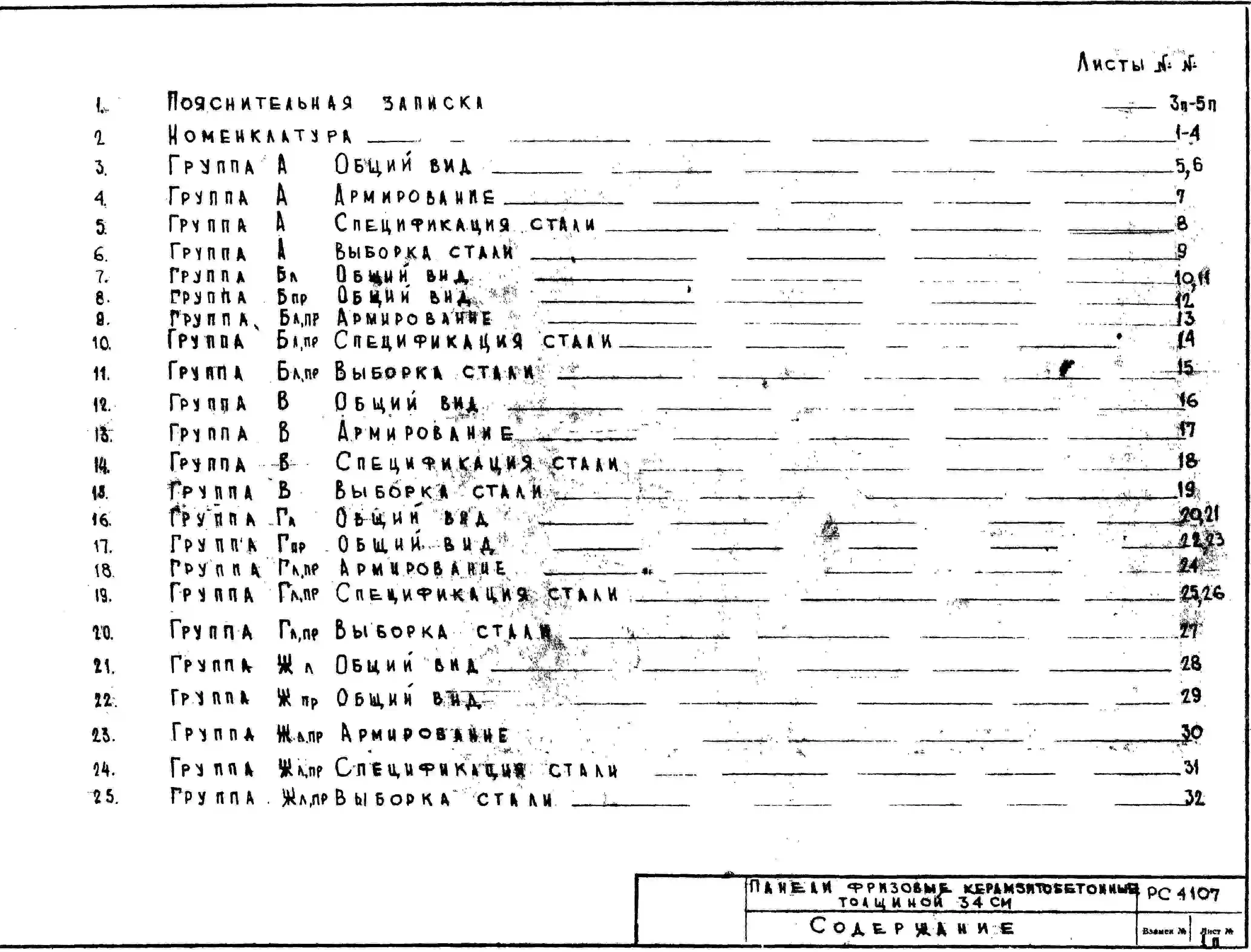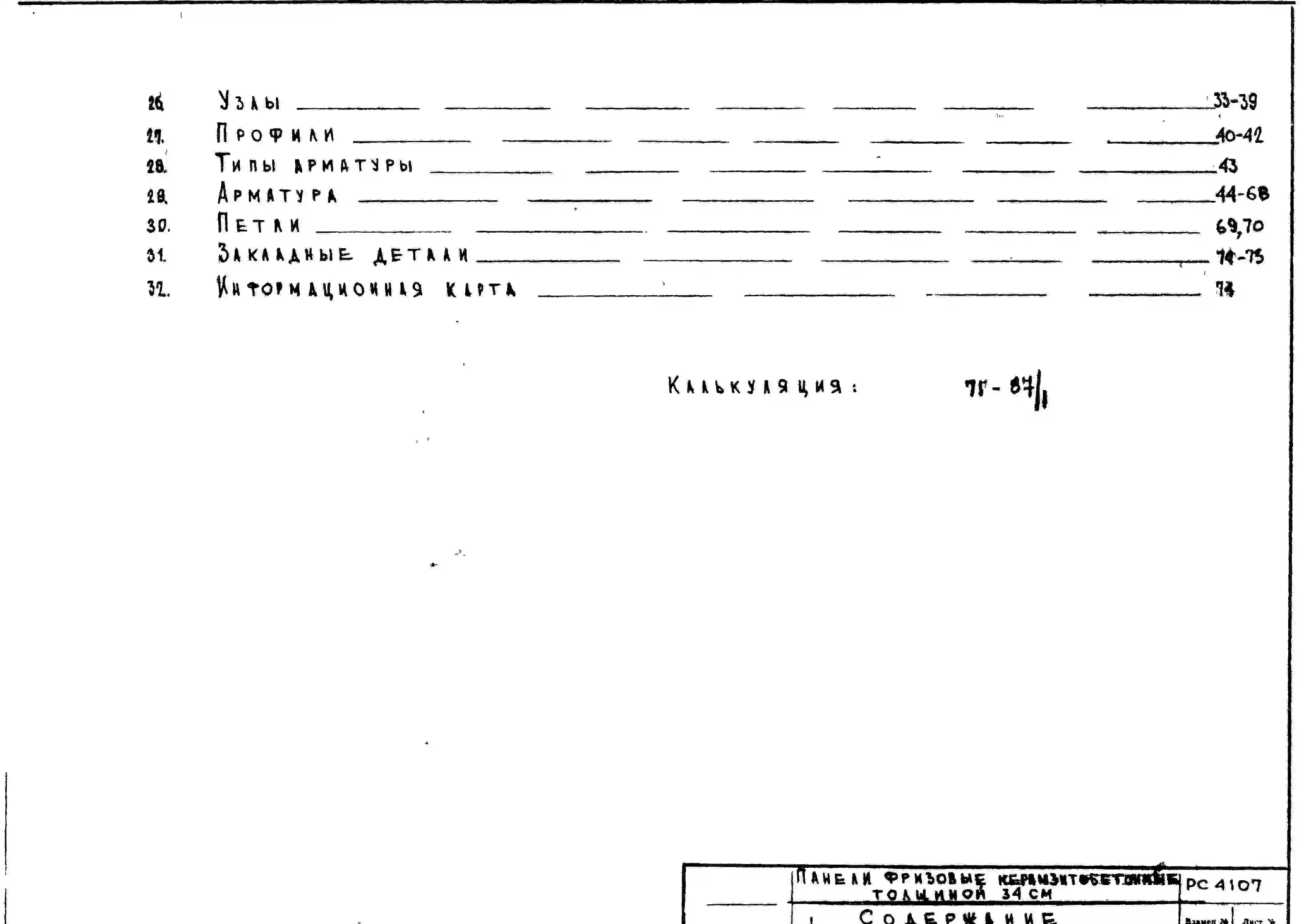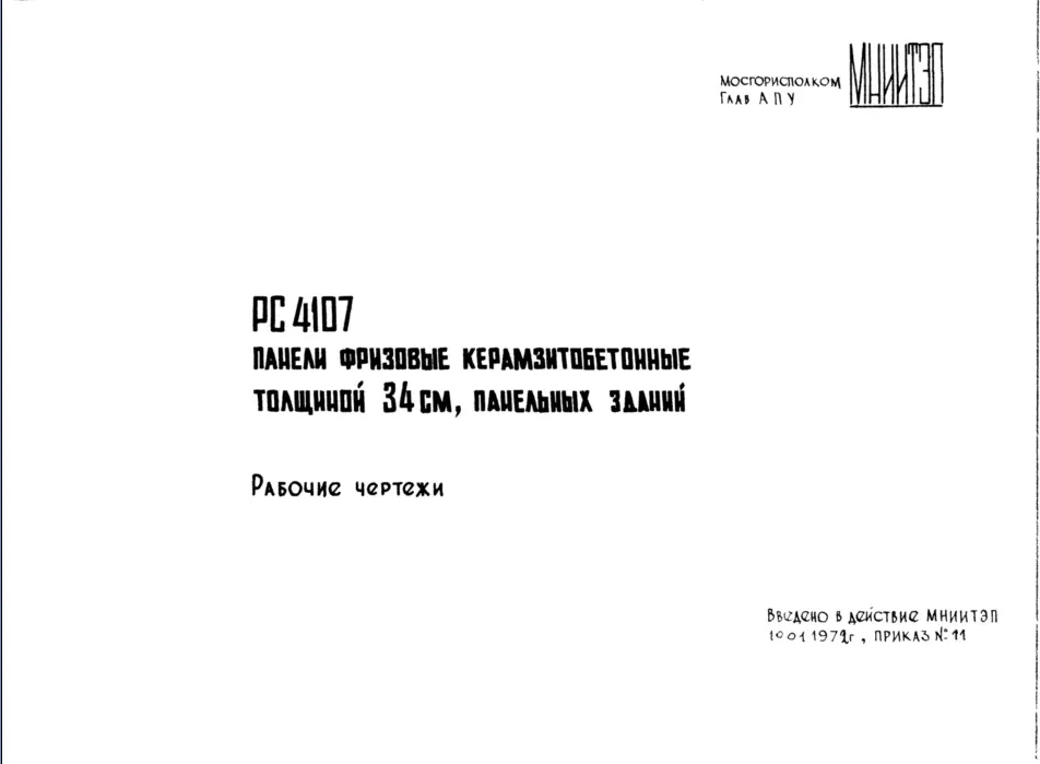 Шифр РС4107 Панели фризовые керамзитобетонные толщиной 34 см, панельных зданий (1972 г.)
