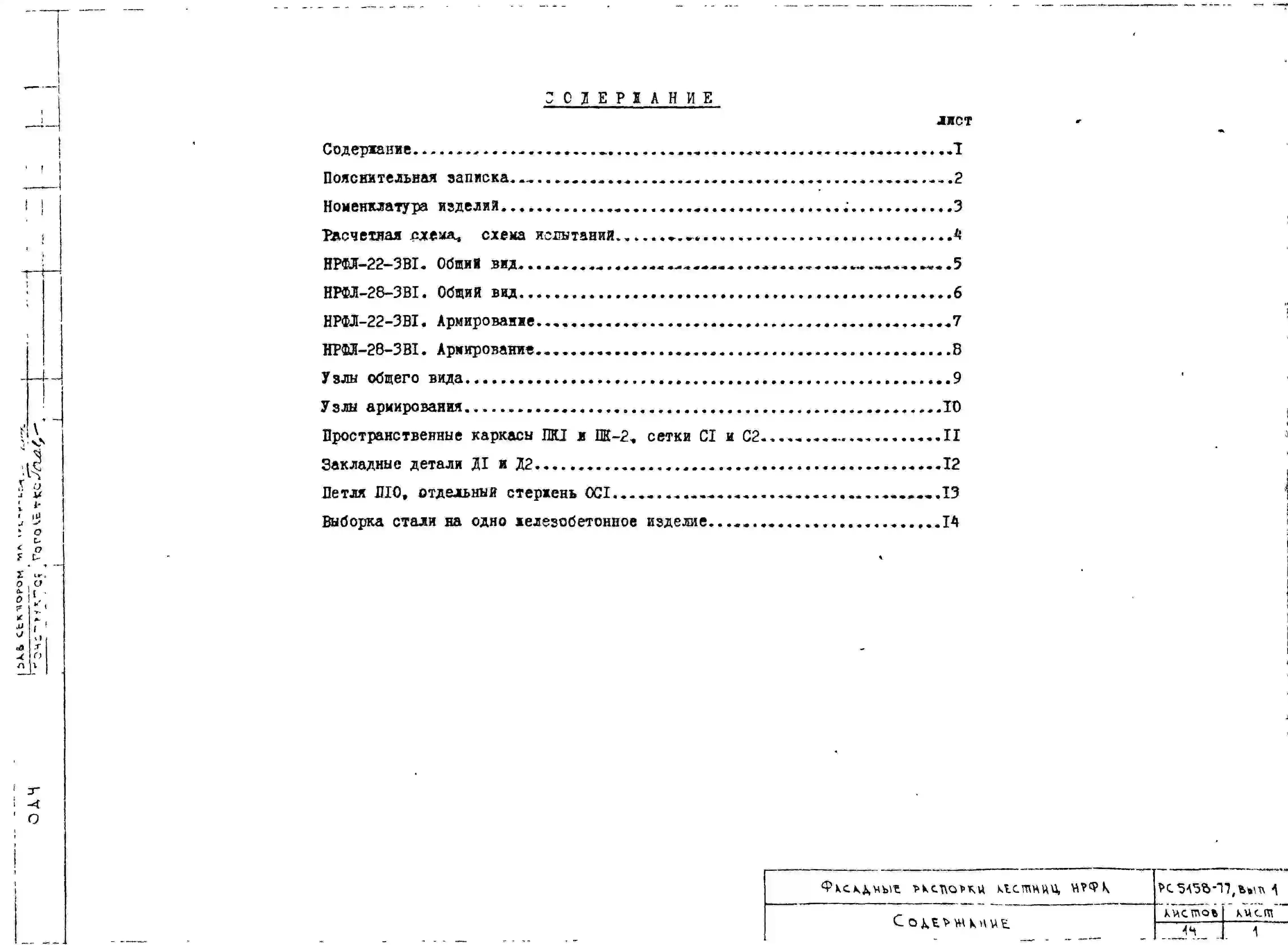 Шифр РС5158-77 Фасадные распорки лестниц НРФЛ-22-3В1; НРФЛ-28-3В1 (вариант из бетона марки М200) (1977 г.)