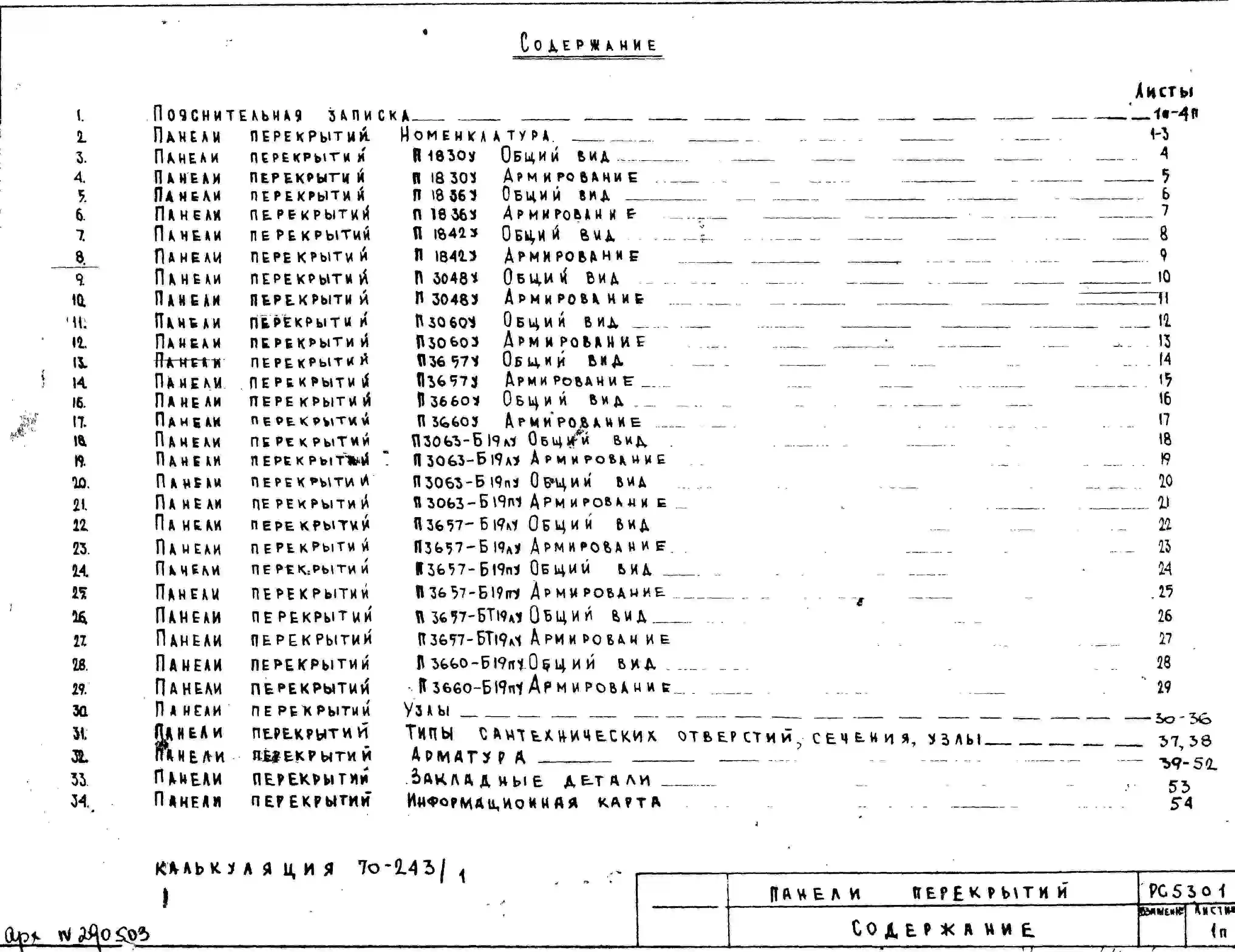 Шифр РС5301 Панели перекрытий сплошные, толщиной 14 см (бетон М300) (1970 г.)