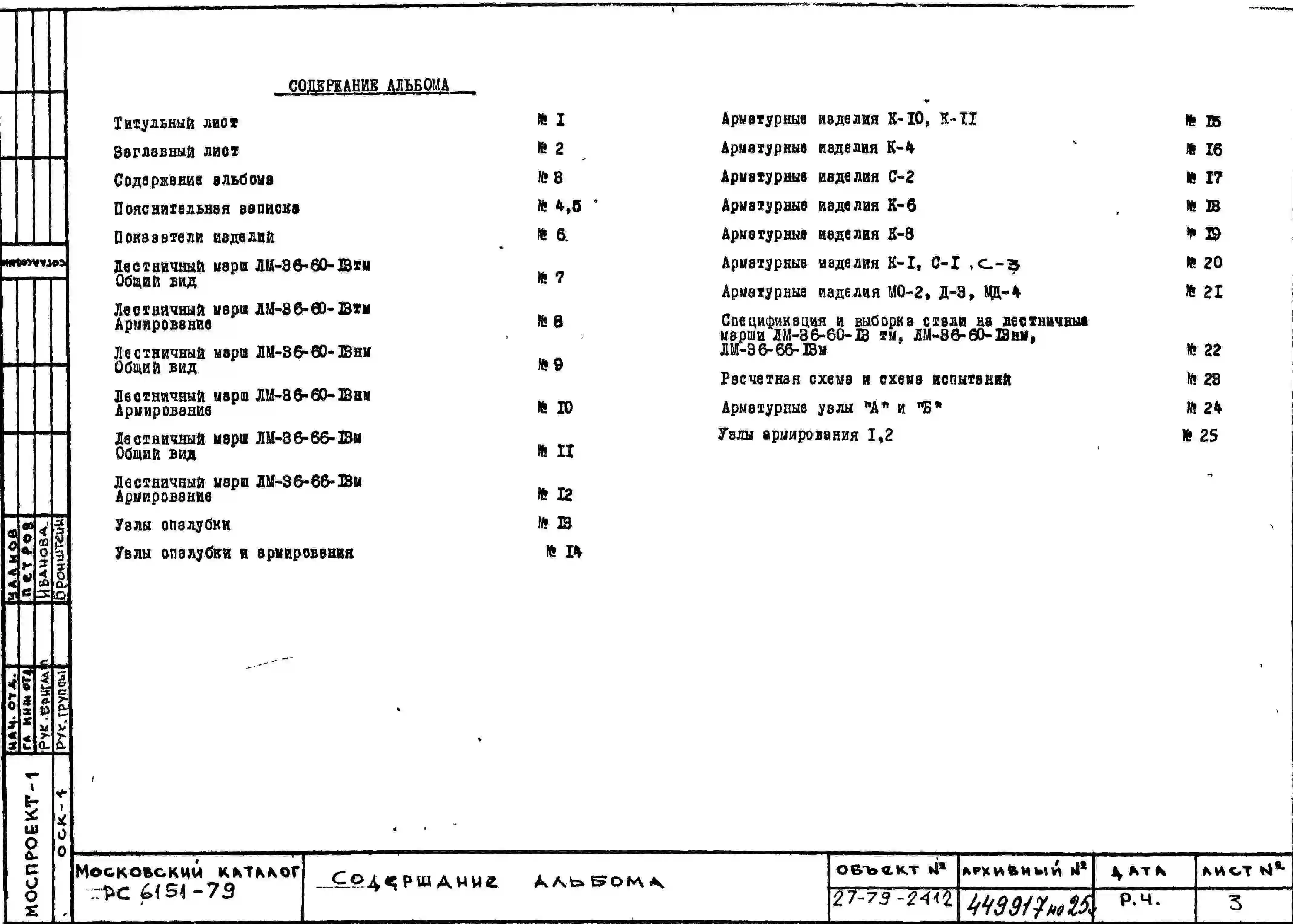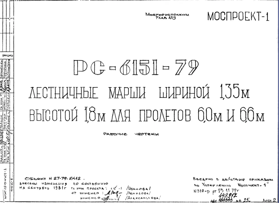 Шифр РС 6151-79 Лестничные марши шириной 1,35 м выотой 1,8 м для пролетов 6,0 м и 6,6 м (1979 г.)
