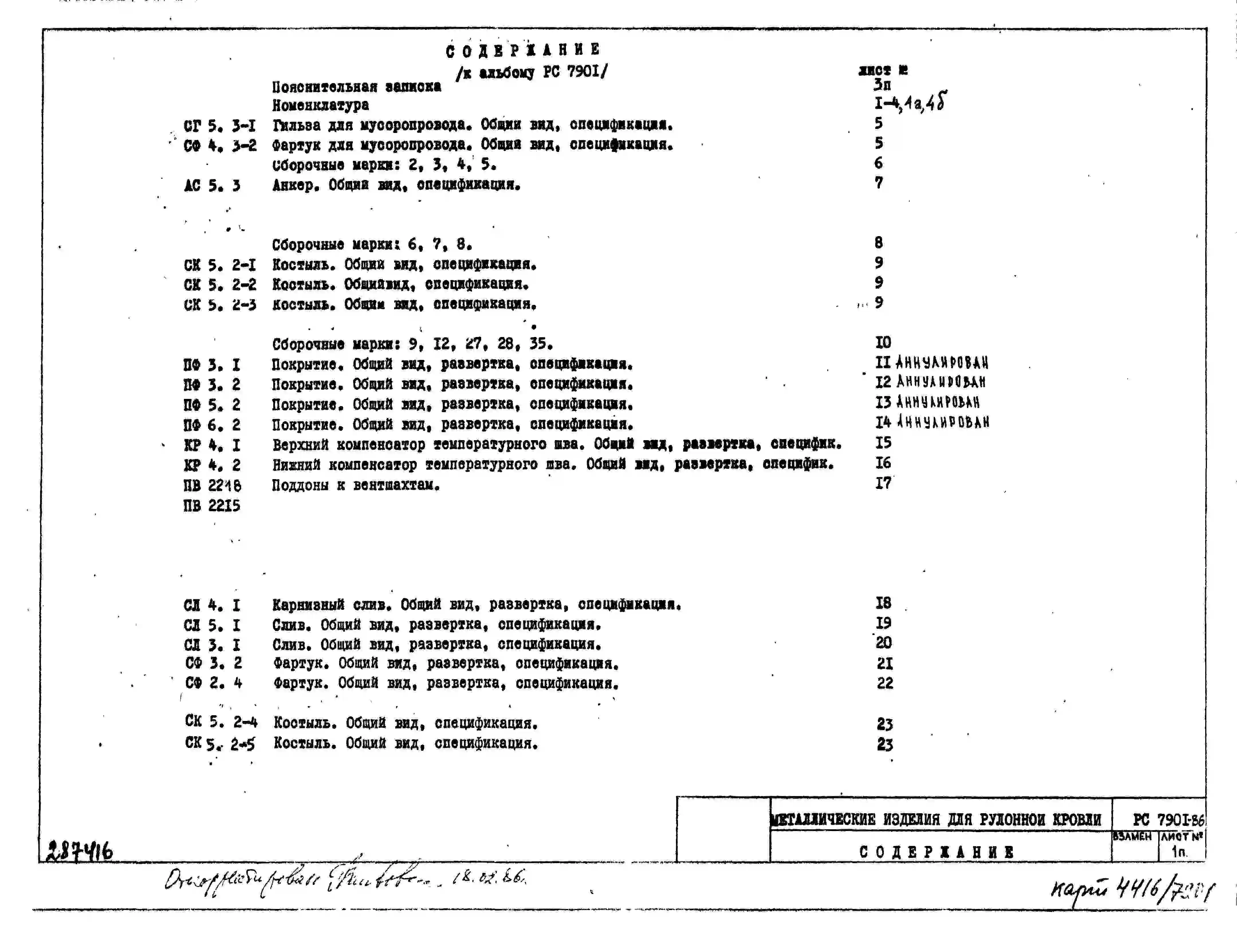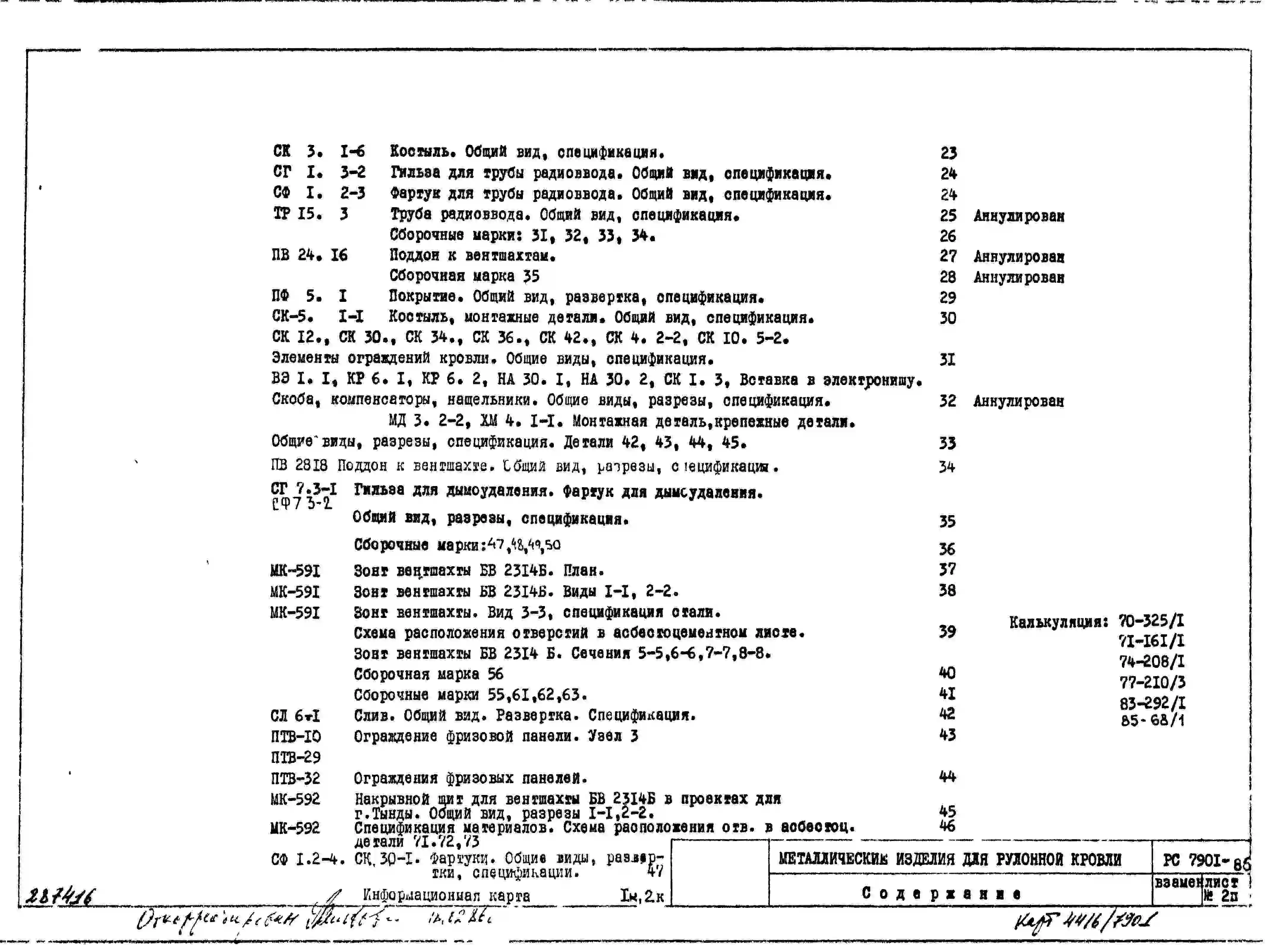 Шифр РС7901 Металлические изделия для рулонной кровли(1970 г.)