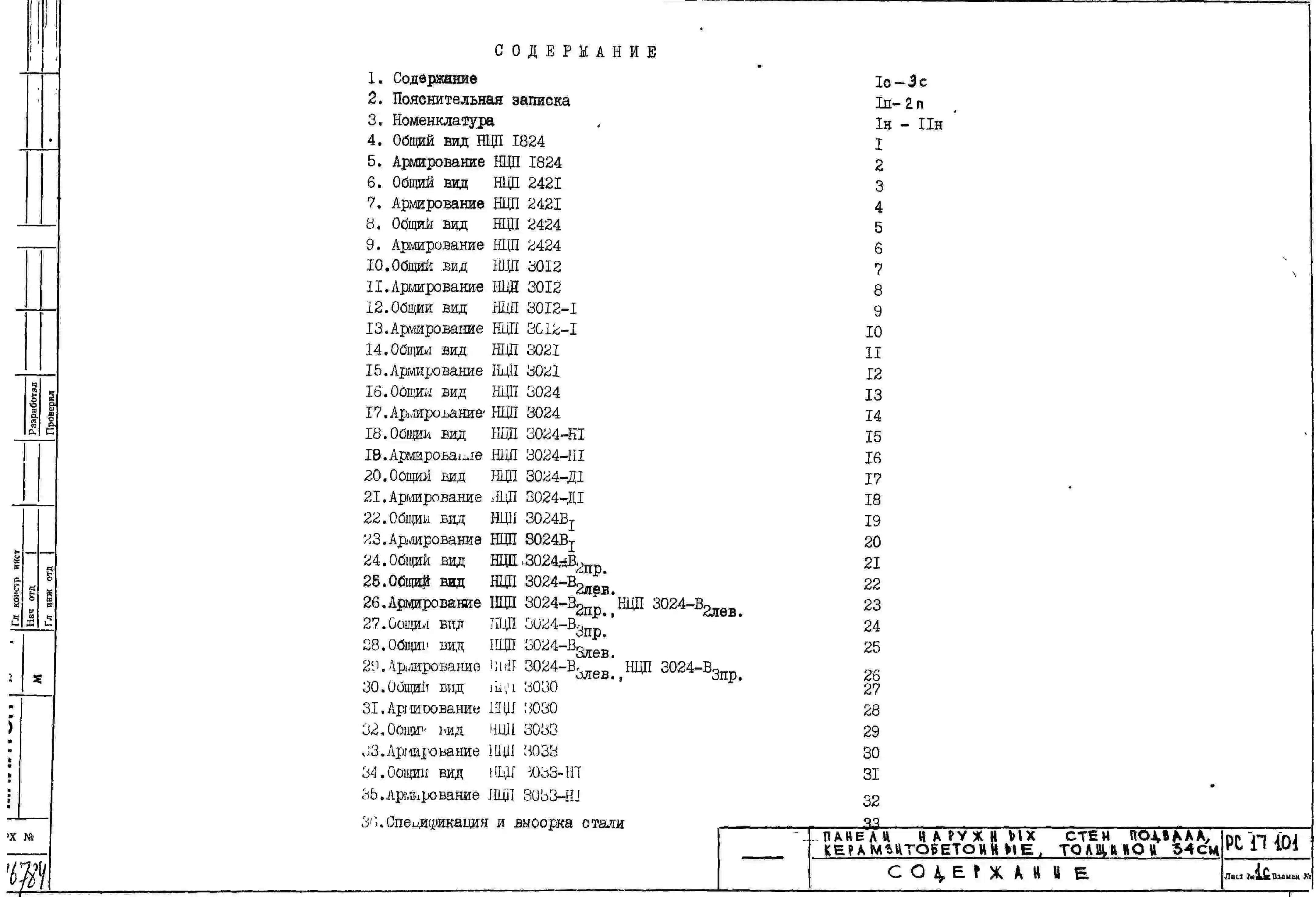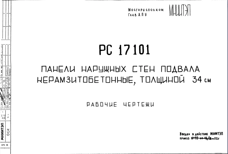 Шифр РС 17101 Панели наружных стен подвала керамзитобетонные, толщиной 34 см (1977 г.)
