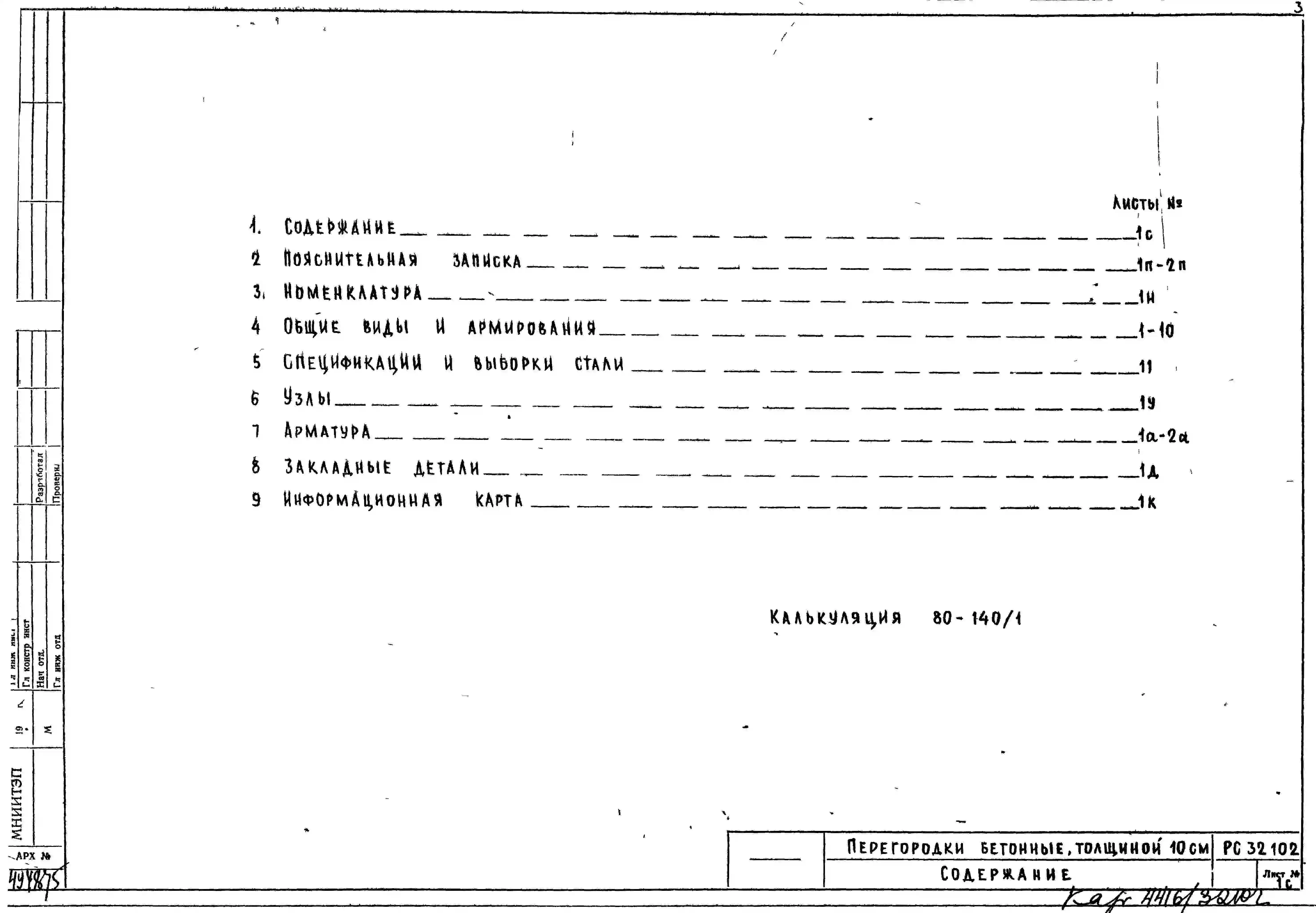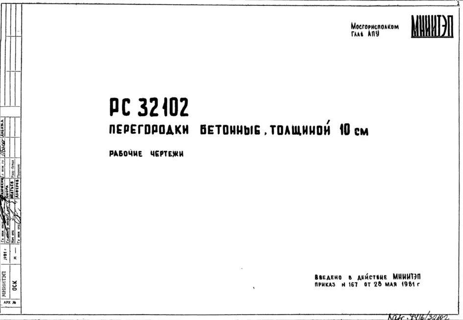 Шифр РС32102 Перегородки бетонные, толщиной 10 см (1981 г.)