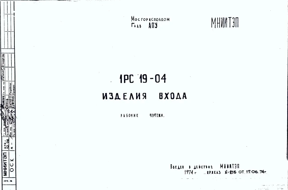 Шифр 1РС 19-04 Изделия входа (1974 г.)
