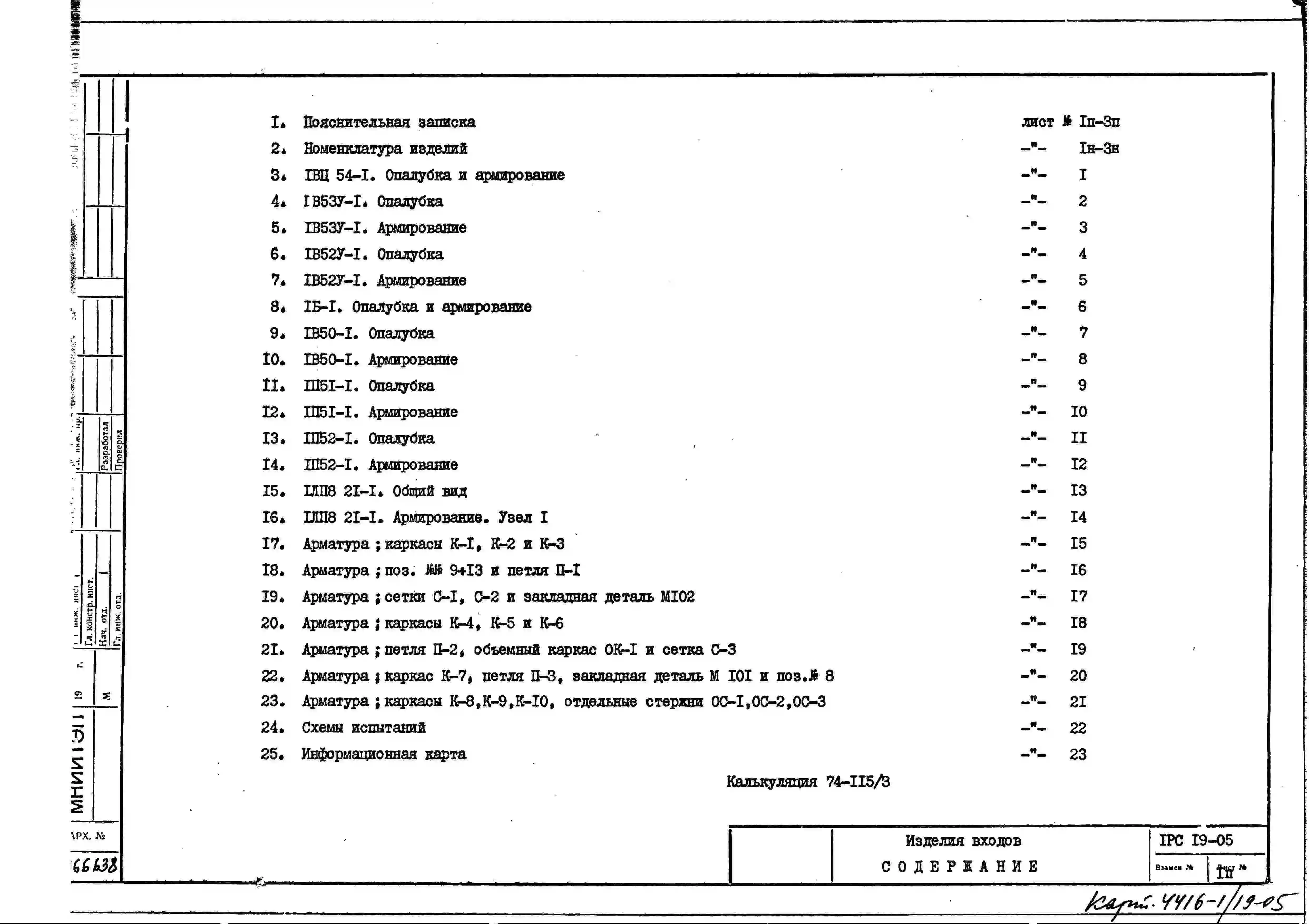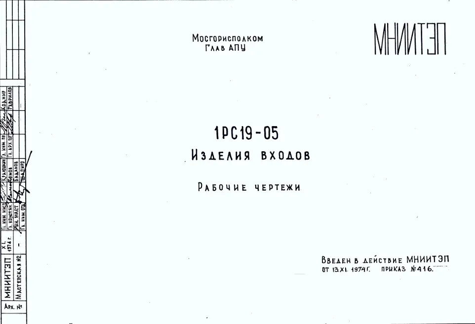 Шифр 1РС 19-05 Изделия входов (1974 г.)
