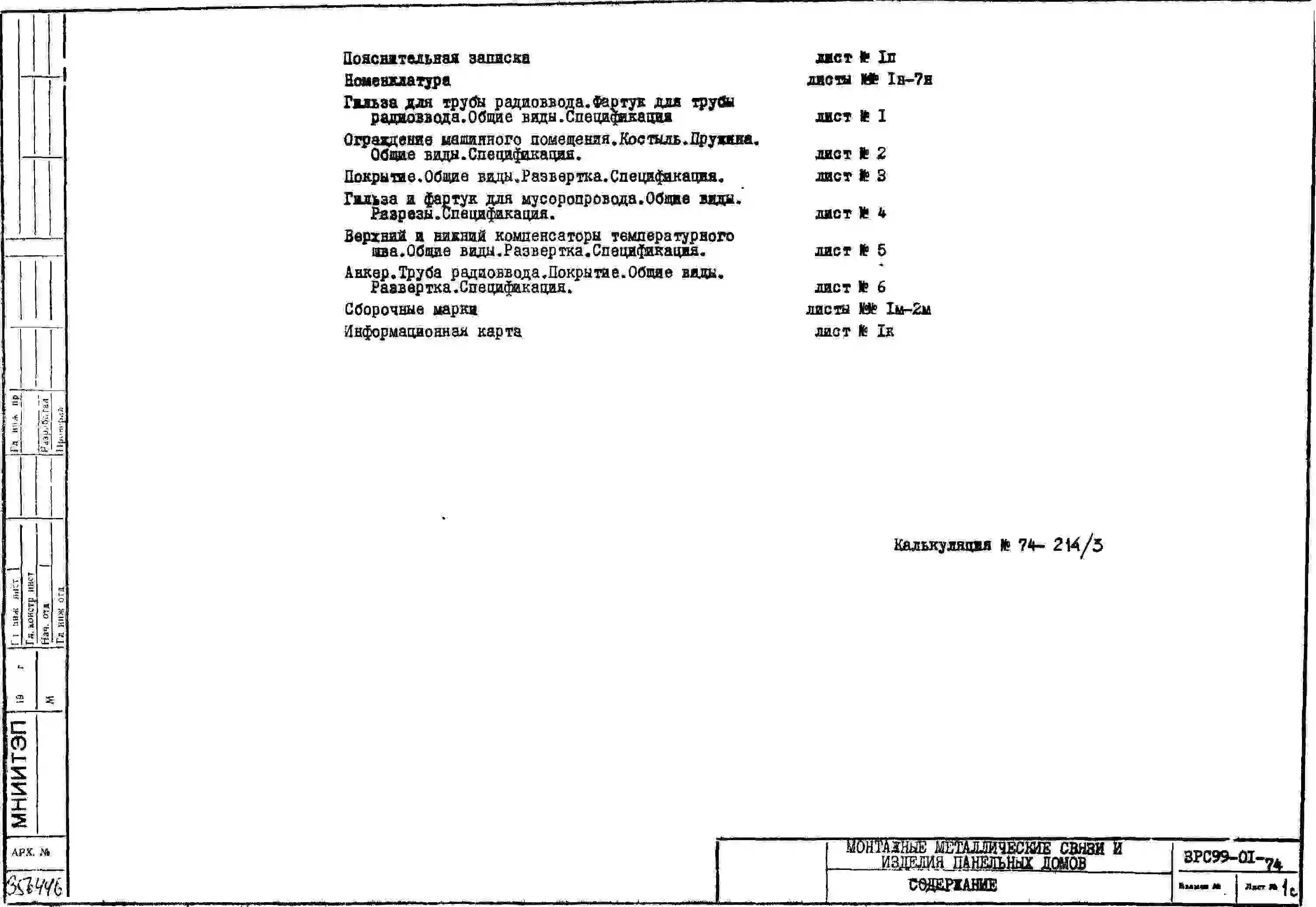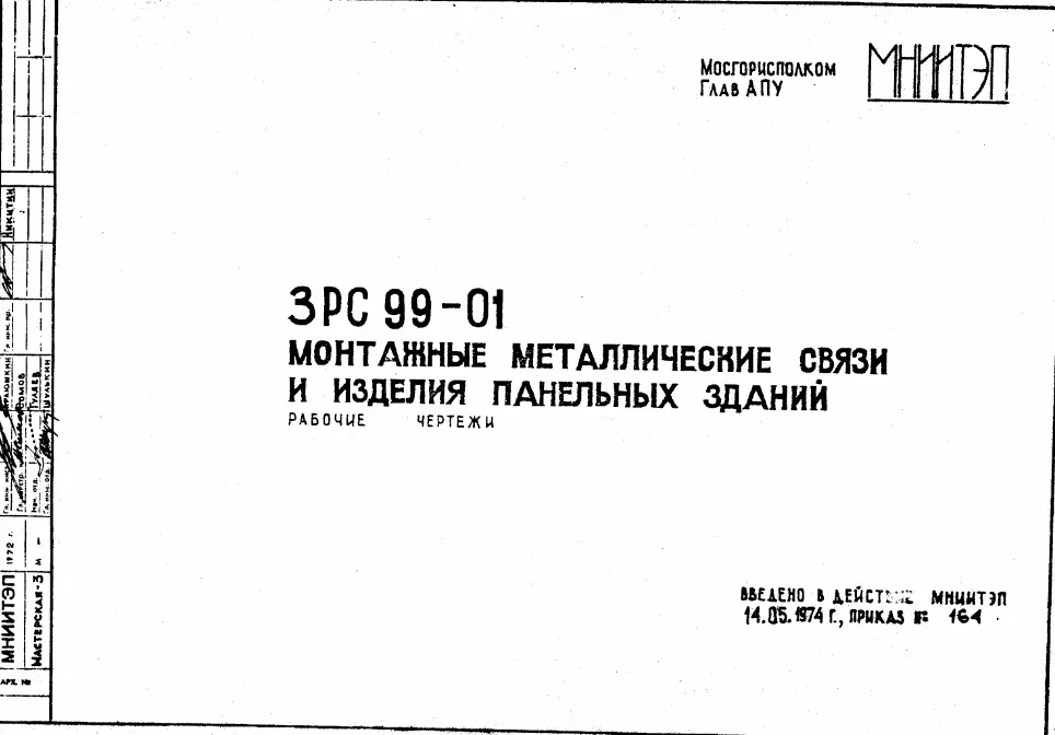Шифр 3РС 99-01 Монтажные металлические связи и изделия панельных зданий (1974 г.)