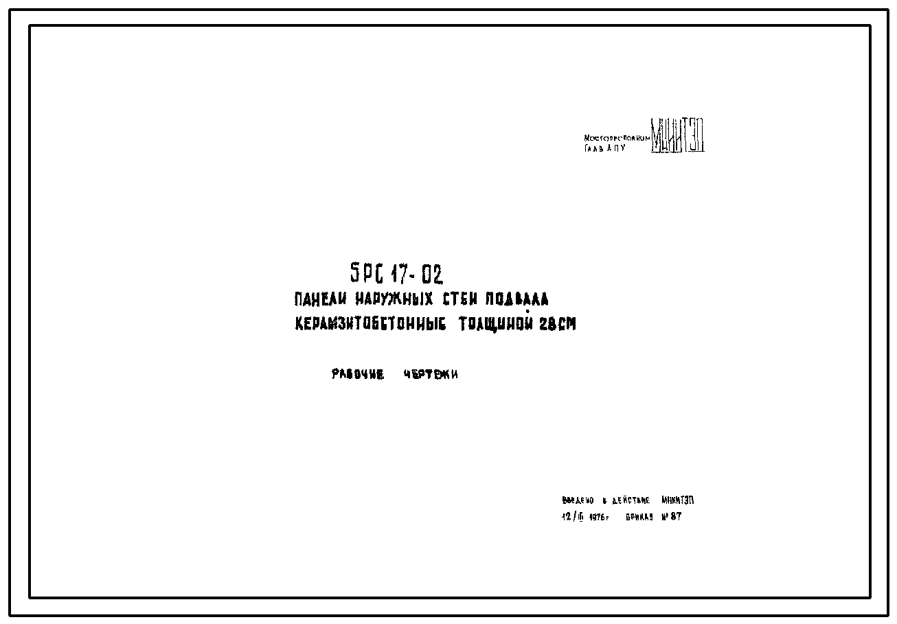 Шифр 5РС 17-02 Панели наружных стен подвала керамзитобетонные толщиной 28 см (1976 г.)