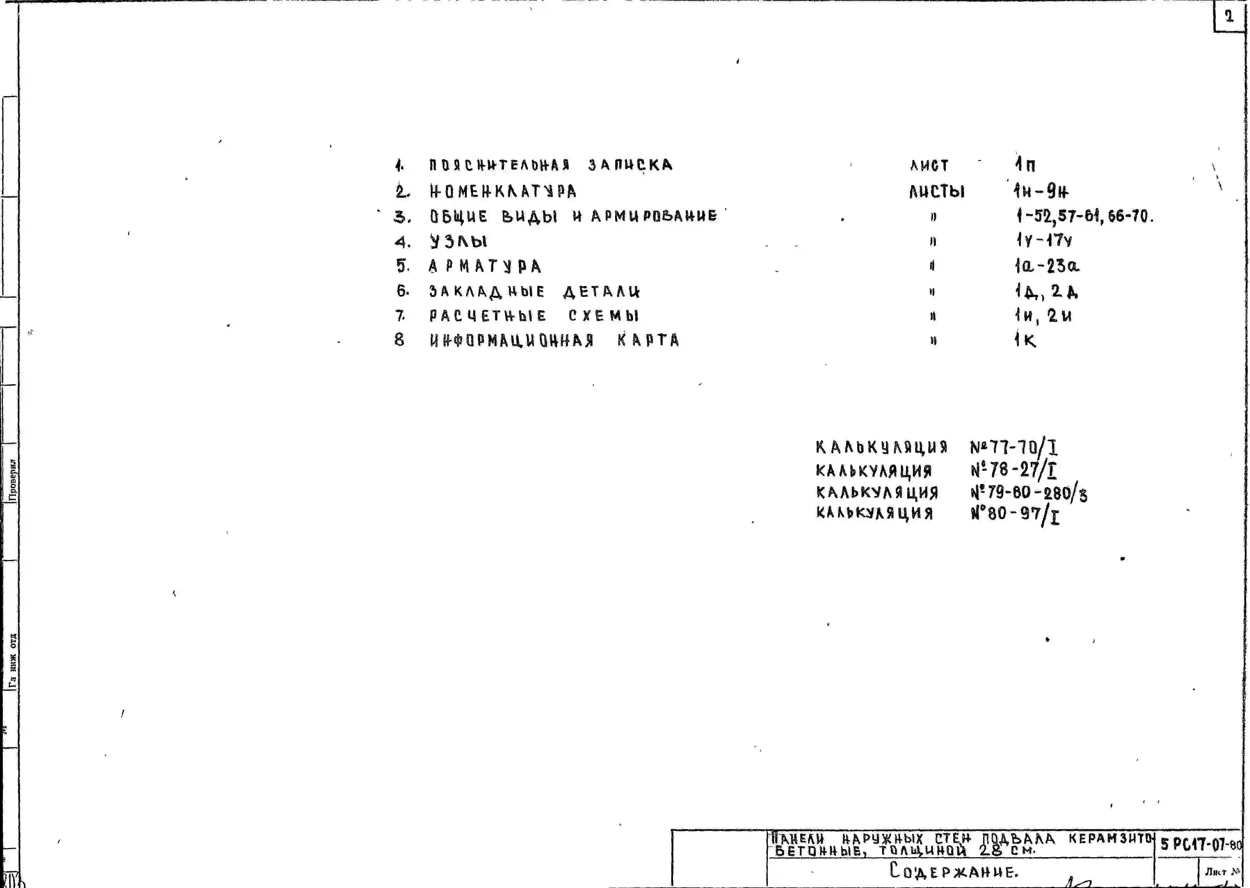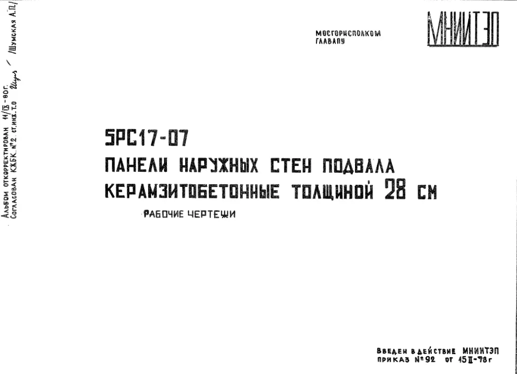 Шифр 5РС 17-07 Панели наружных стен подвала керамзитобетонные толщиной 28 см (1978 г.)