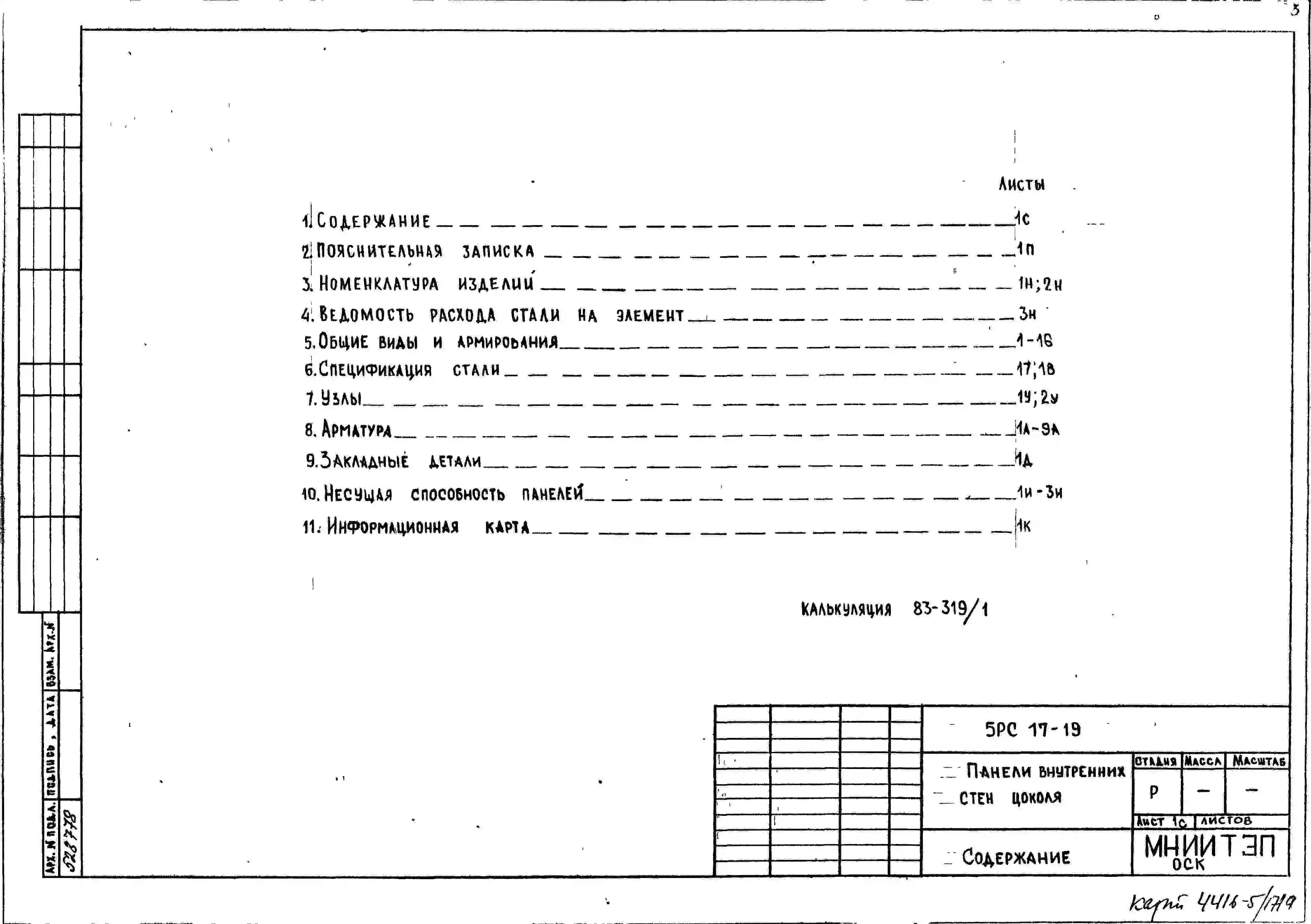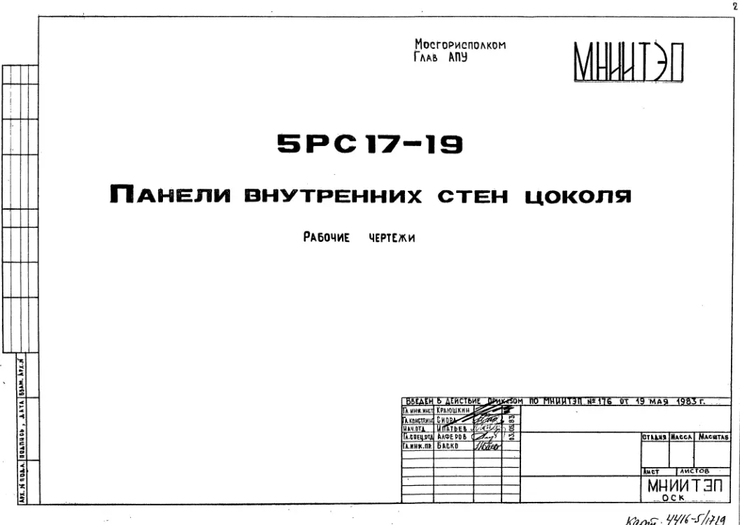 Шифр 5РС 17-19 Панели внутренних стен цоколя (1983 г.)