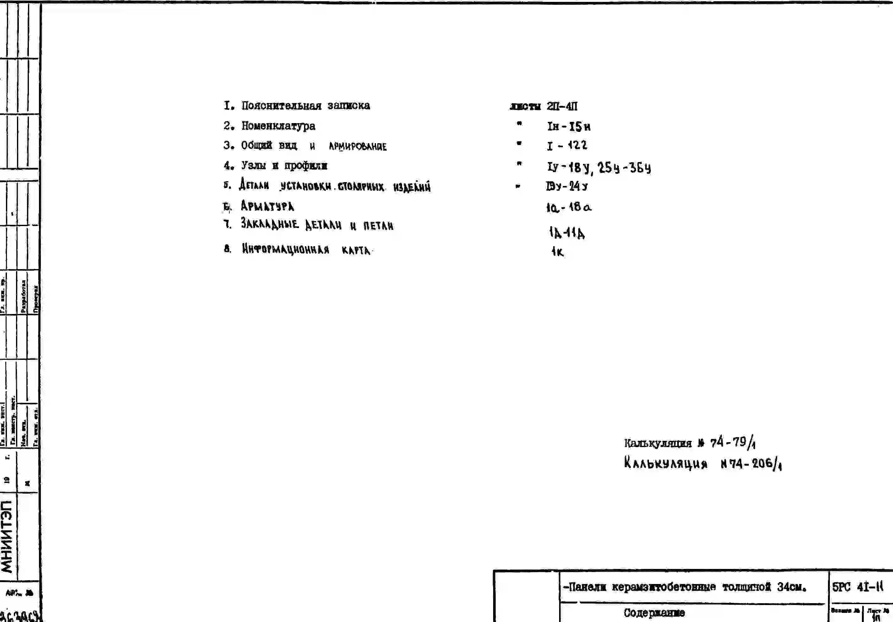 Шифр 5РС 41-11 Панели наружных стен керамзитобетонные, толщиной 34 см, панельных зданий (1974 г.)