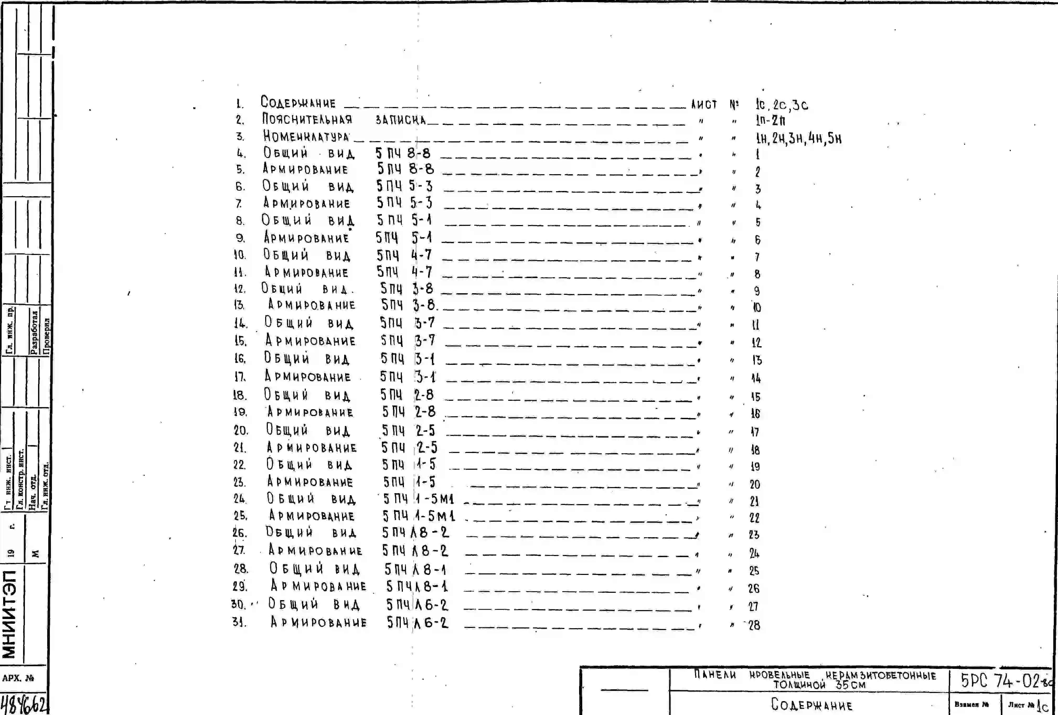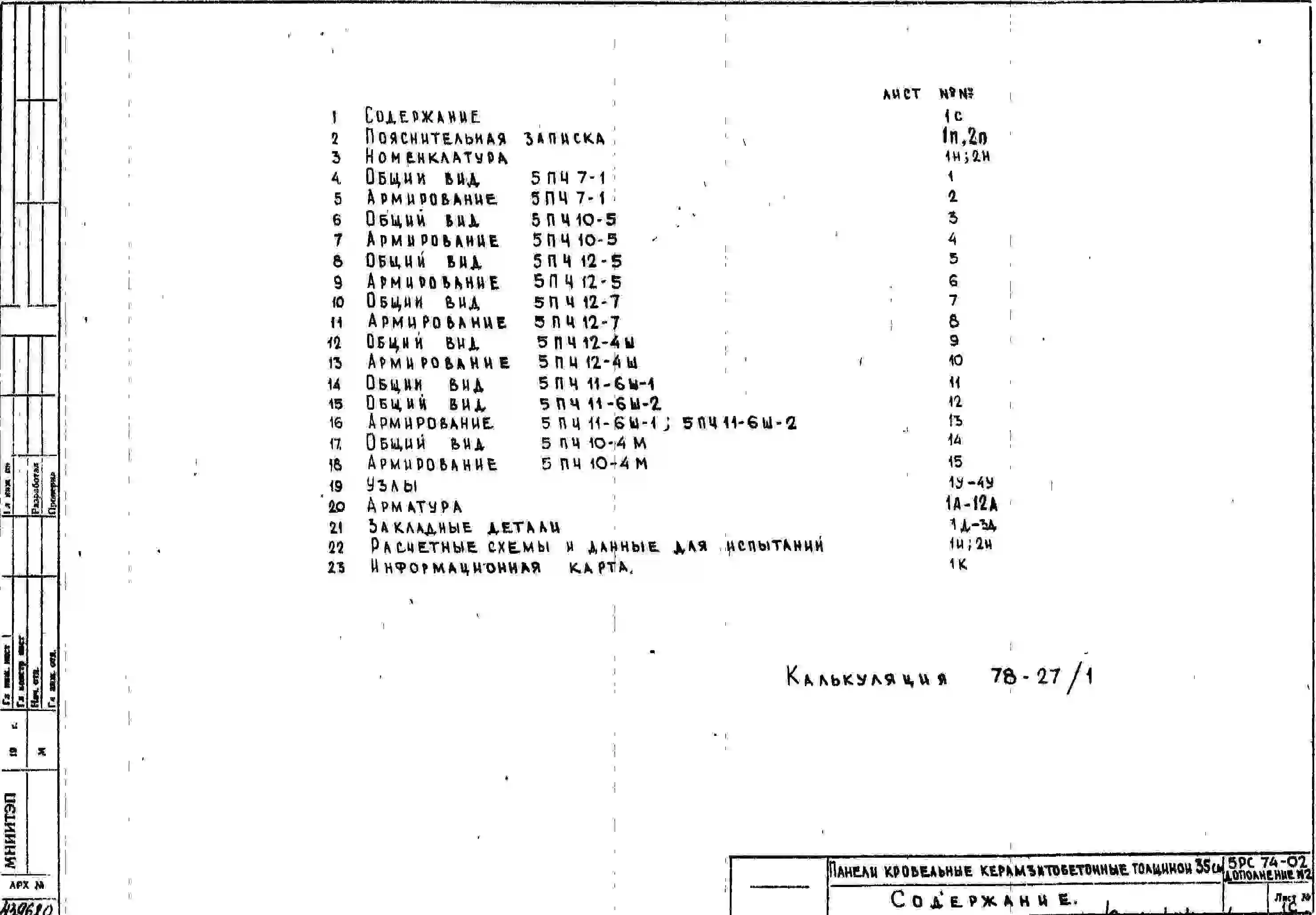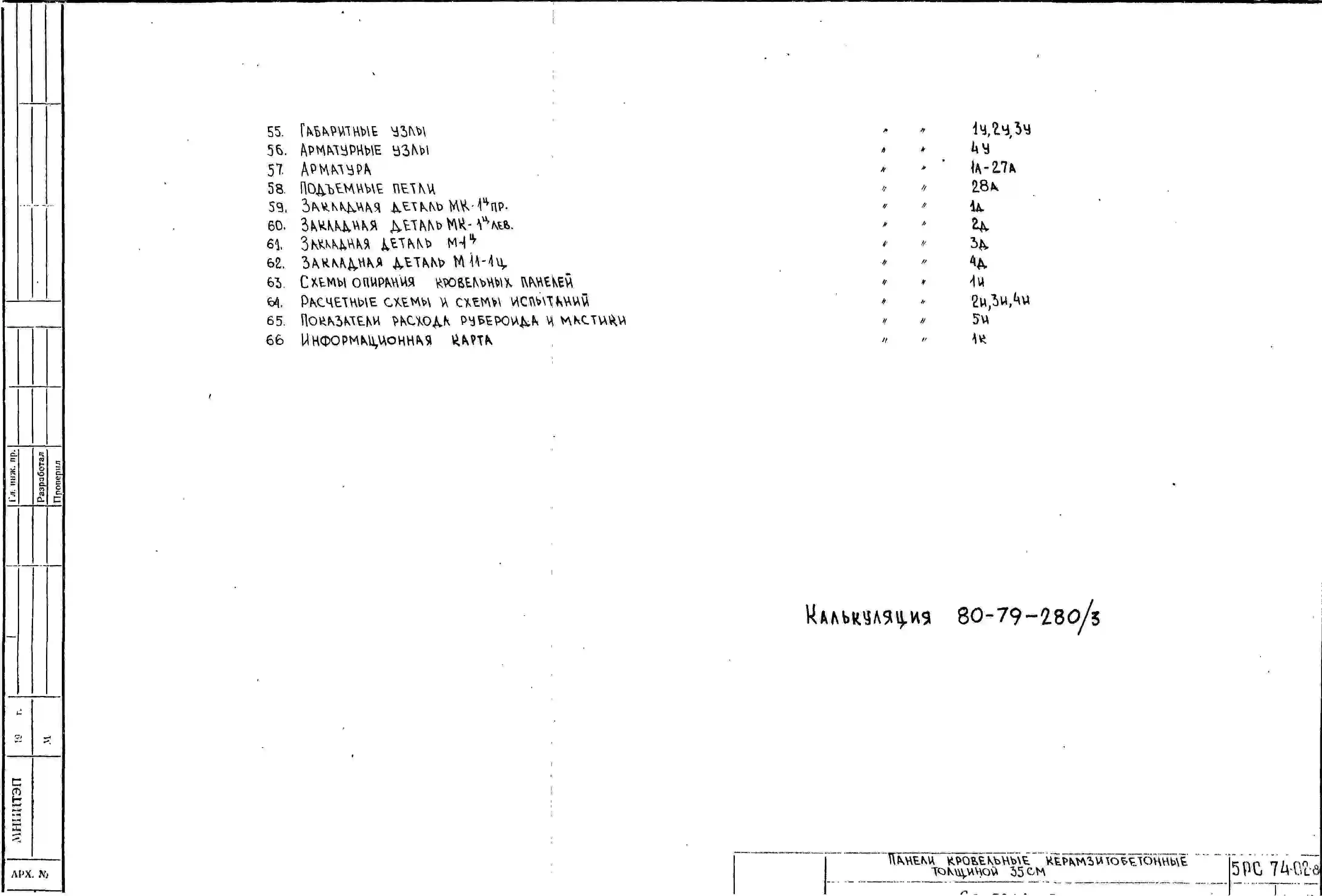 Шифр 5РС 74-02 Панели кровельные керамзитобетонные, толщиной 35 см (1978 г.)