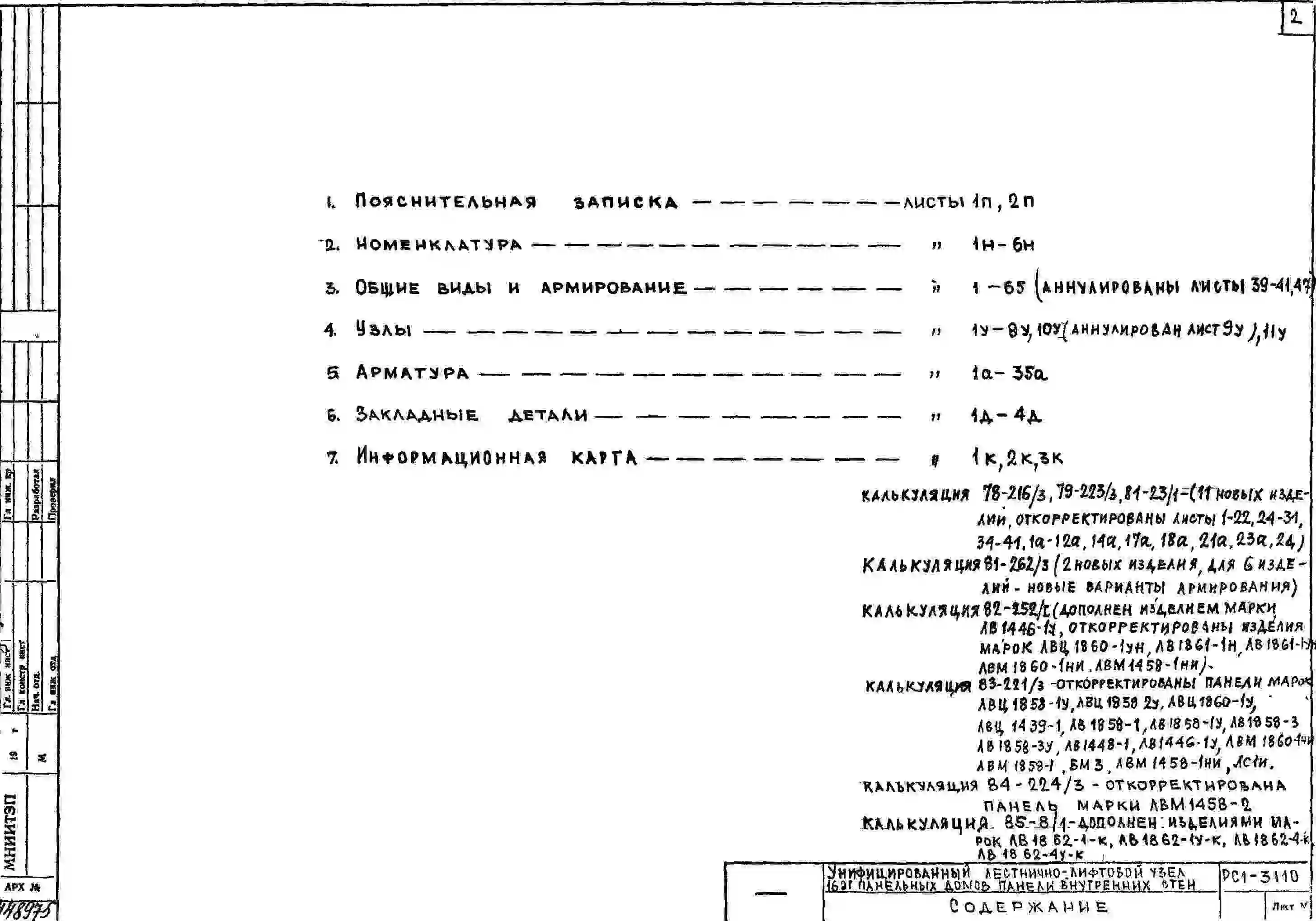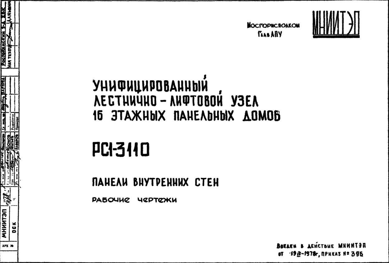 Шифр РС1 3110 Унифицированный лестнично-лифтовой узел 16 этажных панельных домов (1978 г.)