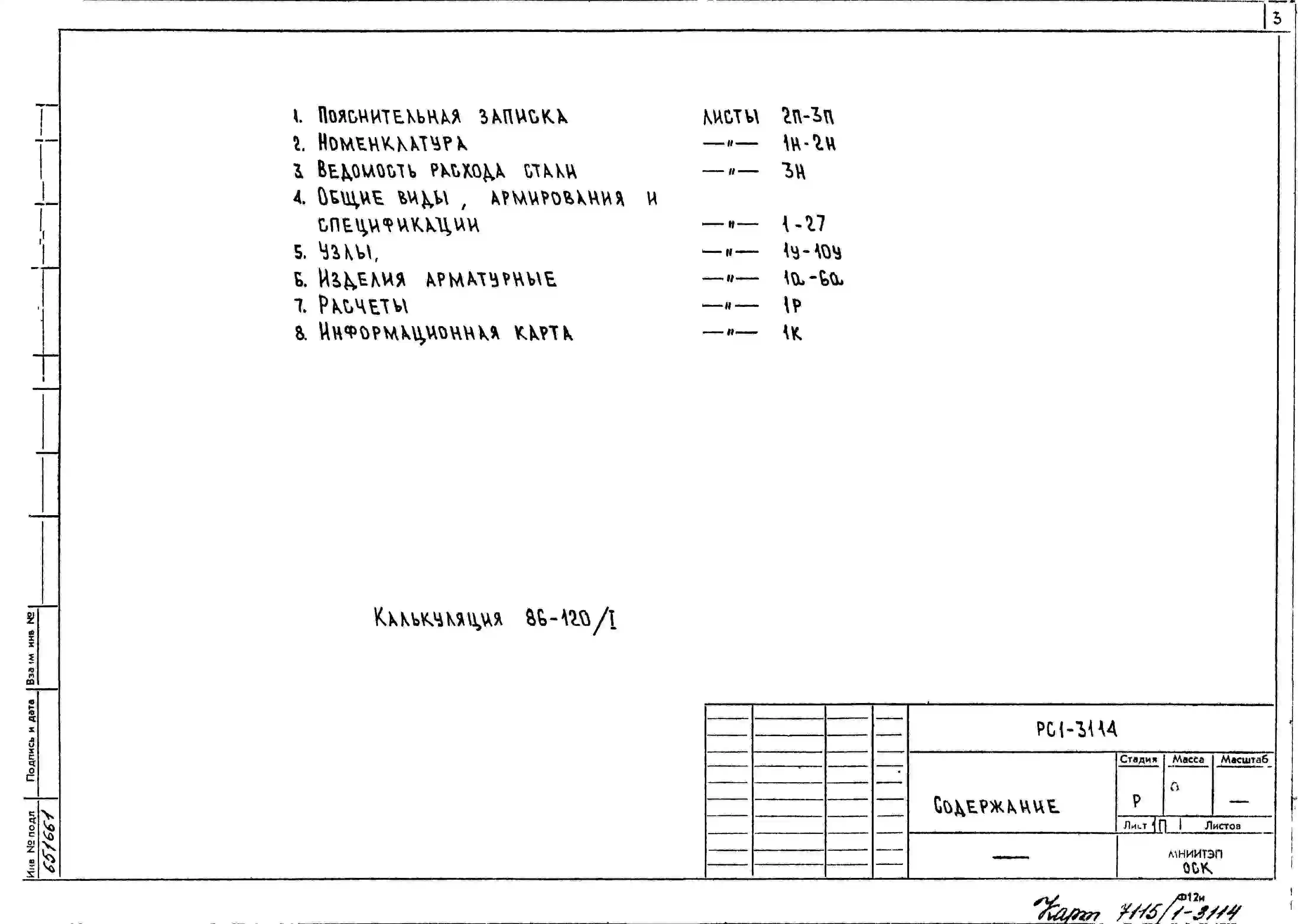 Шифр РС1-3114 Панели внутренних стен (1987 г.)