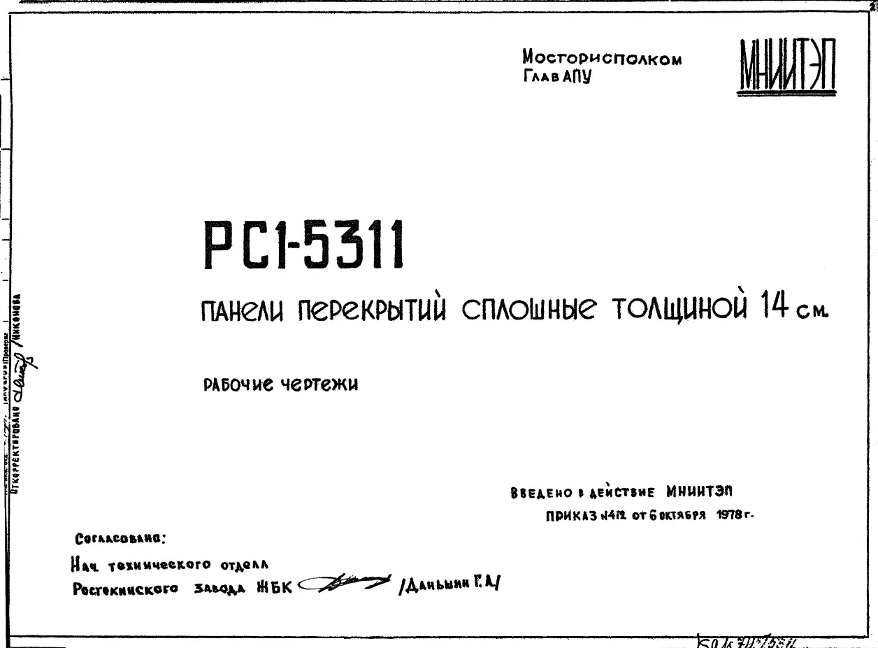 Шифр РС1 5311 Панели перекрытий сплошные толщиной 14 см (1978 г.)