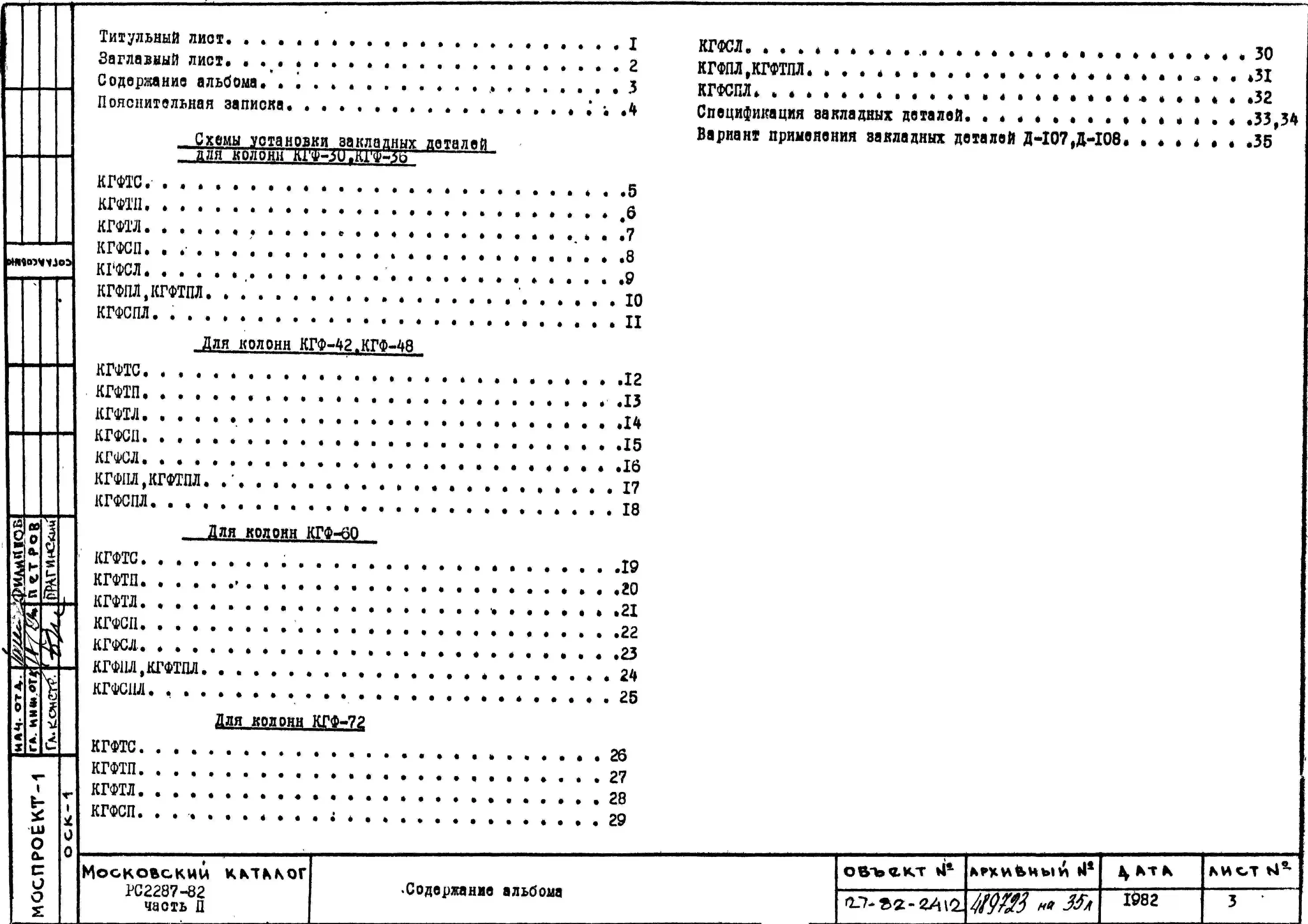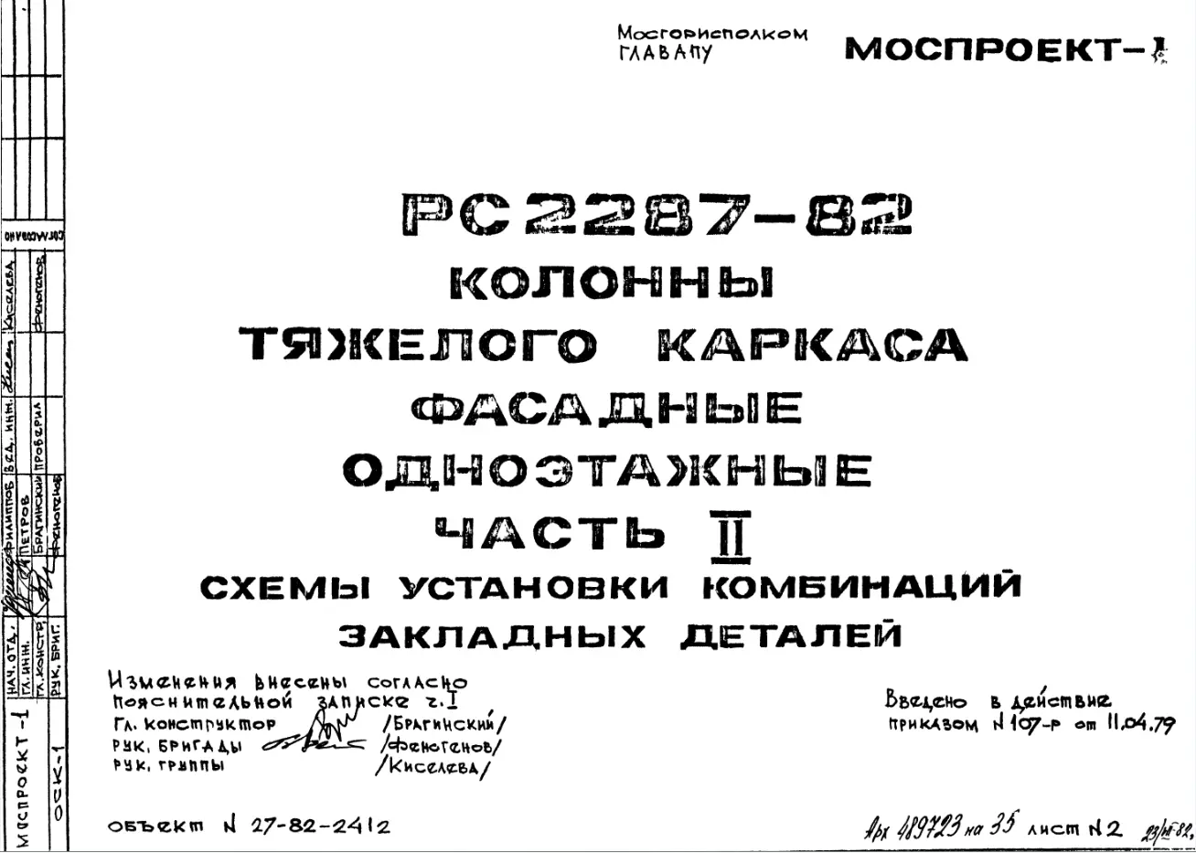 Шифр РС 2287-82 Колонны тяжелого каркаса фасадные одноэтажные (1979 г.)
