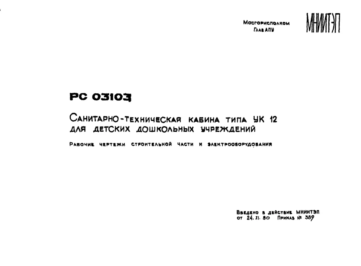 Шифр РС 03103 Санитарно-техническая кабина типа УК12 для детских дошкольных учреждений (1980 г.)