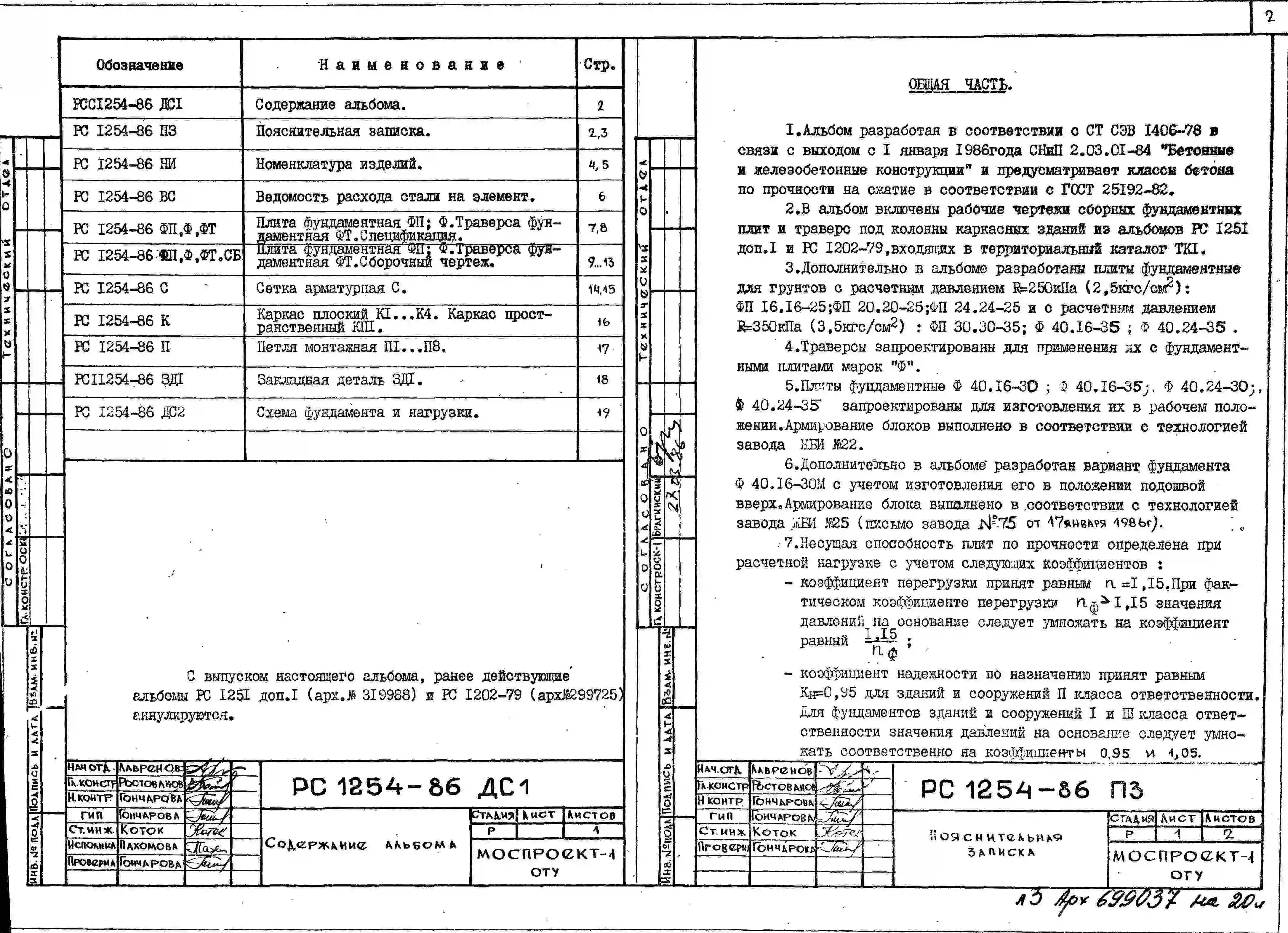 Шифр РС 1254-86 Фундаментальные плиты и траверсы под колонны каркасных зданий (1986 г.)